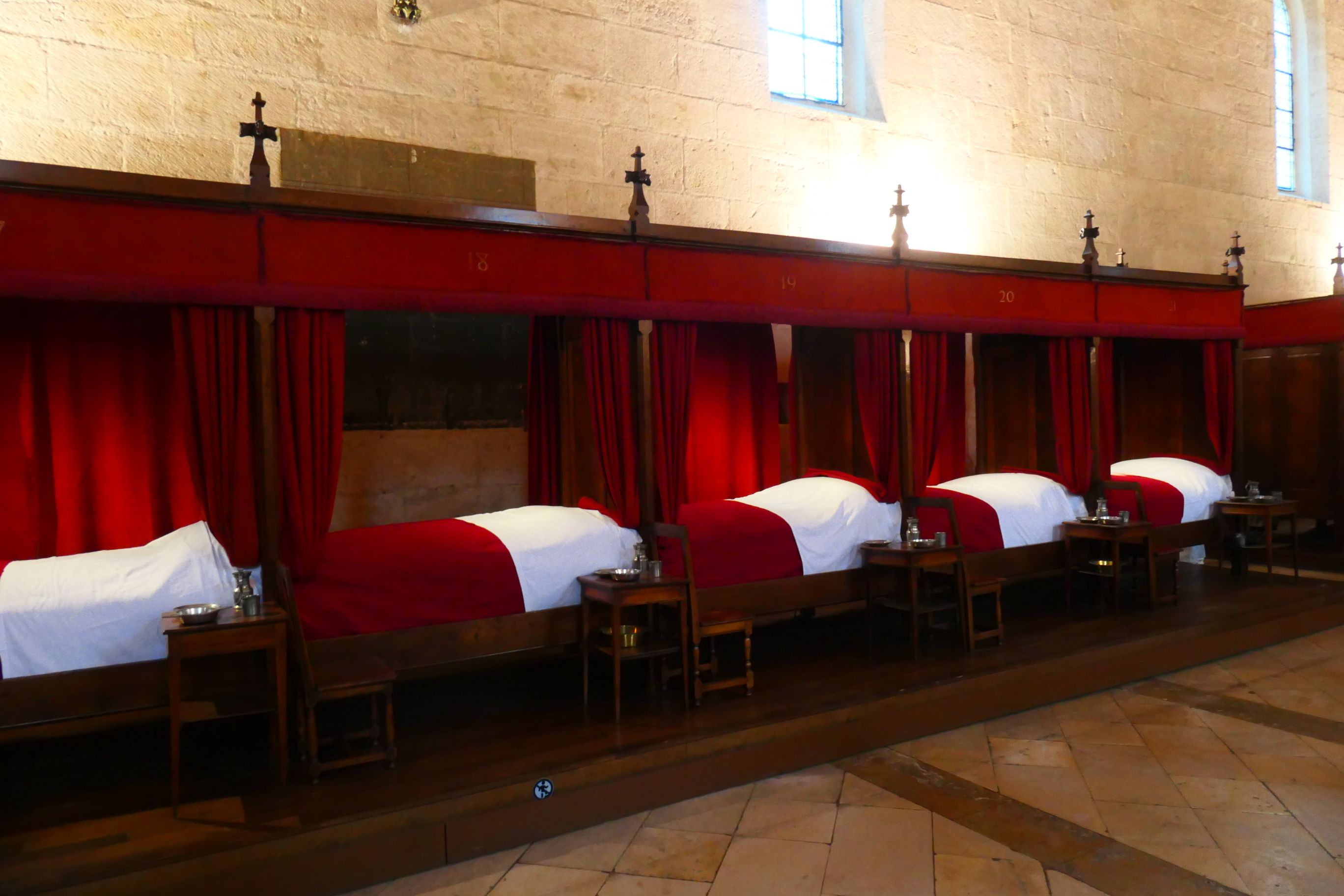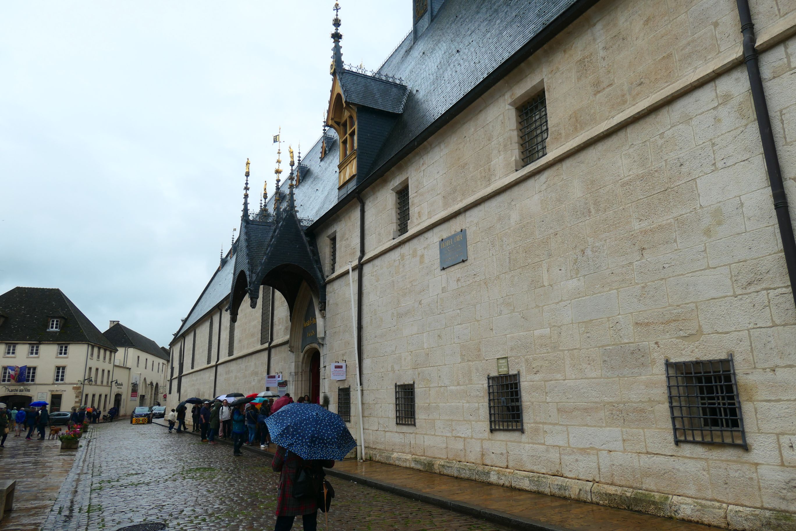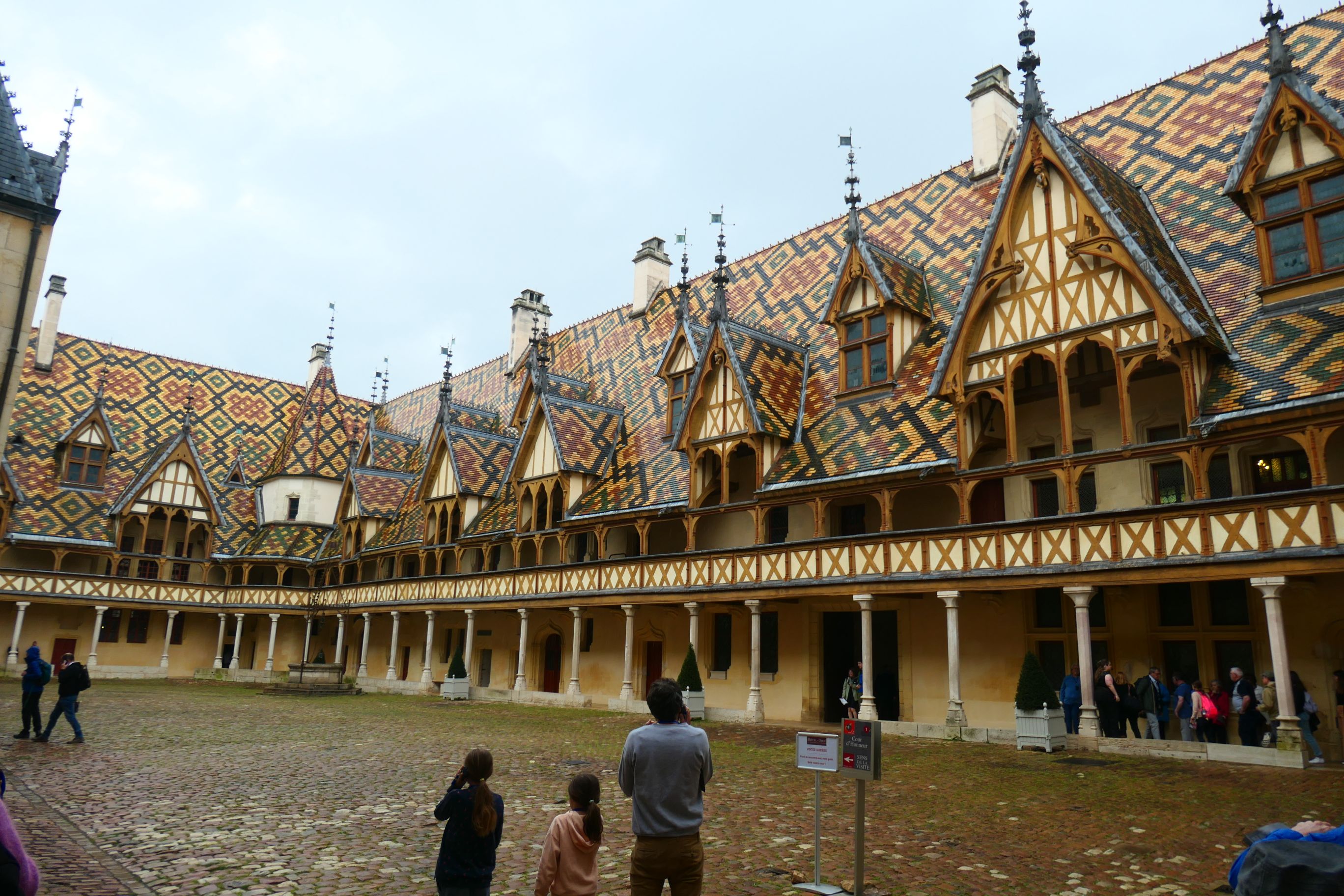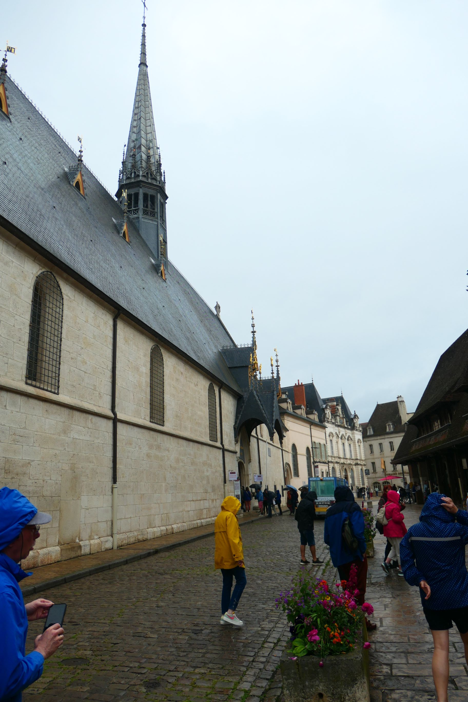 Beaune is a medieval and Renaissance walled town, often referred to as the wine capital of Burgundy. It’s most famous feature is the Hôtel-Dieu, or Hospices de Beaune, This former charitable home for the poor was founded in 1443 by Nicolas Rolin, a chancellor for the Dukes of Burgundy. The way our guide explained it, he had done a lot of evil things during his lifetime, and as he approached his final years he wanted to atone for this so that God would be pleased and he might go to heaven instead of descending into burning hell. So he decided to do something good. He used the money he had married into to build a huge hospital to house the poor and ill people of Beaune. They would be fed, sheltered and administered medicines and copious amounts of religion. To fund their ongoing care, another wing of the hospice was for wealthy people who were also ill. They paid fees, which funded the care of the poor. The poor slept two to a bed for warmth and were administered food and medicines from pewter implements, which eventually led to many of them dying from lead poisoning. Their sleeping quarters adjoined the chapel, so that although they may be bedridden, the poor and dying inmates were always within sight of their Maker. Unfortunately, many of them went to meet their Maker within a short time of being admitted to the hospice. Nuns and priests cared for their spiritual and earthly needs. The hospice remains in very good condition and represents some of the finest Renaissance building in France.