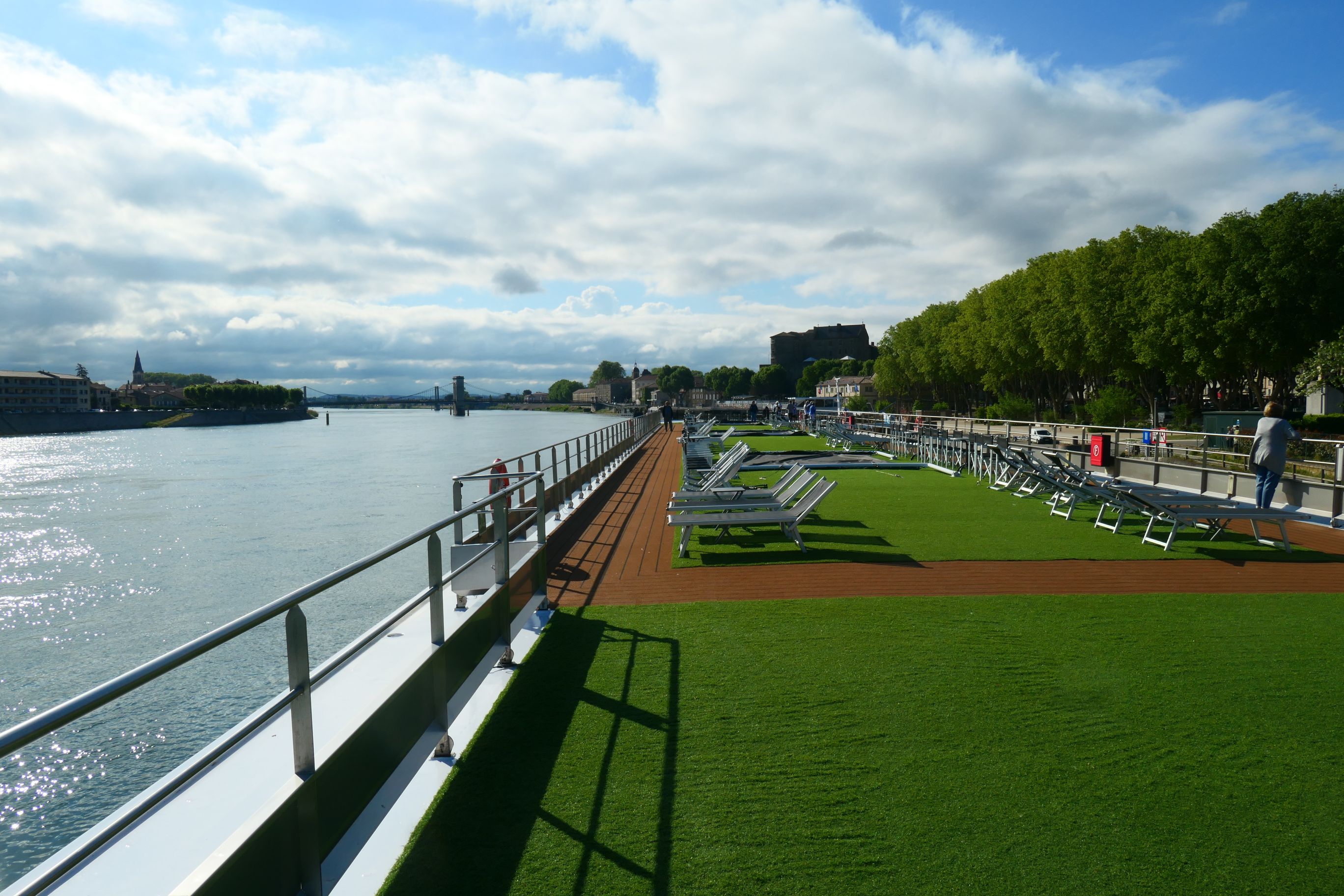 Marg and I did not have long back in our room before it was time to dress (a little better than usual) for dinner at L’Amour, the place at the front of the ship where everyone is invited to dine one time during the cruise. Tonight it was our turn. We sat with an American couple and chatted while we were served a special fine dining six course meal paired with regional wines. The crew go out of their way to make you feel a bit special. We enjoyed it. At 10.30pm tonight, our engines started up again and now we are cruising south overnight. In the early afternoon tomorrow, we will dock at Avignon.