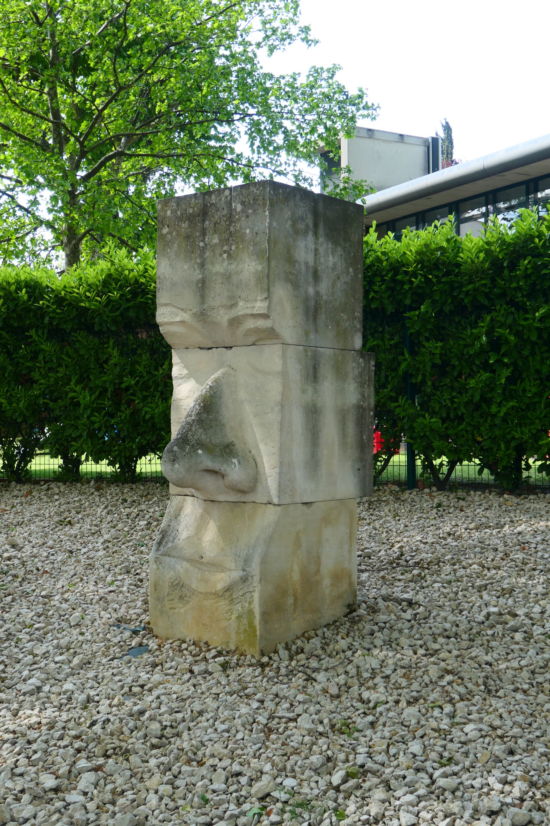 In order to reach the chocolate factory, we had to walk through a flea market. That was a challenge, as with all the activity buzzing around us at the market, it was quite easy to lose contact with our guide. Thankfully she hung around at the far end of the market until all of us stragglers finally made our way out of the swarm of people. She then took us on a slight detour to show us a ‘beautiful garden’. It was so downright ugly and unappealing, I did not bother with a photo. But rest assured there are some pretty good gardeners here in France and many gardens are well designed, appealing and well maintained. The most interesting thing in that garden in Tain was what she called the statue of the symbol of the town, the Human Nose! The story behind it is that the nose is the champion of the wine, chocolate and cheese industries here in this small commune