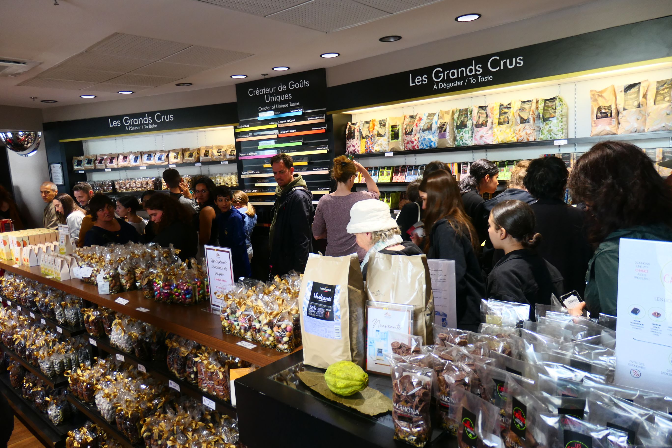 Our guided walk brought us to the Valrhona Chocolate factory, which apparently is well known around the globe. We were handed discount cards and a sample chocolate on our way in, but then, for some inexplicable reason, we ENTERED the building through the gift shop. In Europe the gift shop is usually associated with exiting a tourist attraction. So we entered the building and immediately found ourselves standing still at the back of a long line of people jammed into the aisles of a chocolate shop, virtually going nowhere. We couldn’t escape from the traffic jam by going forwards or backwards, so we were stuck in this painfully slow moving line until eventually we got near the cash registers and managed to slip inside the museum.