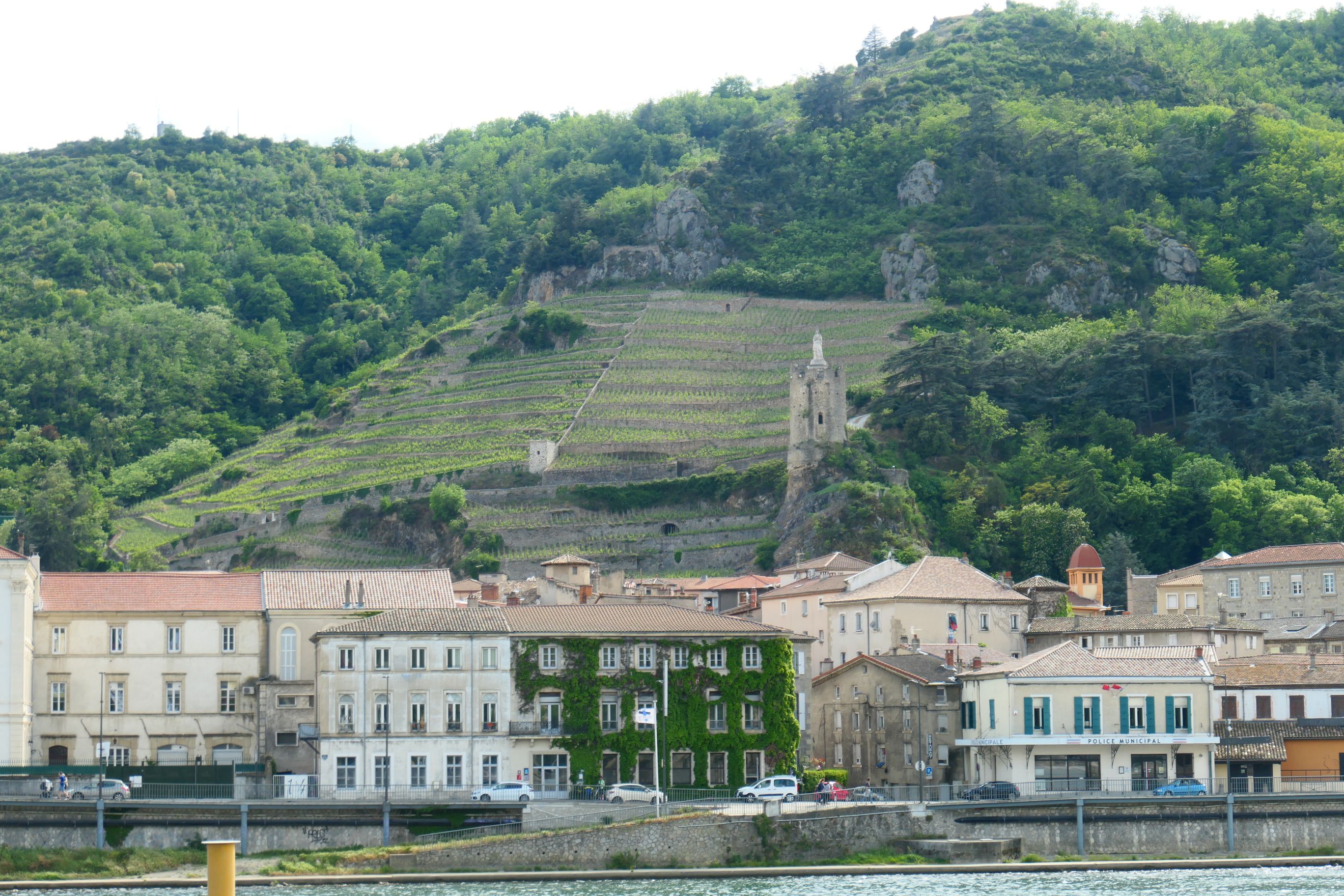 By 10am, we were docking at the small commune of Tournon. We’d been told we would arrive there by 2pm, but we got there four hours earlier. Tournon was once a walled city in medieval times. Today the remnants of the wall and a sentry tower remain in a prominent position above the little town.