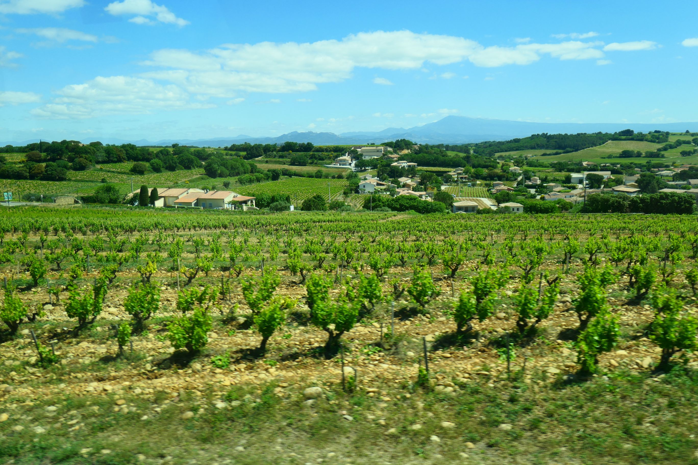 We left the commune by means of a meandering road through some of the vineyards surrounding it. You can see evidence of how stony some of the ground was in the photos below. The road took us back through the village once more and from there we returned to Avignon on the road we came in on. We returned to a delicious barbecue lunch on our ship.