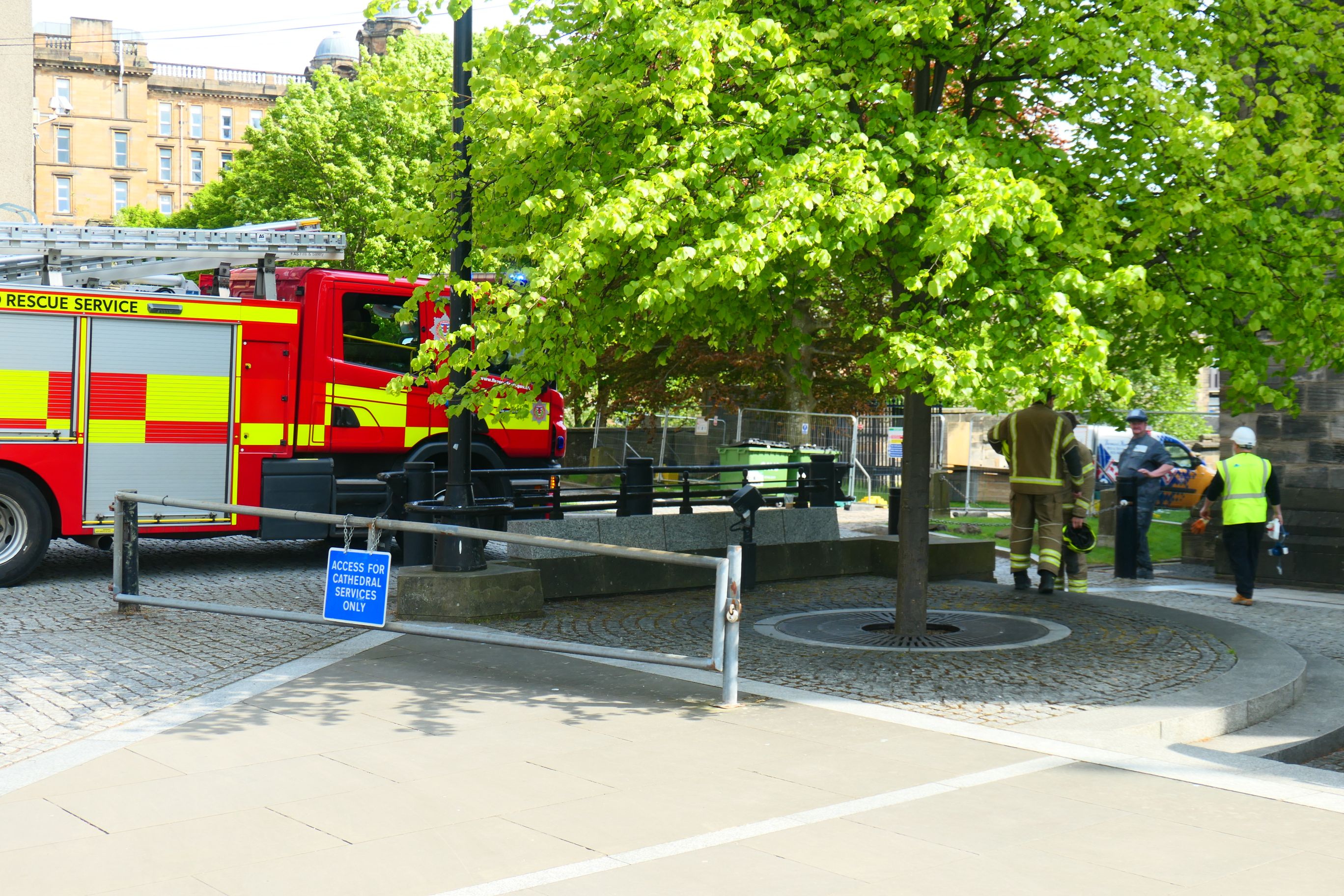 Soon we heard sirens, and three fire trucks arrived. Firemen clad in heavy protective gear entered the cathedral. We stood at a safe distance and watched. Perhaps only five minutes passed before they came out again. It was a false alarm. Perhaps the bishop had let the toast burn in kitchen or something. We all re-entered the cathedral and carried on marvelling at it beautiful stained glass windows, massive organ pipes and fabulous stone columns as if nothing had ever happened.