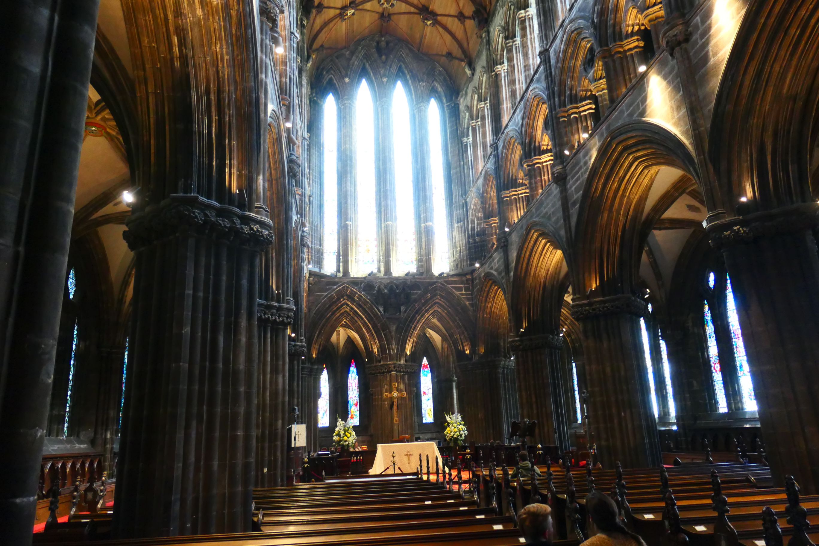 We walked back to the cathedral and entered. Glasgow Cathedral is very impressive. Some parts of it date back to the 12th century. Work continued on it and it wasn’t finished until the 1500s. It is dedicated to St Mungo, the patron saint of Glasgow. He is also known as St Kentigern. He is reputed to have performed four miracles, one of which was to retrieve a missing wedding ring from the mouth of a salmon caught by a fisherman in the Clyde River. Luckily it survived the Protestant Reformation in 1560 and also survived the German bombing of Glasgow during WWII.