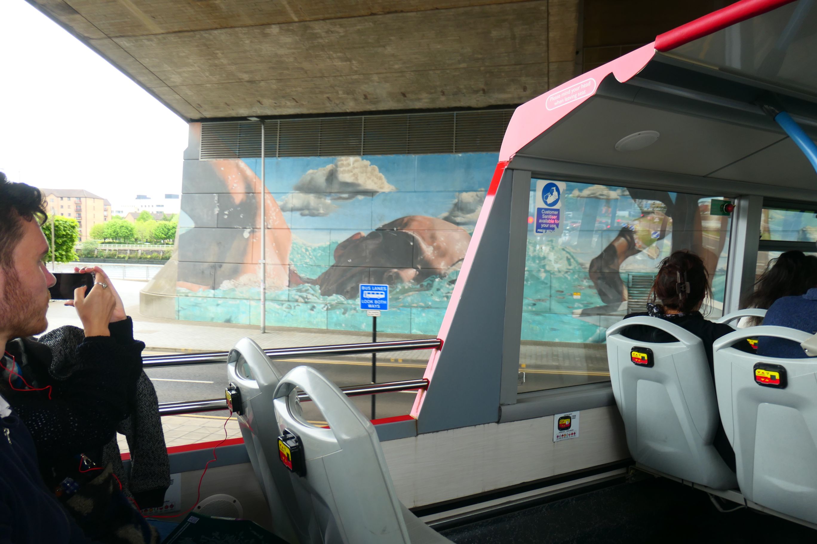 Back on the bus we continued our tour of Glasgow. We saw some, but not all, of its famous street art. It’s so good in this city that the council promotes a walking trail of the finest works. Here’s a few quick snaps from the bus.