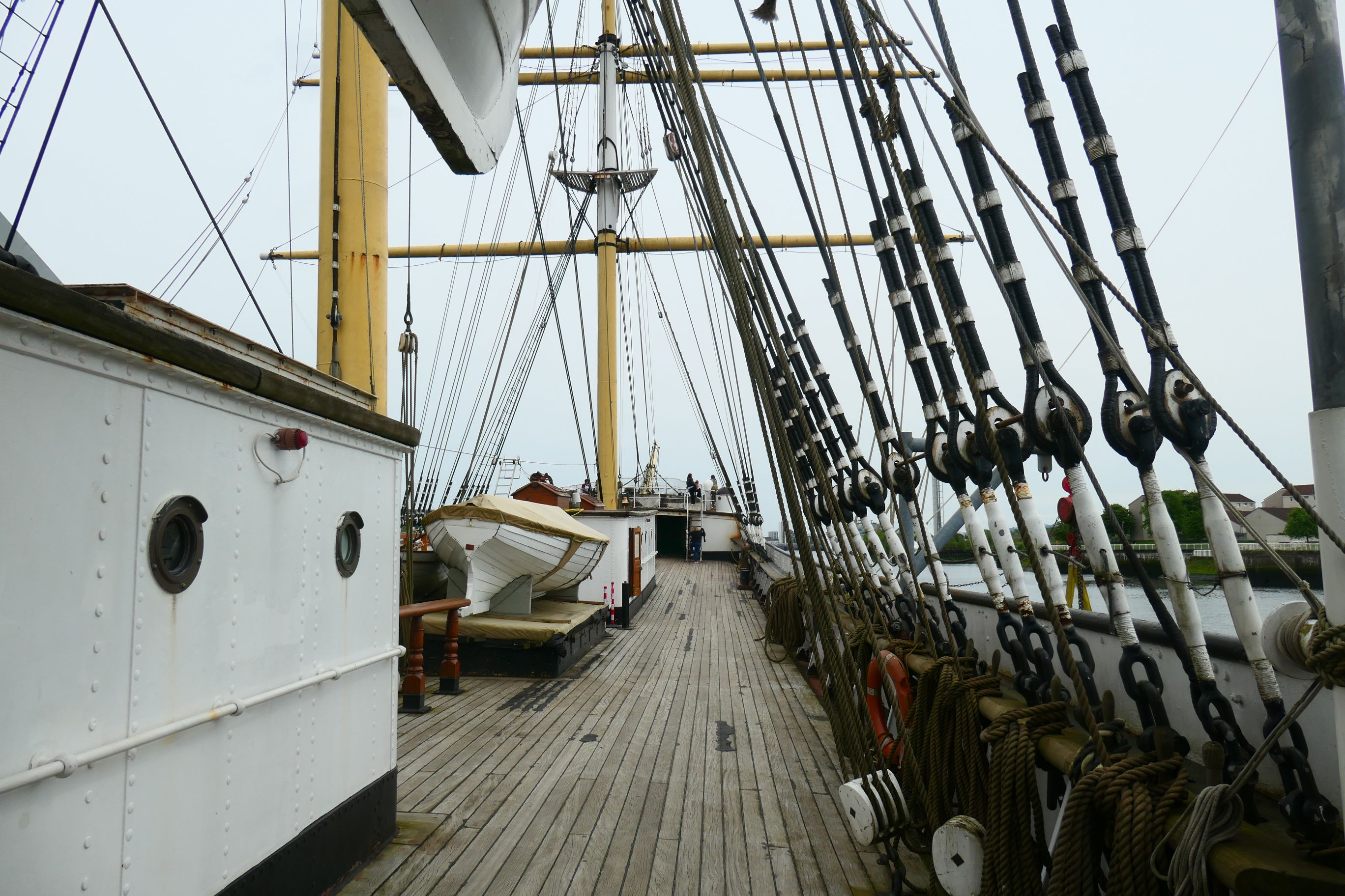 We got off the bus again to visit the Riverside Museum’s fantastic collection of trams, trains, automobiles and more. It was an interesting space to wander through. We really enjoyed looking at lots of the exhibits. Some brought back memories of the time we were growing up, but many more went back to the 19th or early 20th century. Without doubt, the highlight was the tall ship Glen Lee. As Marg and Neil’s ancestors had been sailmakers, we had a close look at the sails and the sailmaker’s implements.