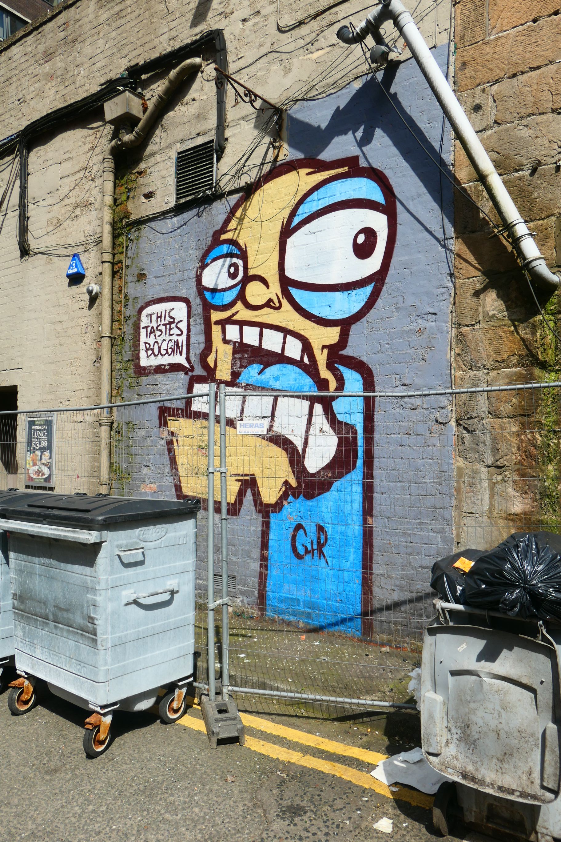 The first art work I visited was The Lost Giant by Australian artist Stormie Mills. It’s right at the end of Sauchiehall Lane, where I found some other unlisted artworks just a few doors down. I passed a few more on my way to Renfield Lane.