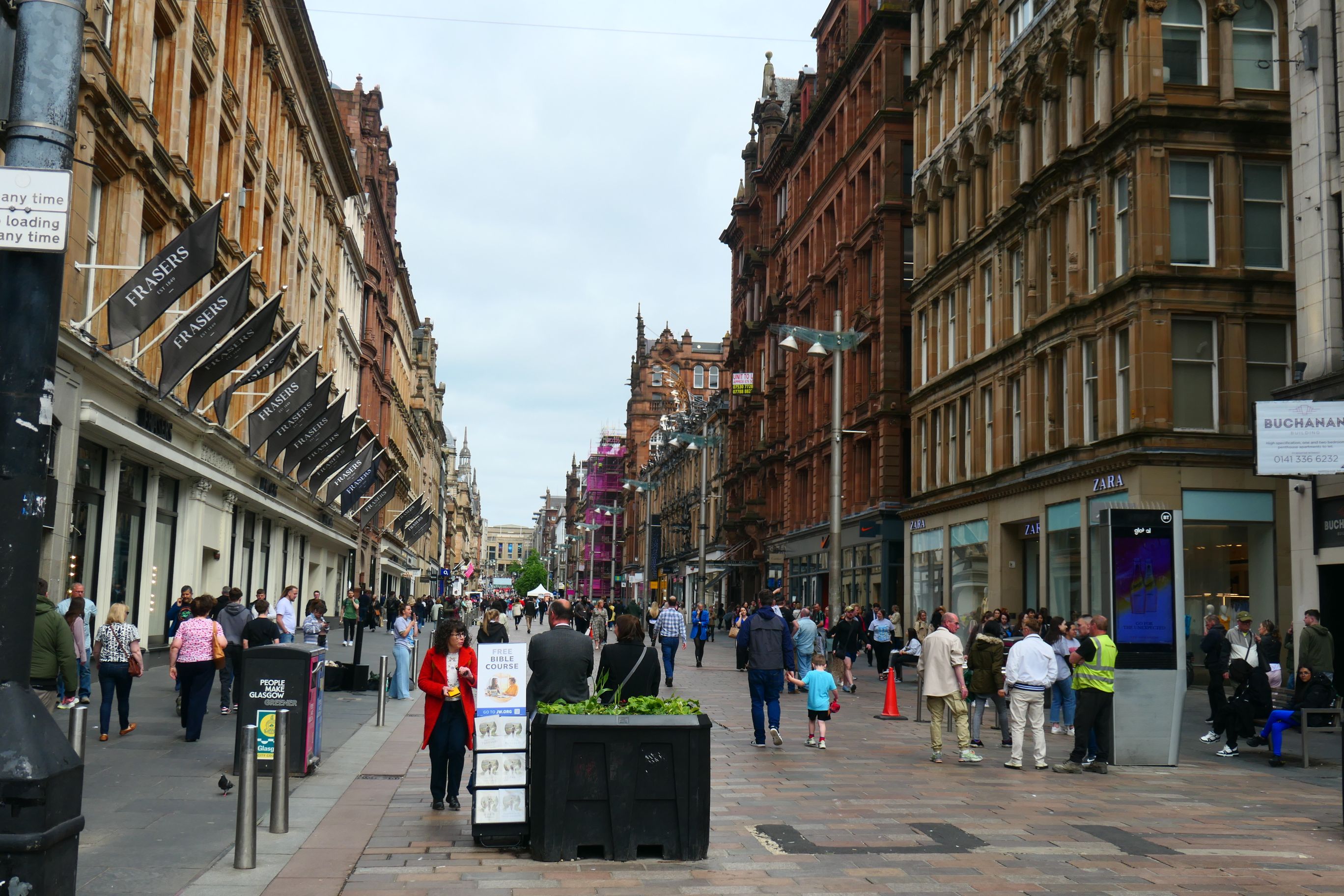 Along the way I was surprised by how familiar I was with all the streets I was walking and the places I was seeing. So much of today’s walk took me past the same places I’d seen and heard about on the hop on, hop off bus tour two days previously. Glasgow is a really easy city to find your way around. The streets are well signposted and it’s easy to use a few landmarks such as George Square, Buchanan St, High St and the Clyde River to get your bearings. I found every single art work I was looking for quite easily, with the exception of one which was recently removed. It got me wondering how long a work of street art should remain in place before it was able to be painted over with something else. And in between the art works, I just enjoyed becoming familiar with the city.