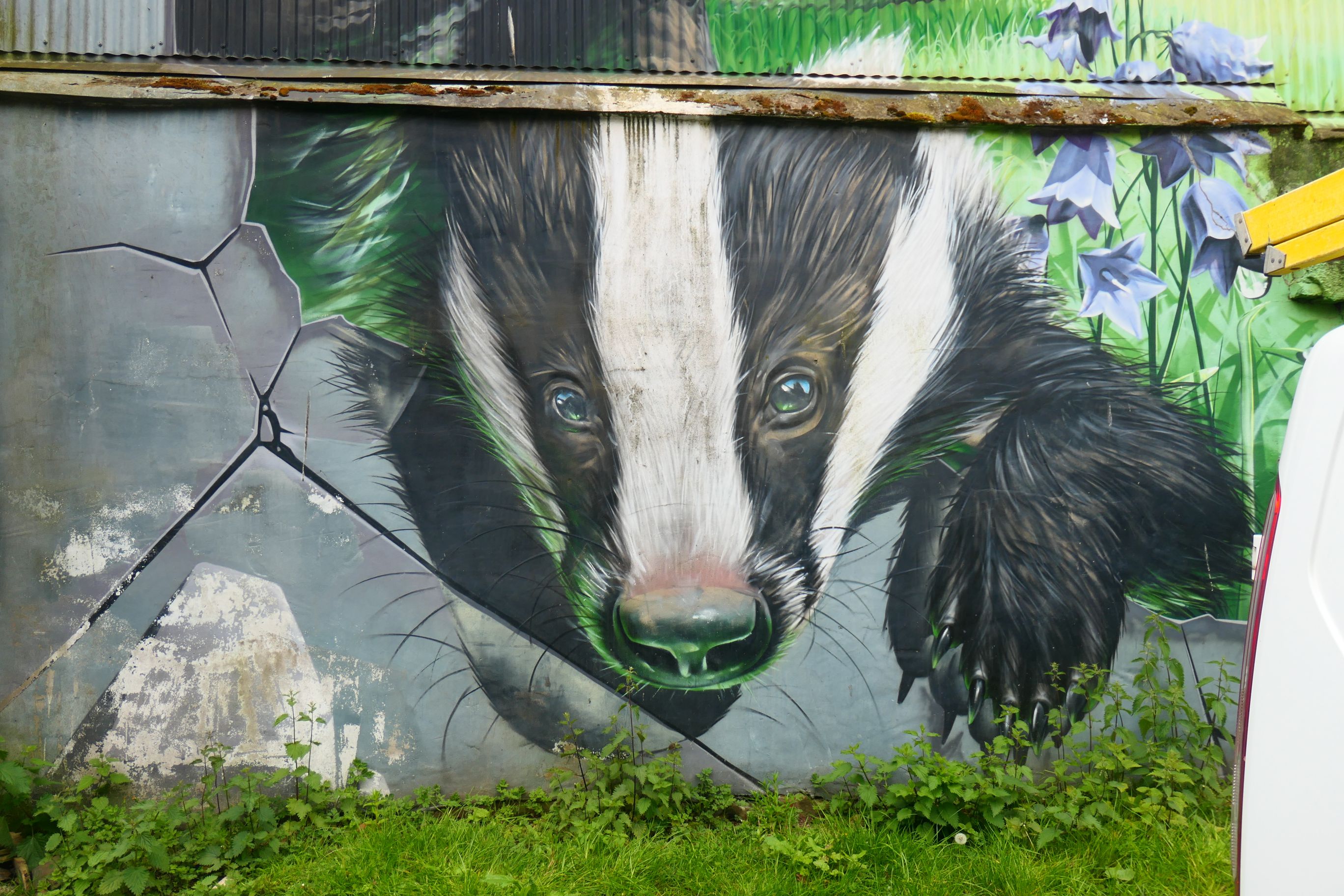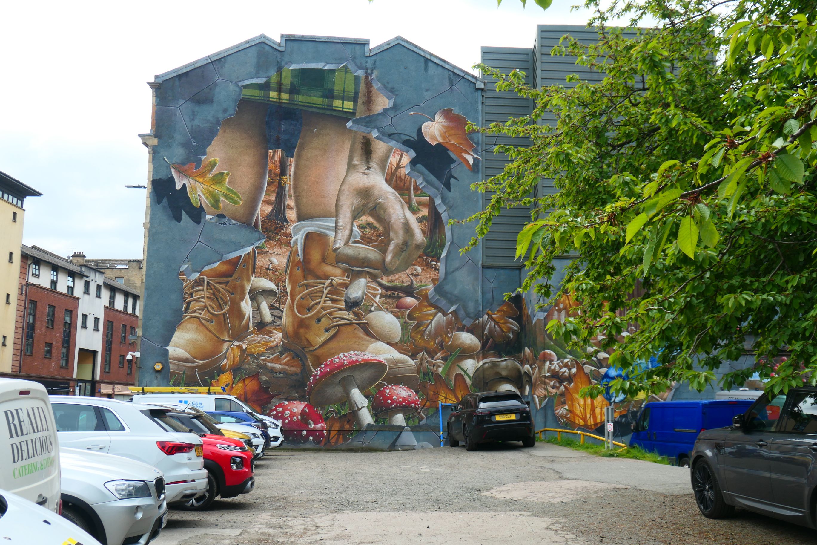 On Mitchell St were three of my favourites. Wind Power features a girl blowing the petals off a dandelion. As they float off in the breeze, they become the blades of wind turbines, reflecting Scotland’s keen interest in renewable energy. Honey, I Shrunk the Kids, by Australian artist Smug (Sam Bates) shows a woman appearing to pick a tiny object up from the street. And if you look closely at The World’s Most Economical Taxi, you’ll see that the artist has painted a brick wall to look like a brick wall.