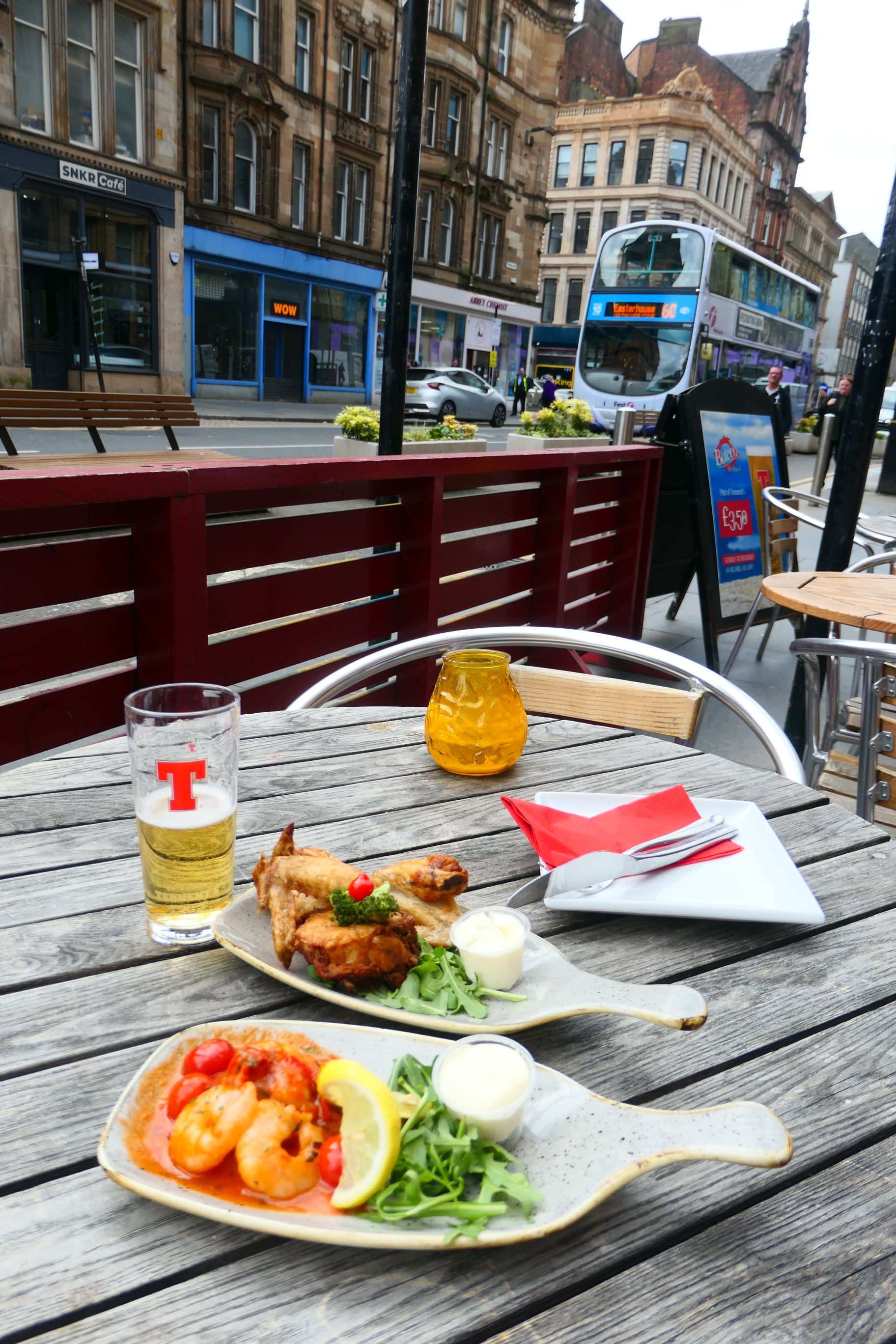 By 2 pm I’d covered a good deal of the city and found everything I’d wanted to see. I’d planned my walk well, as my barber appointment was right around the corner from the second Billy Connolly mural I visited. I found an outdoor table at a tapas bar nearby for a late lunch. As I got up to leave, a huge sea gull swooped down on my leftover chicken bones and flew off with my scraps in its beak. It gave the little kid at the next table a bit of a fright. I quickly deposited my empty plates on the bar inside before the gull returned for more.