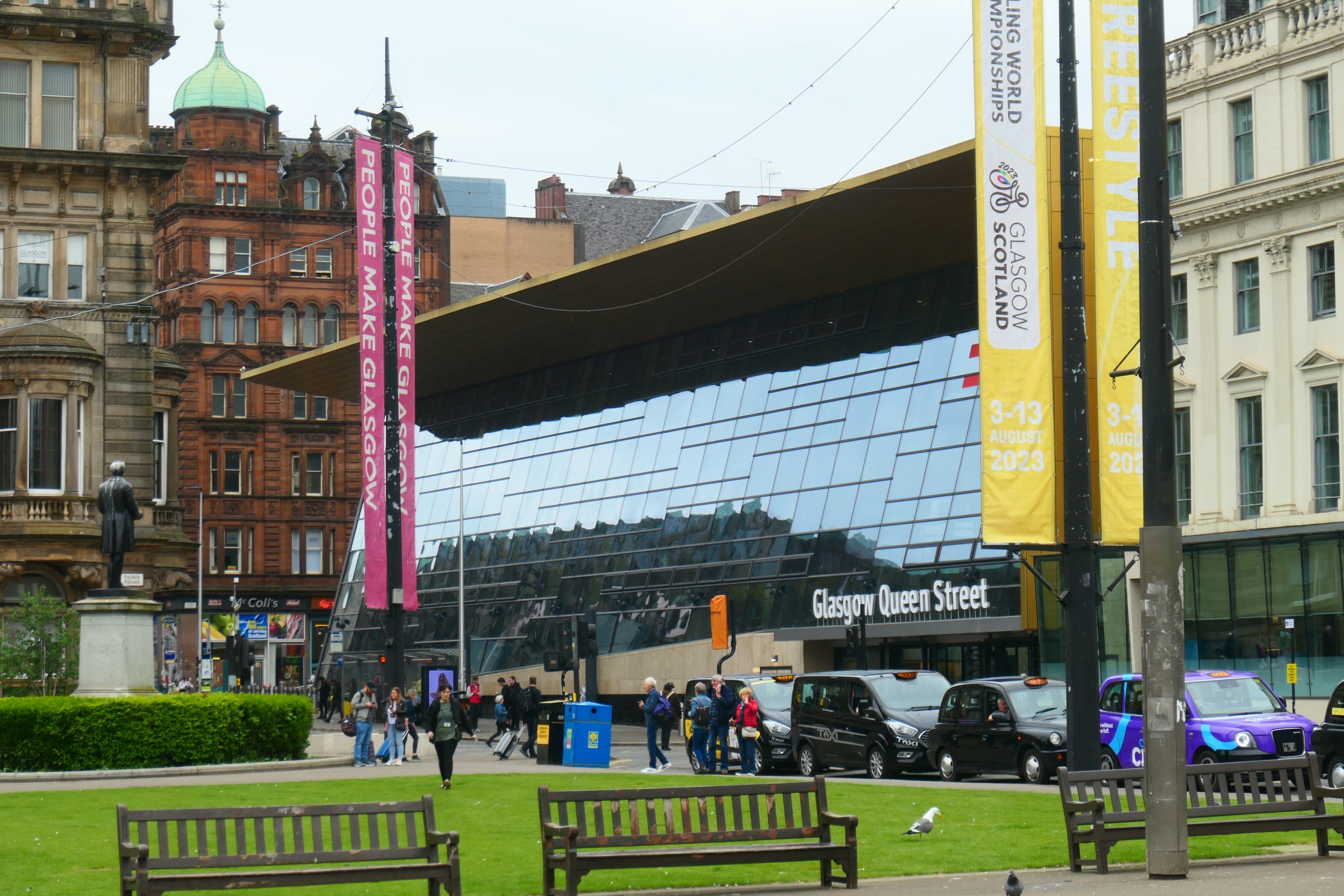 This morning we found an Italian place on George Square for breakfast. On the way back to our hotel we called in at Queen St Station to pick up our tickets for our rail tour of Scotland over the next two weeks. Just as we walked in off the street we heard the sound of women laughing and found ourselves face to face with a naked blow up doll with the groom-to-be’s face taped on it. Lucky guy!! We’ve seen a few bucks’ and hens’ parties here in Glasgow. Earlier in the day we saw a guy in a full bridal gown with his mates in George Square. I’m so glad I’m past all of that.
