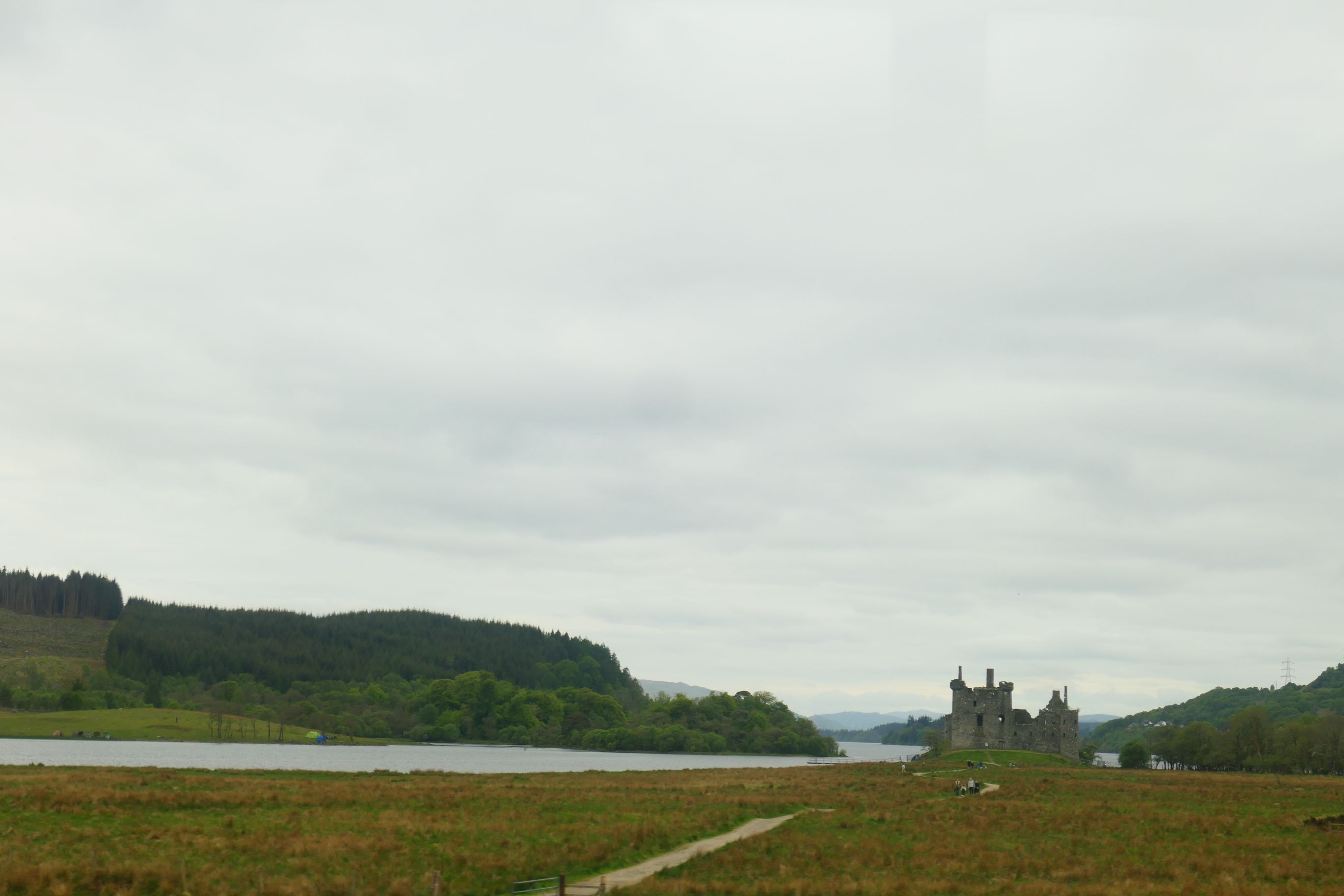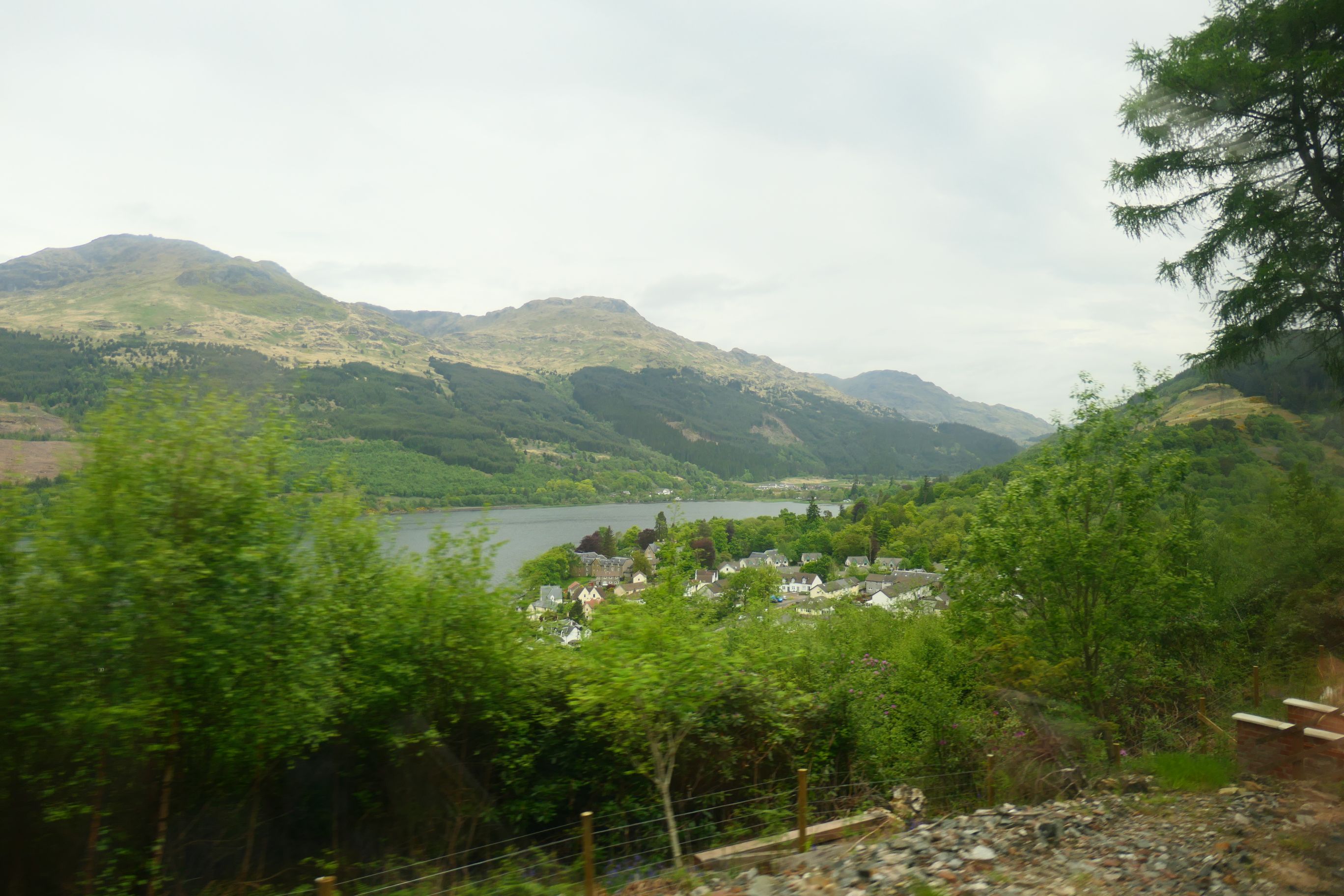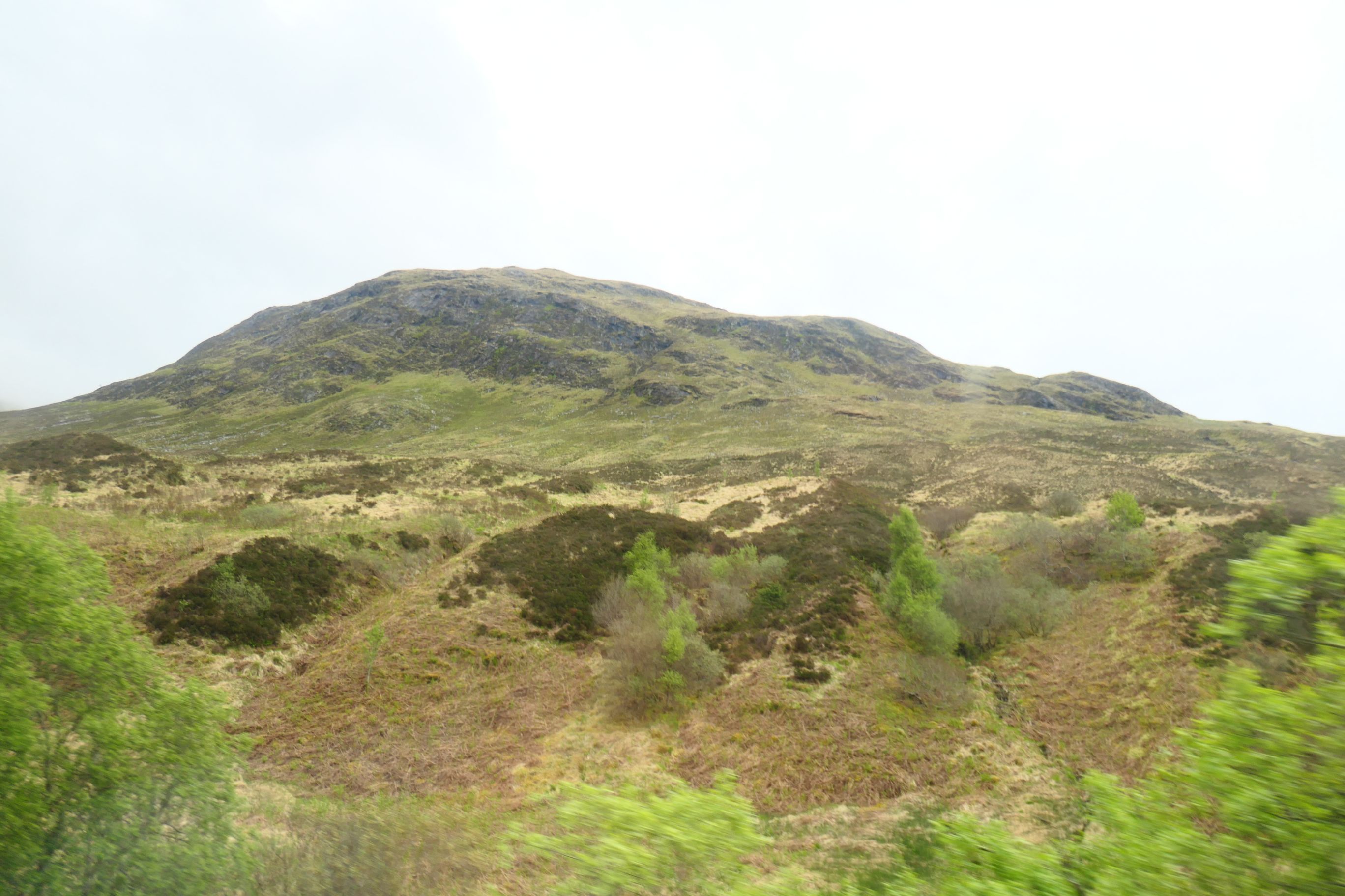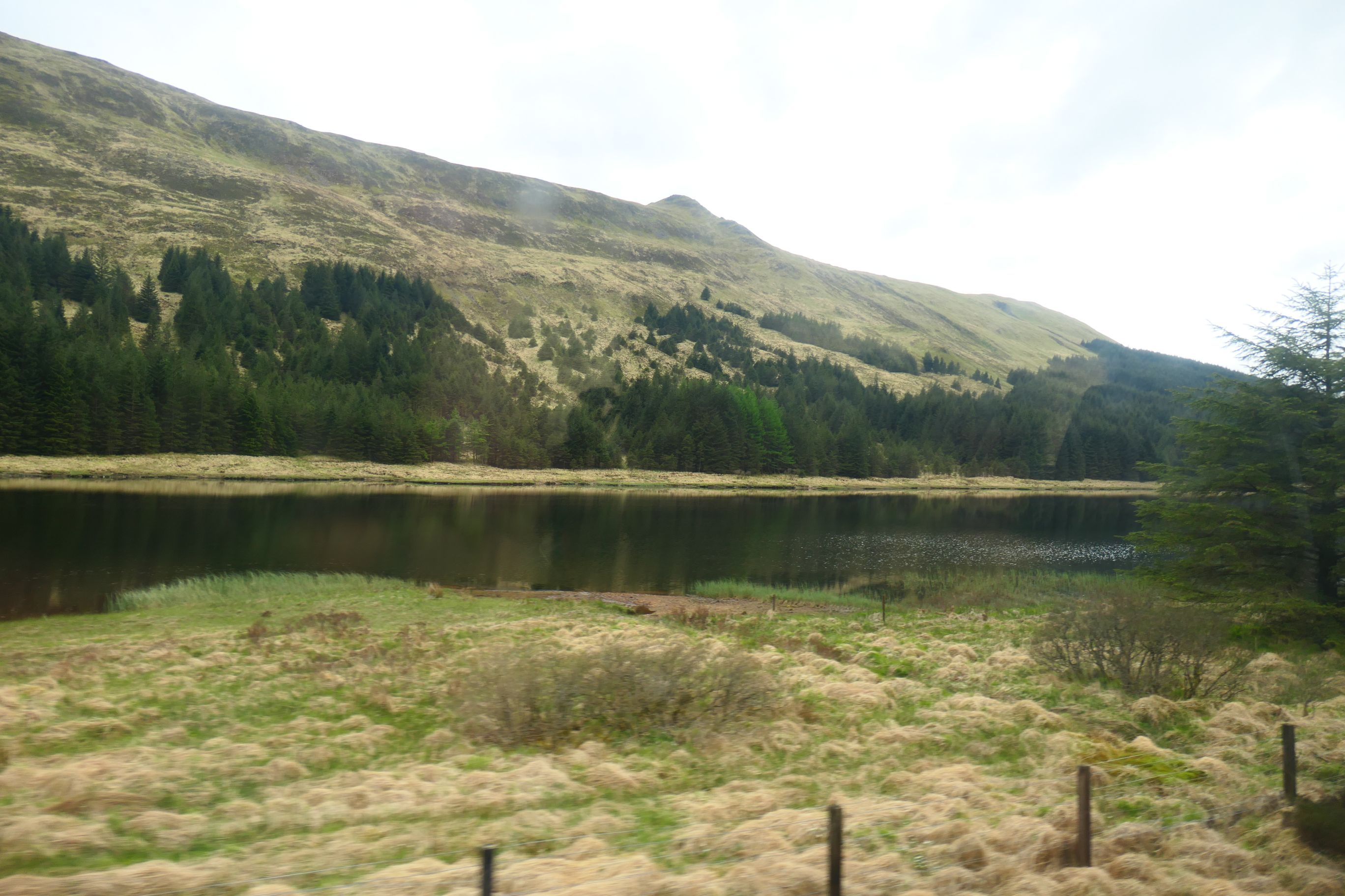 If you look closely at the photos below you will see Kilchurn Castle, which we passed. I tried to get a better photo, but when you’re sitting on a fast train you only have a split second to line up a photo, focus and take the shot. If you hesitate, you’ll probably end up with a string of blurry photos of trees and bushes whizzing past, obscuring the castle. Kilchurn Castle, on the shores of Loch Awe, has stood since the 1400s.
