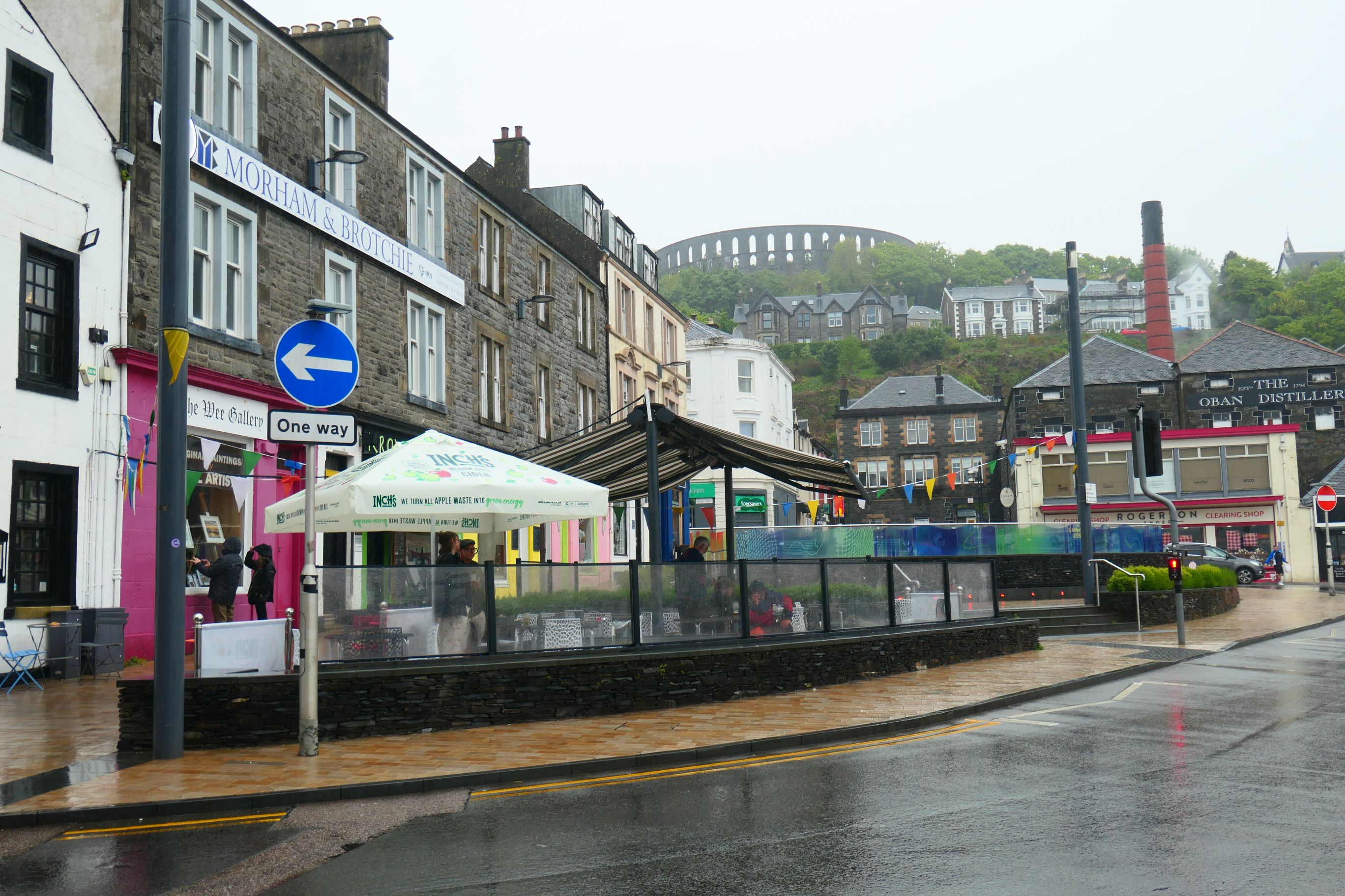 Just over three hours after leaving Glasgow, the train arrived in Oban. The moment you step out of the carriage and onto the platform, your eyes notice a rather unusual sight dominating the hilltop above the seaside town. It’s called McCaig’s Tower. It was built in 1897 by John McCaig, a philanthropist, to provide work for local stonemasons. He also planned for it to be a lasting monument to his family. McCaig designed it to resemble the Colosseum in Rome. But construction ceased when he died in 1902 with only the outer walls completed. From that time on, many people called the structure McCaig’s Folly.