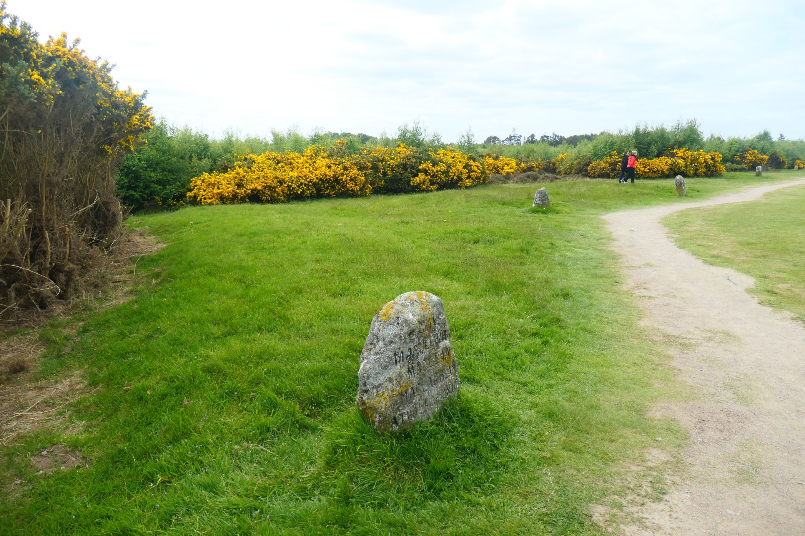 I walked around the perimeter of the battlefield, past the mass graves and the memorial cairn. The moorland that had given the left flank of the Jacobites so much difficulty during the skirmish is still there today. The ground is uneven and often muddy or soft and damp. The Jacobites forced to charge at the British lines through this terrain were slowed down or forced to change course. The charge at this point of the line soon lost its formation and became ineffective. The last photo in this set is of the more even ground which allowed Jacobites to the right of the moorland to hold the formation of their lines much longer as they charged at the redcoats.