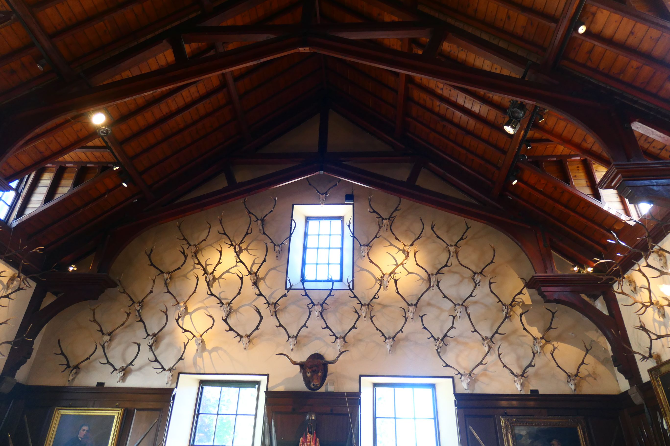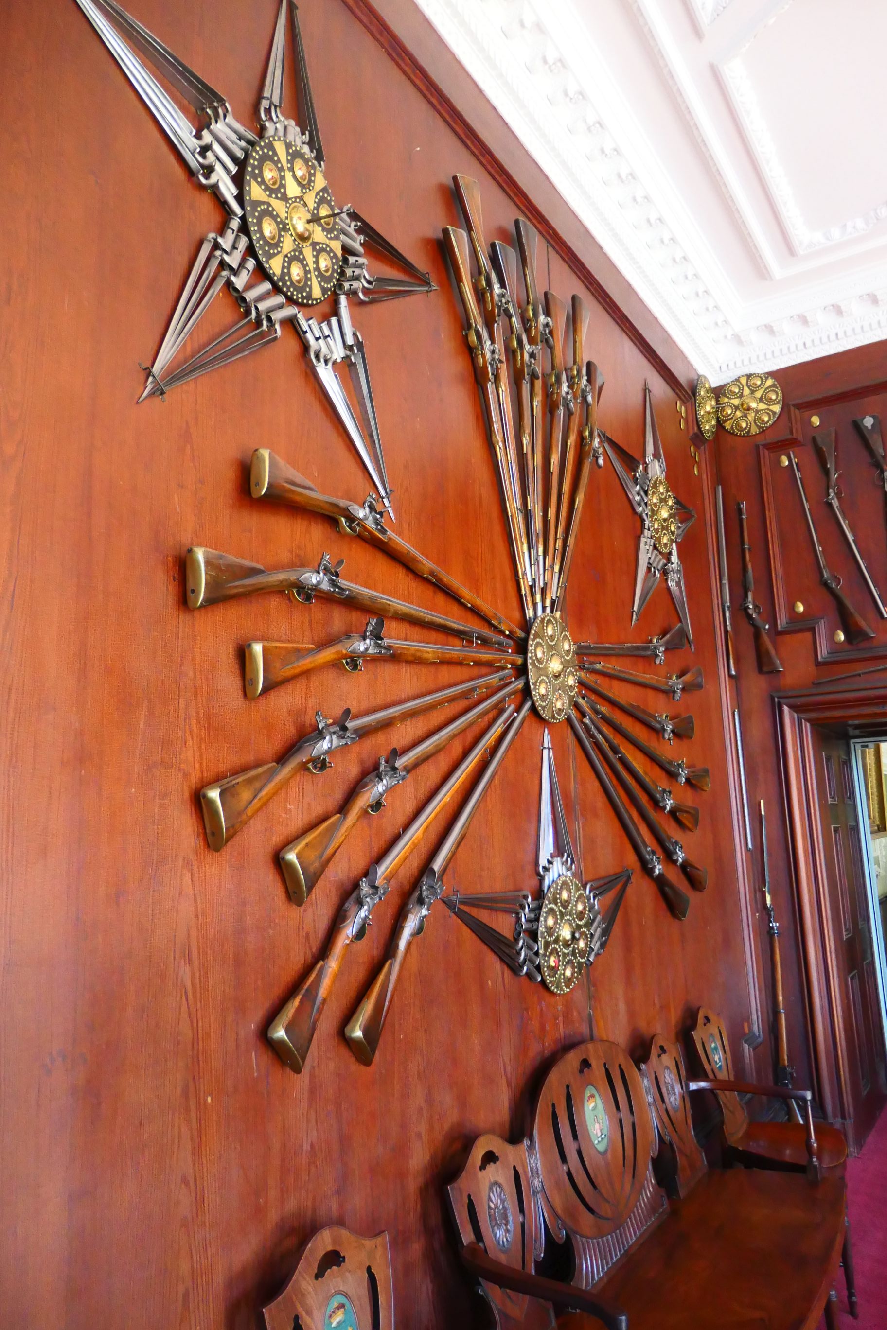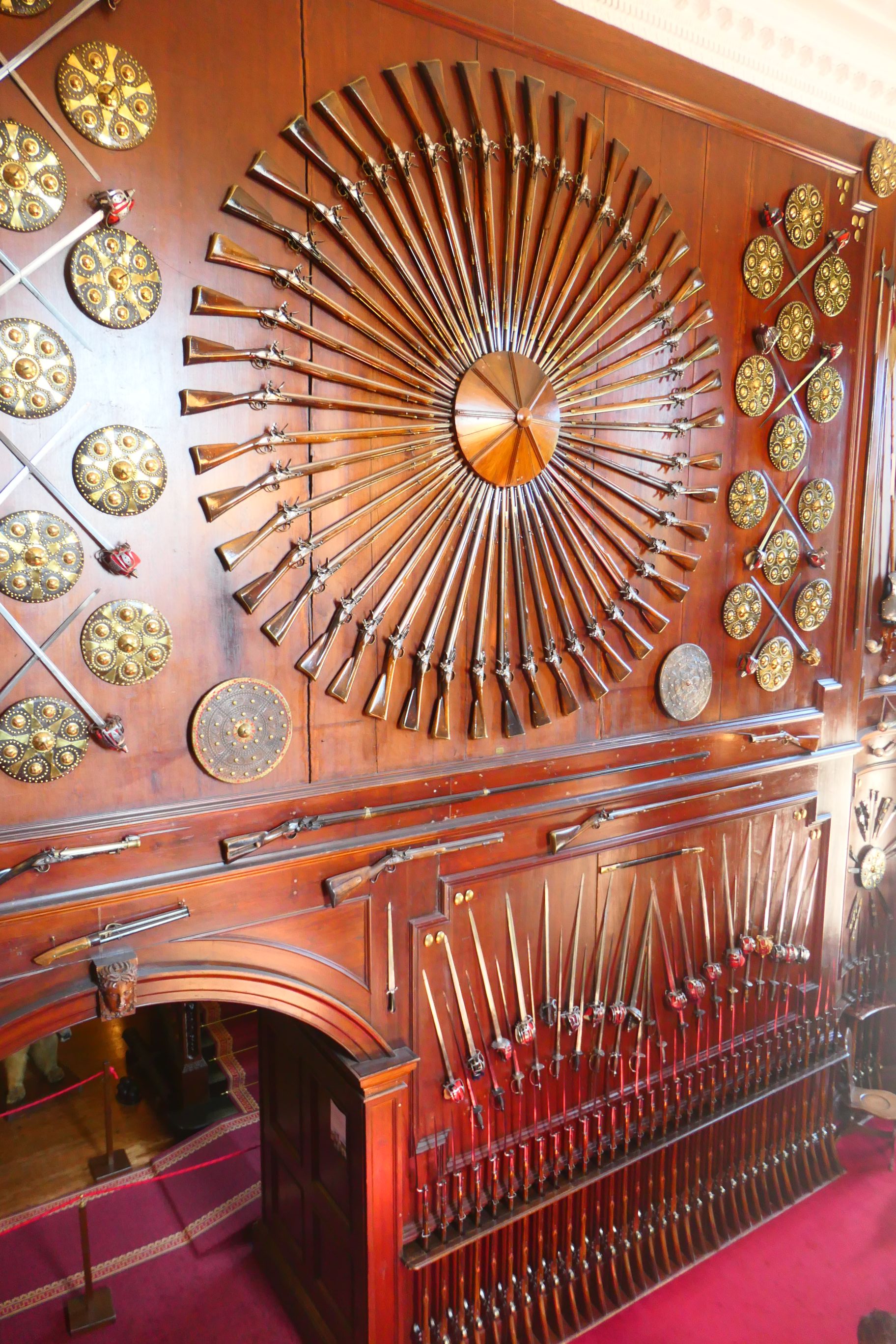 Setting foot inside the entrance to the castle, a striking display of weapons adorning the walls immediately catches your eye. This grand entrance was commissioned in the 1870s by the seventh Duke of Atholl, and includes muskets used at the Battle of Culloden. This Duke wanted to convert the mansion back to a castle.