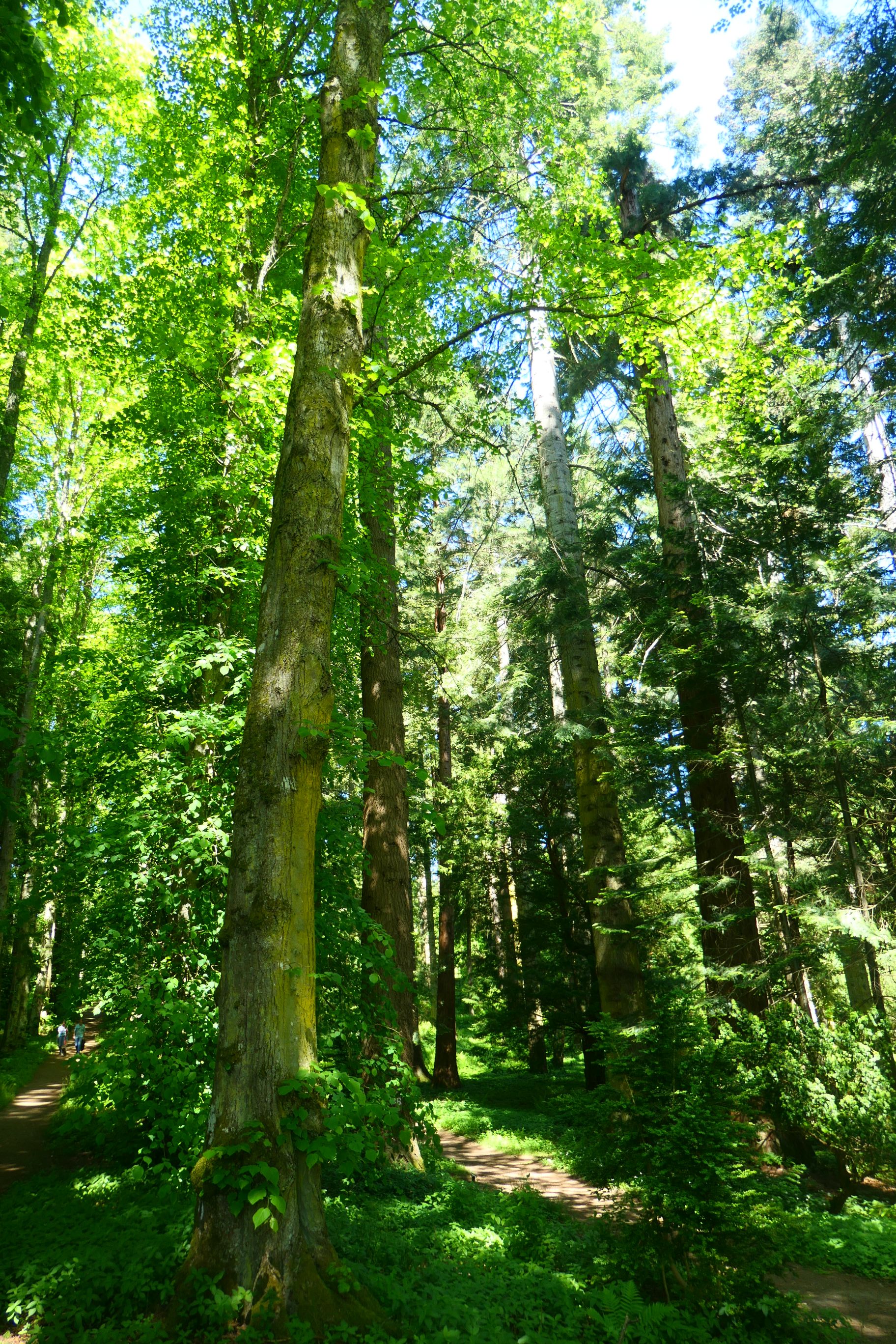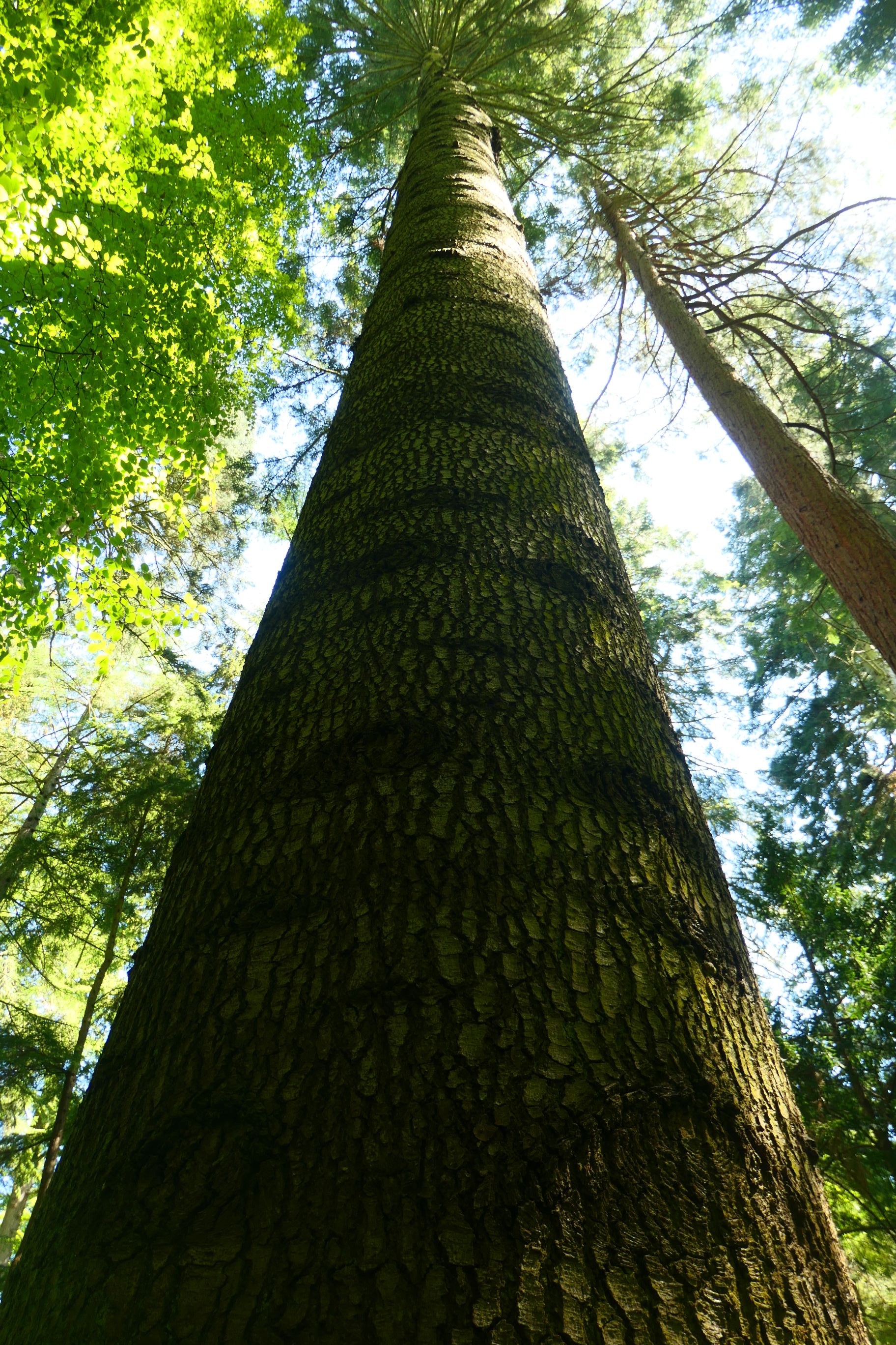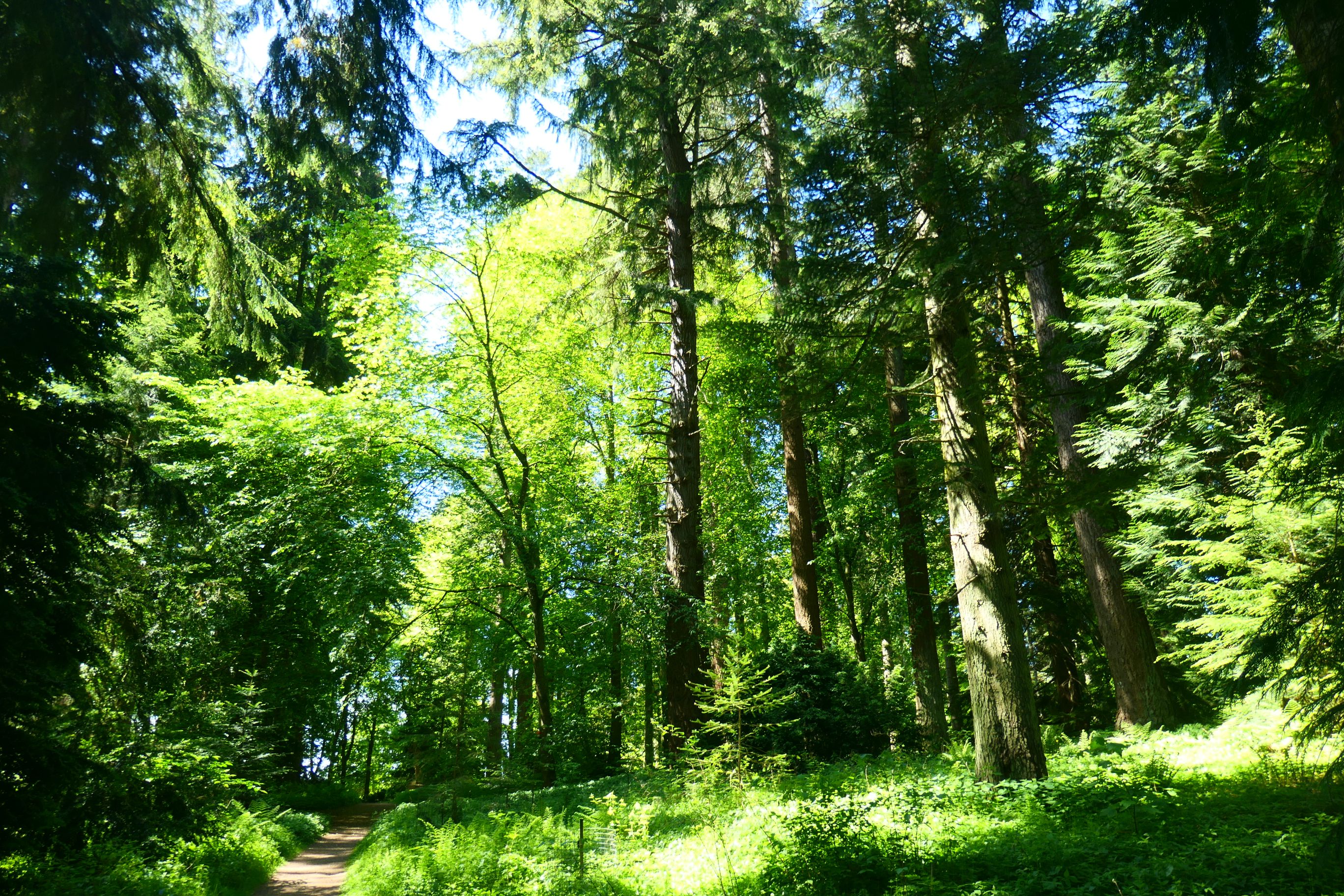 Beginning in the 1700s and continuing into the 1800s, several of the Dukes of Atholl created a wonderful wooded area within a few minutes’ walk from the castle. They became known as the ‘Planting Dukes’, and were responsible for planting over twenty million trees on their large estate. They called the forest they created Diana’s Grove, named after the Greek goddess of hunting. They introduced species that were native to other parts of the world, some of which had never been planted in Britain beforehand. Today the trees they planted have grown to be some of the tallest in the entire UK. Some of the trees found in the grove include sequoia, larch and several different species of fir. They towered over us as we wandered along the forest trail.