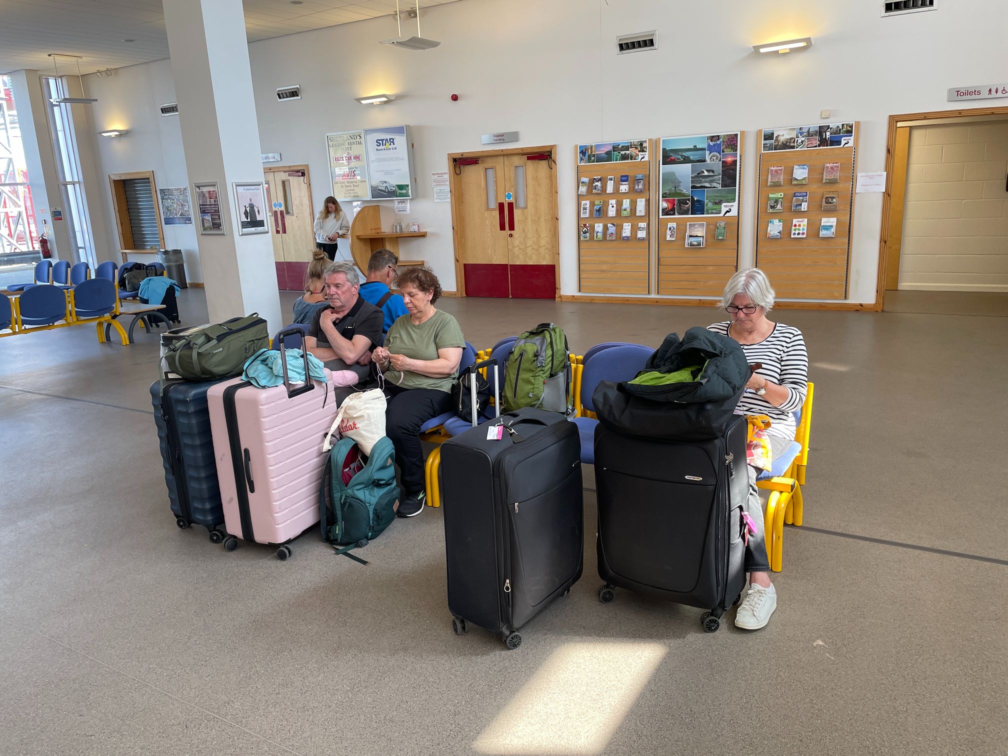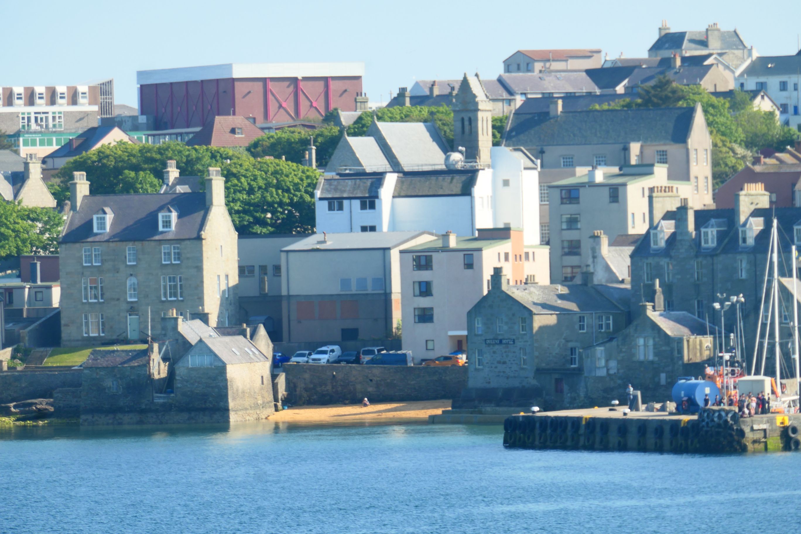 We grabbed some lunch and headed back to the apartment to clean it up before vacating it. We chose a new lane to walk up. It was a dumb choice. I think we all found it the most challenging lane in all of Lerwick. It was just one steep climb all the way, with no steps or places to rest. We were all puffing and sweating when we reached the top. Thankfully it brought us out very close to where we’ve been staying. It was 17 degrees in Lerwick today and the sun was out, making it much hotter than you might think.