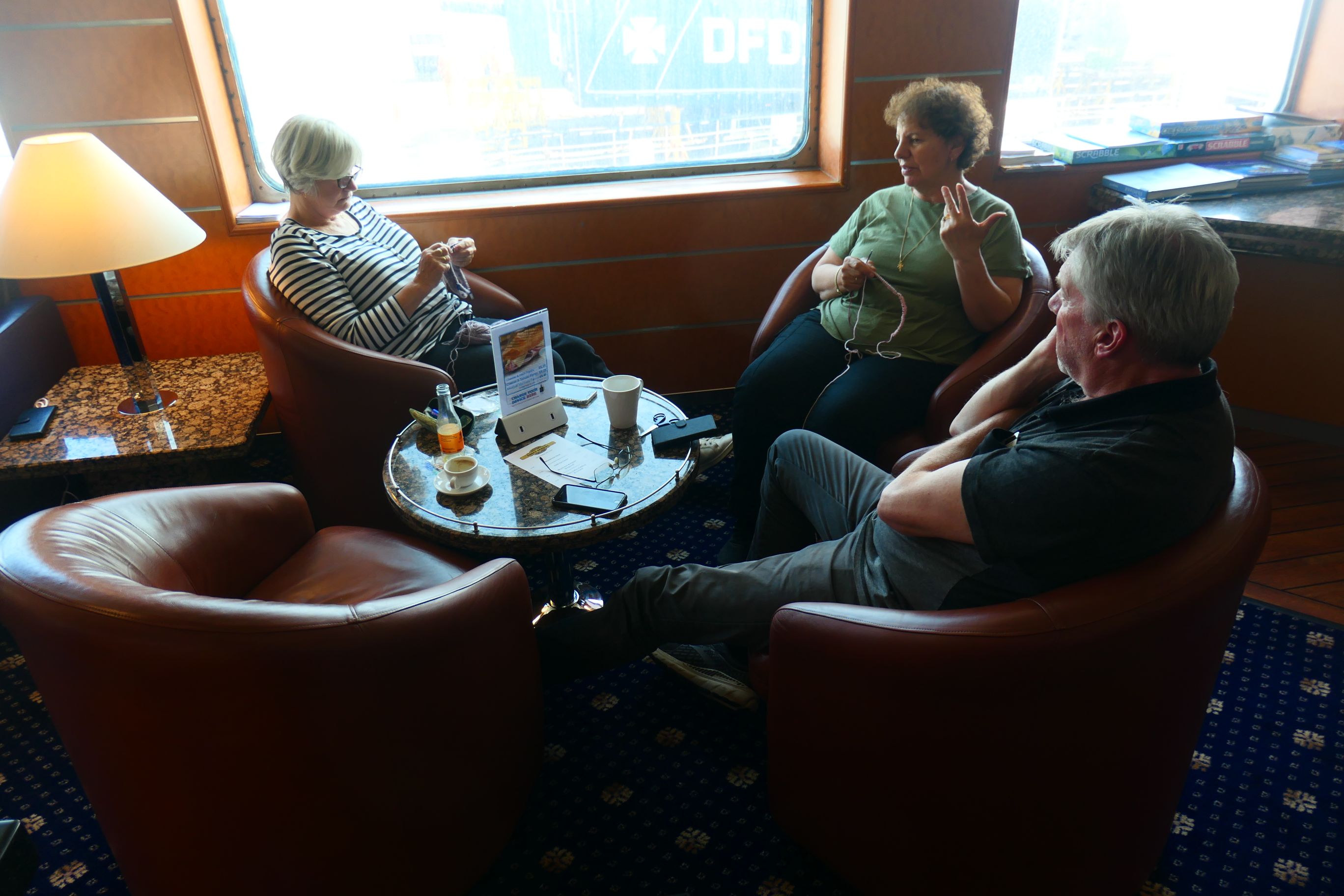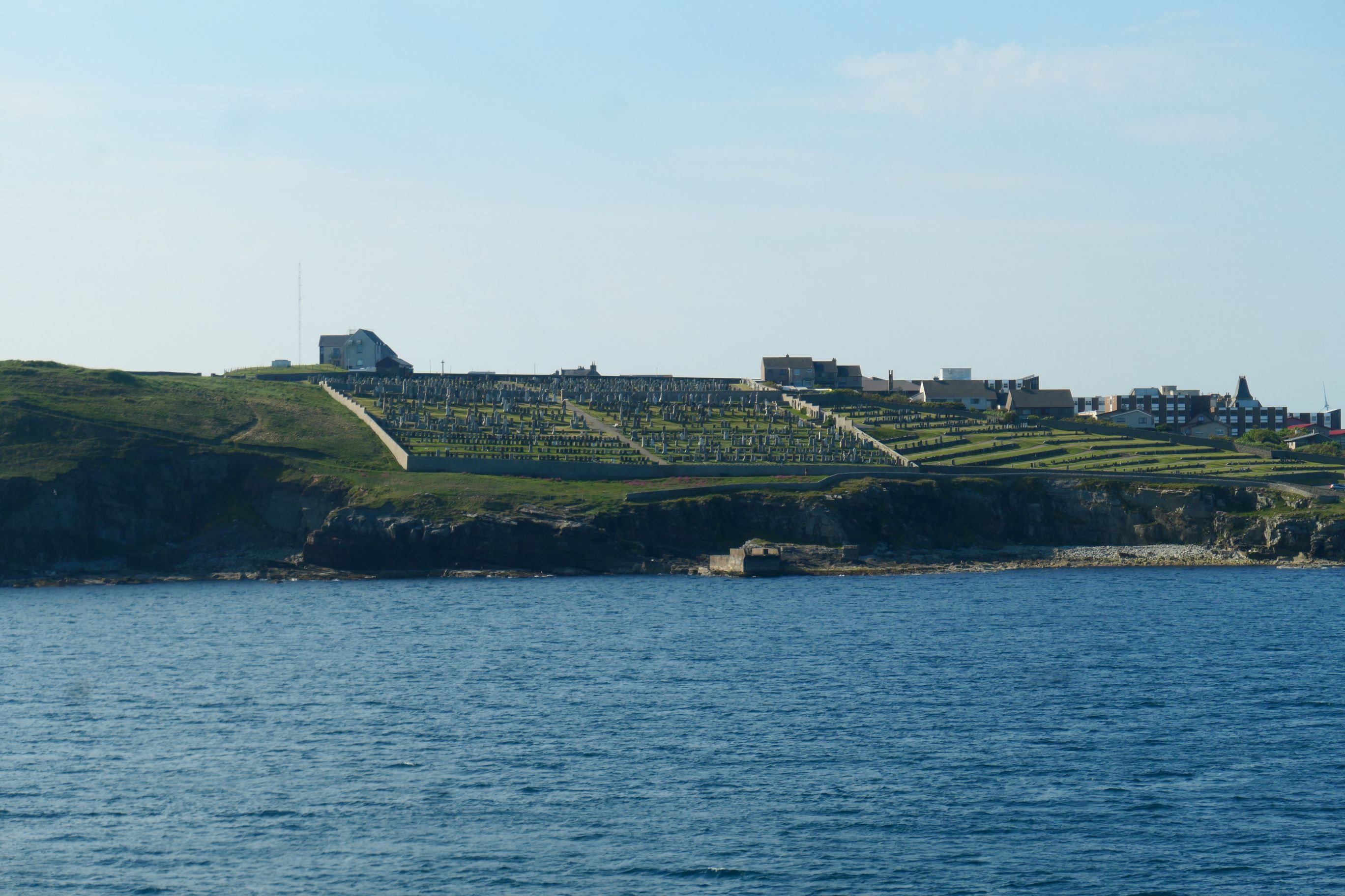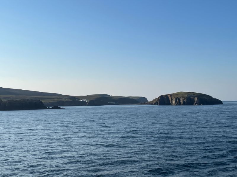 A couple of hours into the journey, the captain made an announcement, informing us that we were about to pass Fair Isle, the most southerly of the Shetland Islands, on our starboard side. I went out on deck and took some photos. It’s not a very big island and the northern end didn’t seem to have many dwellings on it. There was a small settlement at the southern end, near the lighthouse. I’m glad I’ve seen it. It might have only about 60-70 inhabitants, but it has given us a style of knitting that I think is really beautiful. My mother-in-law, Betty, used to knit fantastic Fair Isle vests. I wonder if the knitting tradition continues on Fair Isle today. It seems to do so in other parts of Shetland.