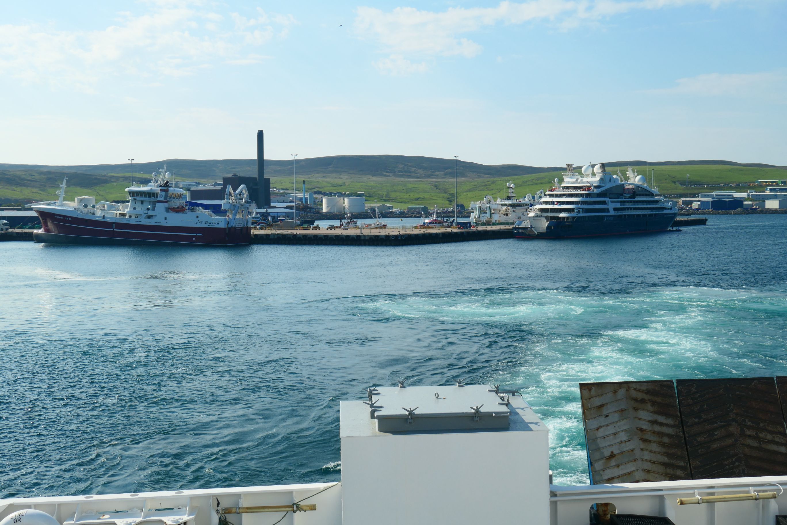At about 5.10 pm, twenty minutes before we were due to depart, an announcement was made that all passengers were now aboard and the ferry would be departing immediately. Then we were moving. I went out on deck to get some photos of Lerwick and Bressay for possibly the last time. I felt a bit sad. I’m sure we all did. Shetland has been so much fun. We’ve seen and done some amazing things and we’ve met lots of really nice people. The weather has been great and so has the hospitality. I’ll always be grateful that we made the effort to come all this way and stay as long as we did.