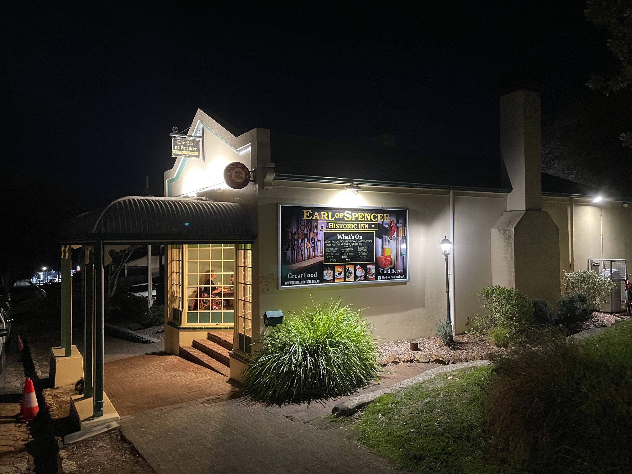 This evening we had dinner at the Earl of Spencer historic pub, established in 1884. It serves classic pub food and has the feel of a British pub about it. In the morning, we’ll begin our long drive back to Perth straight after breakfast. The footy game we’re attending starts just after 6pm.