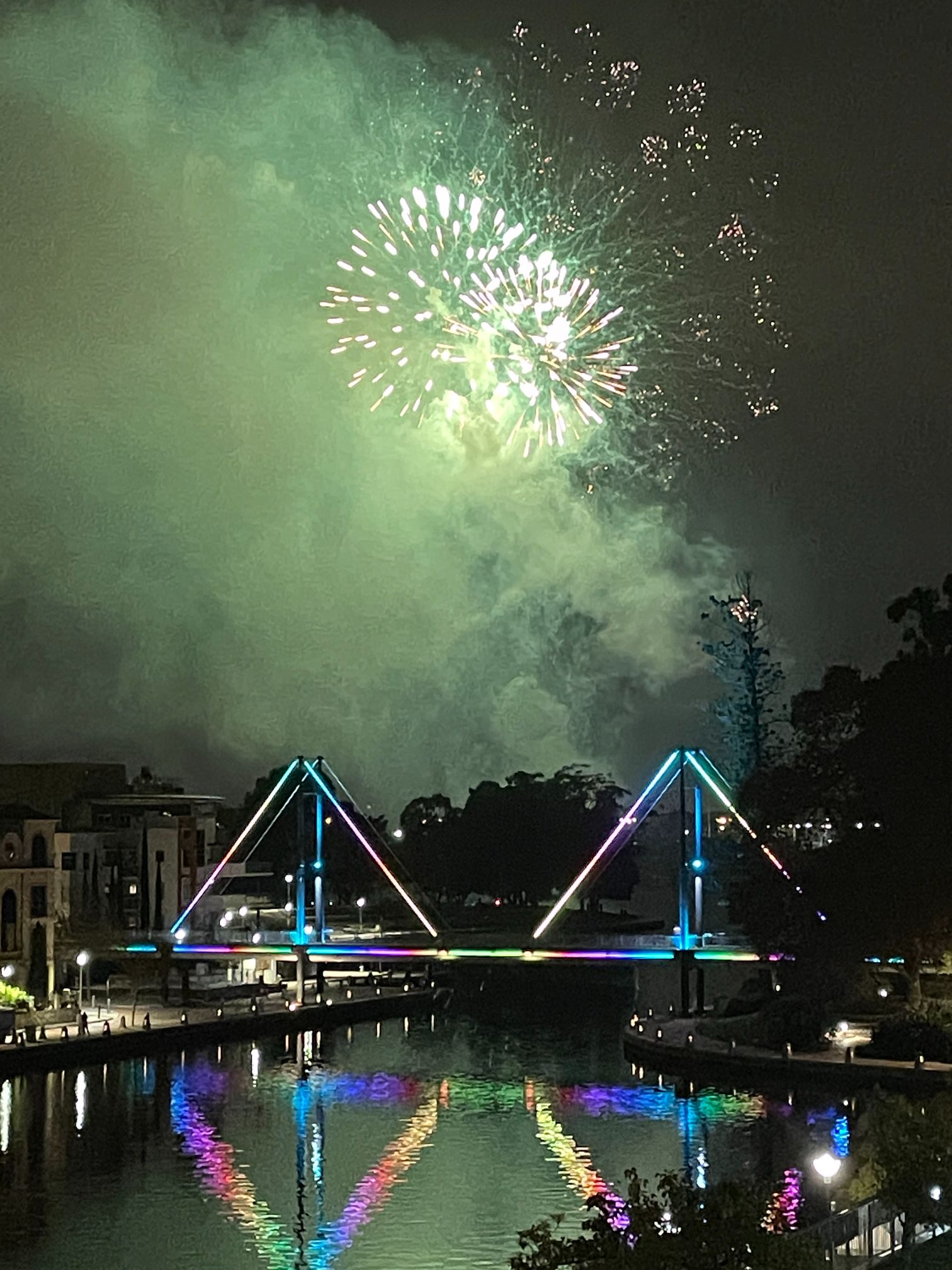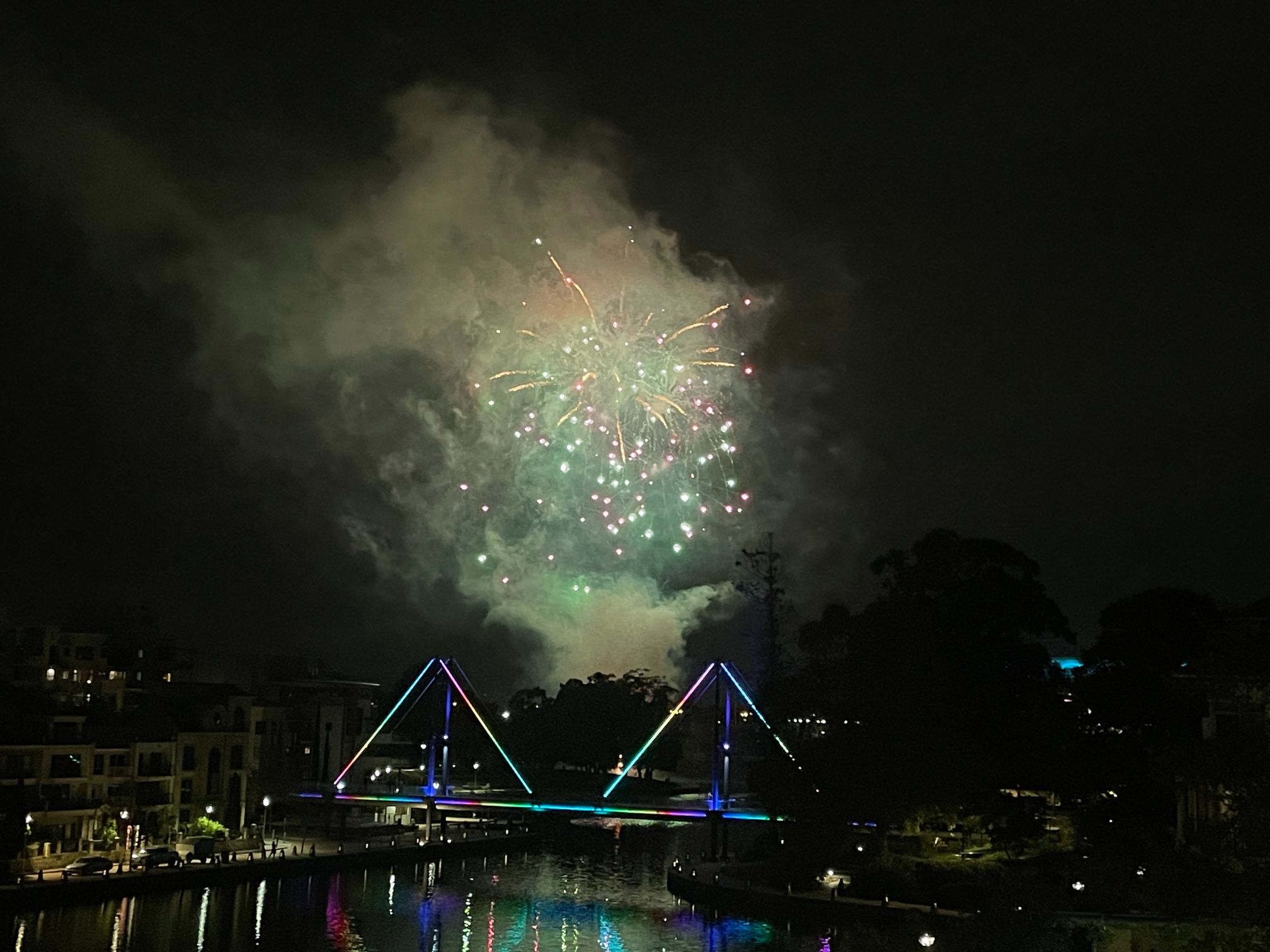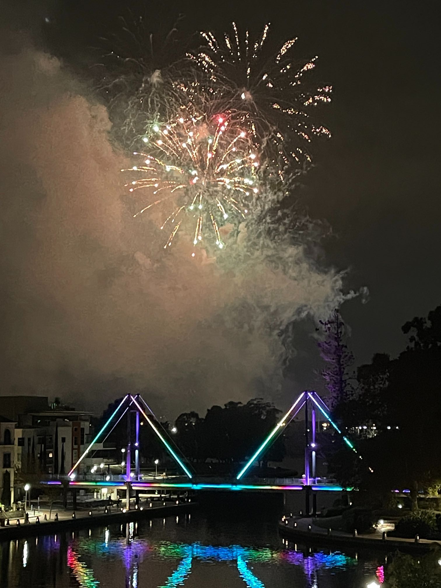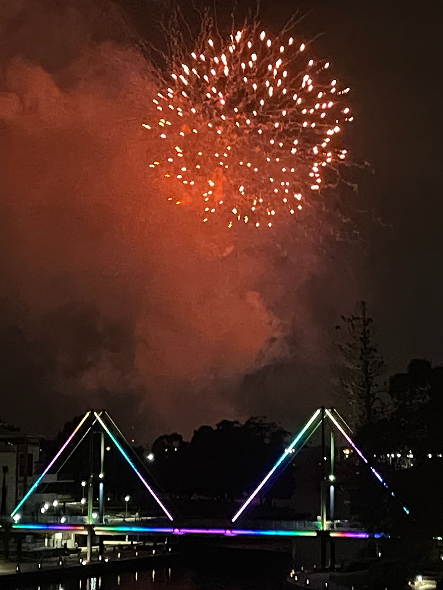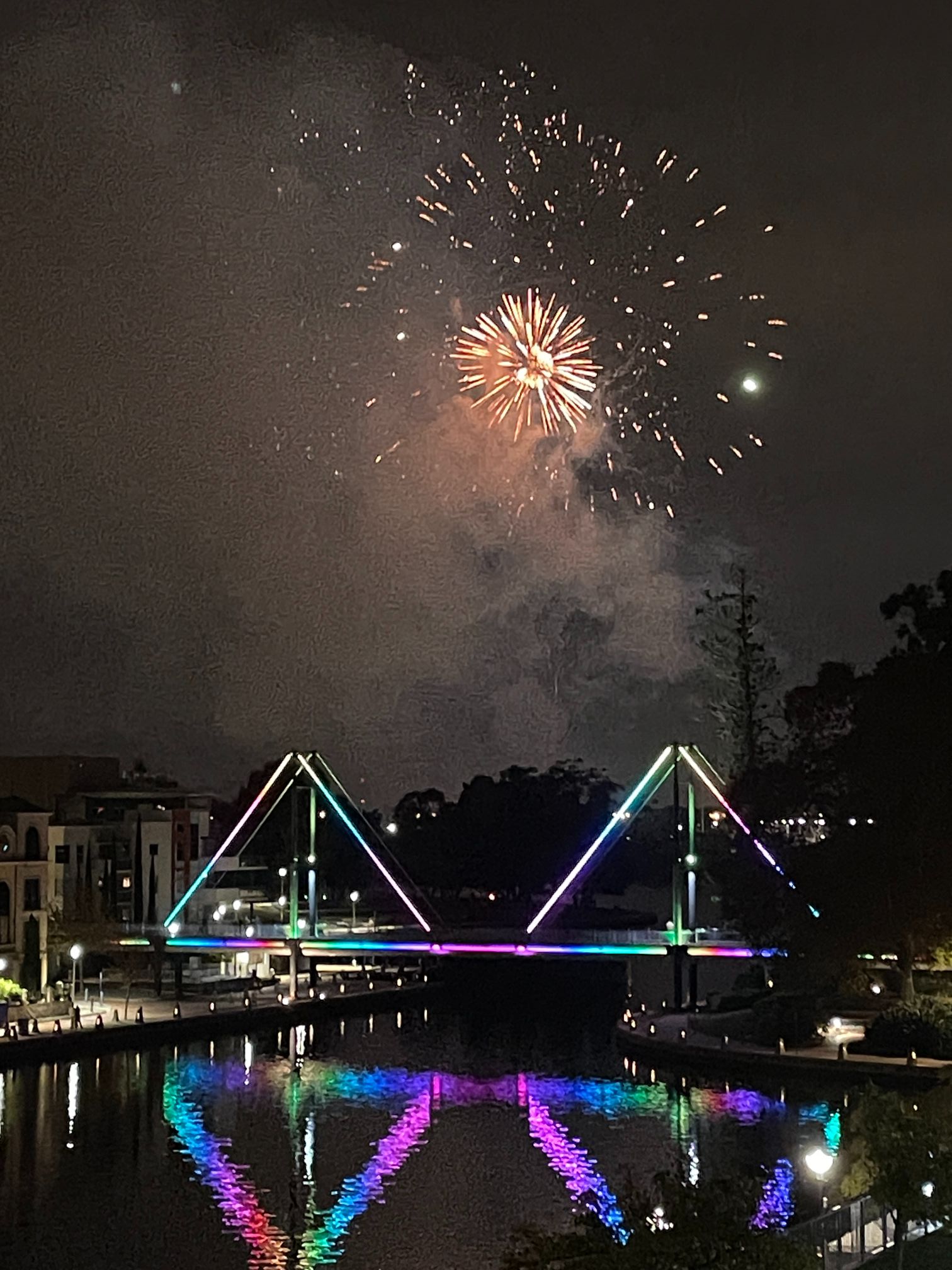 At 8.30pm, we’d just returned to our hotel room after dinner when the unmistakable, and very loud, sound of fireworks started up. We stepped out onto the balcony to watch. For the next eight minutes the display continued. It was coming from Optus Stadium, where we’d attended the footy game last night. I googled the reason for the fireworks. Believe it or not, they were part of an event listed as the WAIDA Gala. What’s WAIDA? The Western Australian Indian Dental Association. Who ever knew dentists could be so much fun!