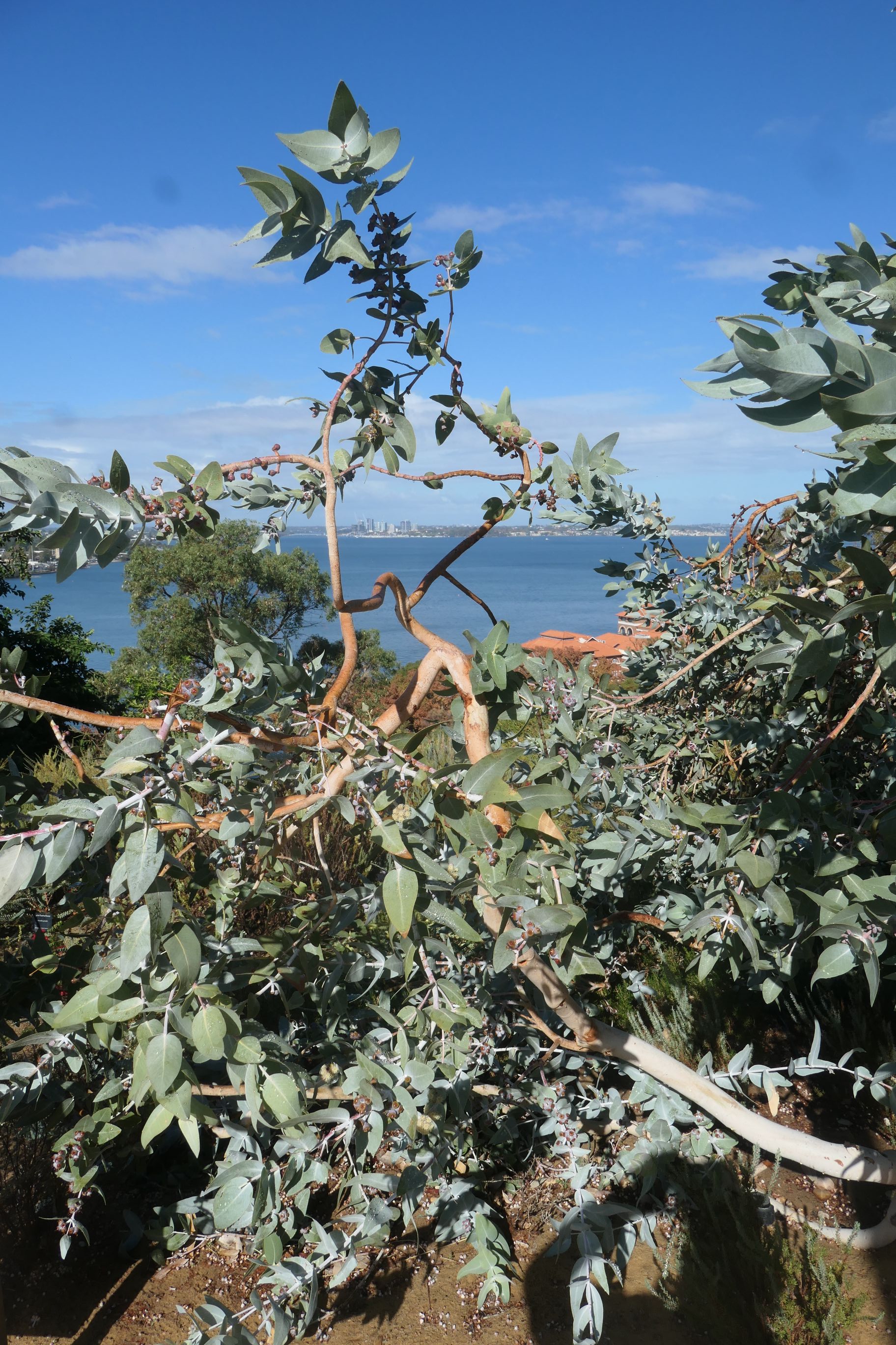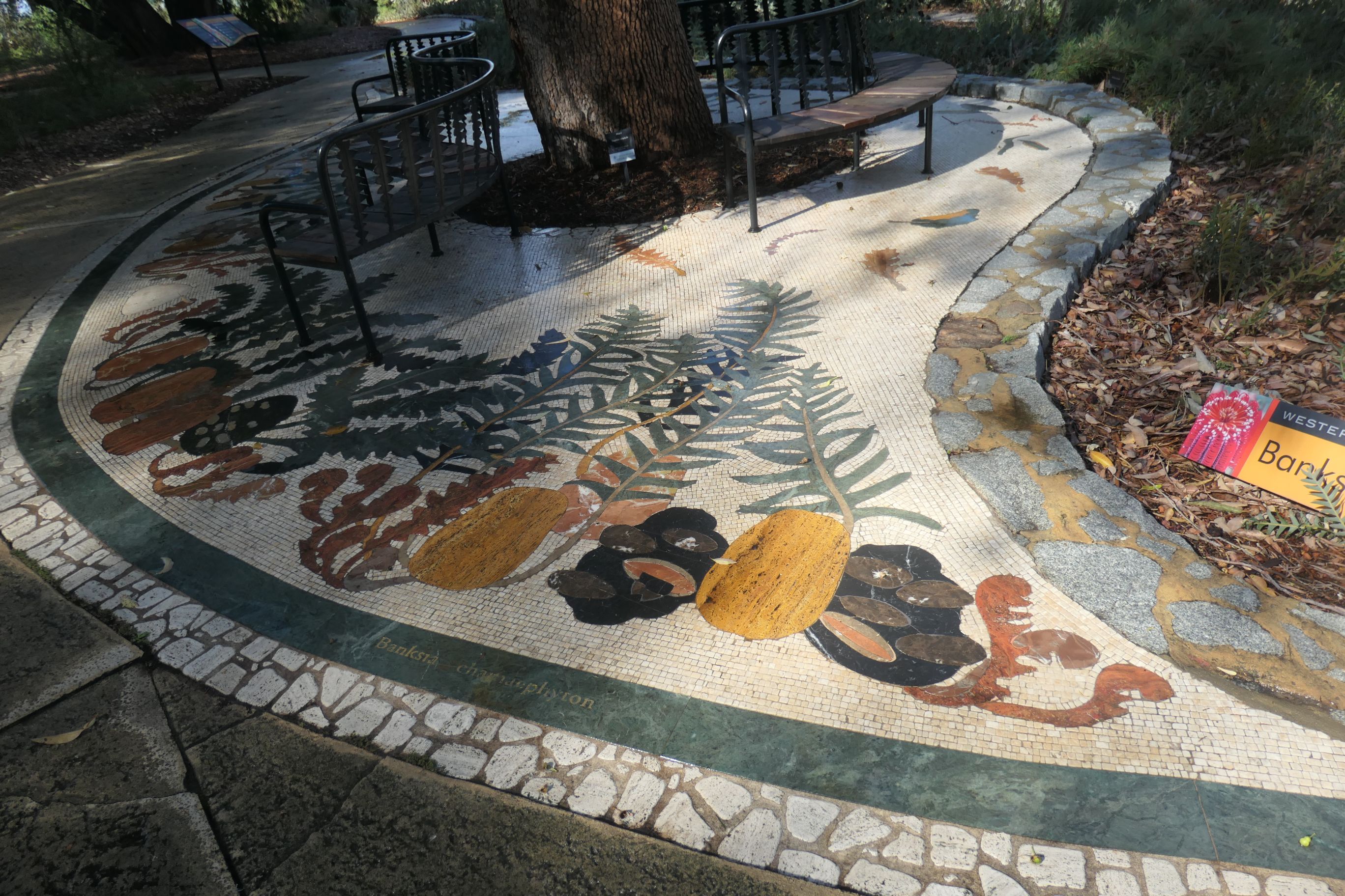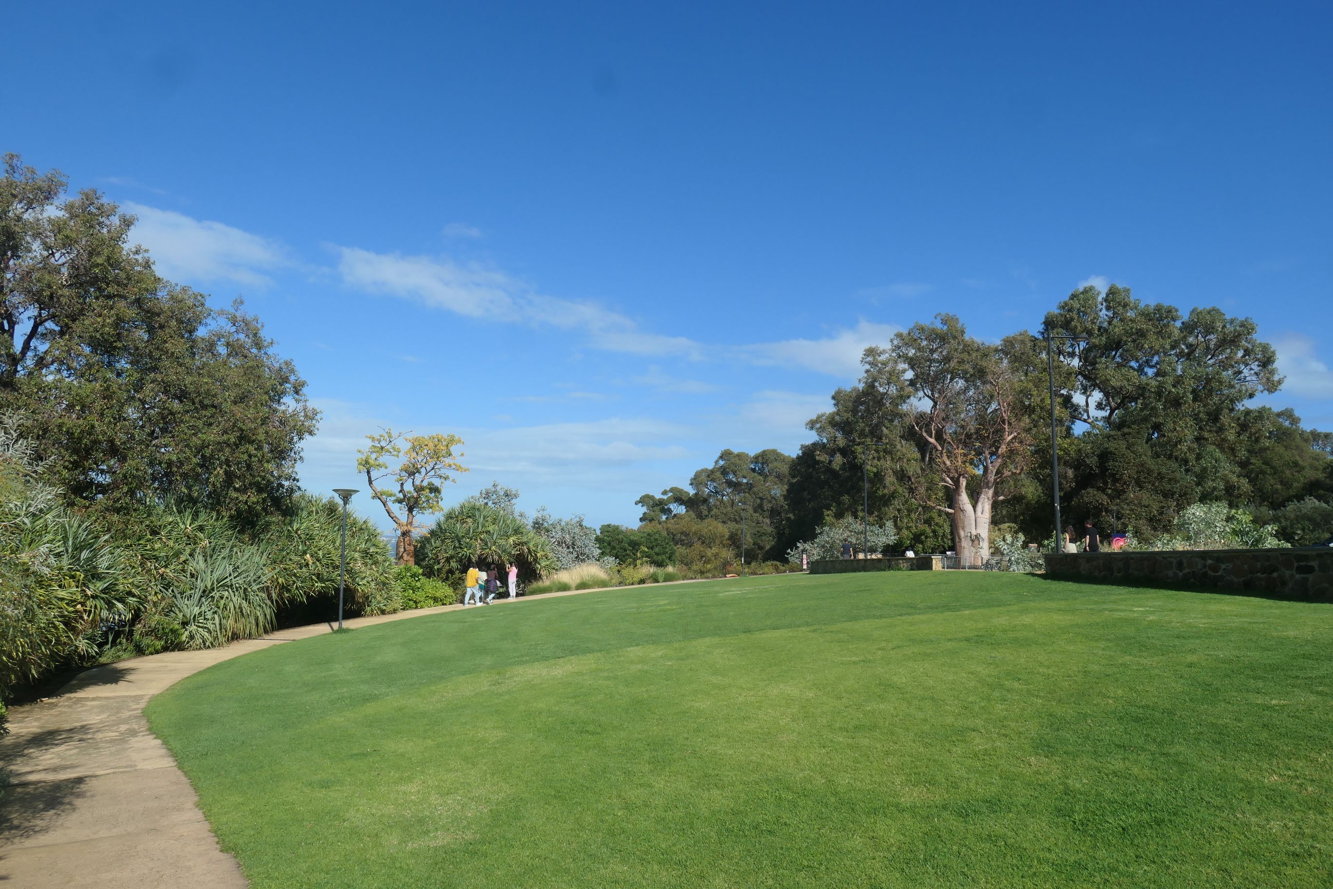 Marg and I spent some time at the memorial, taking a few moments to read the names of the fallen. We were just setting off to venture down one of the trails when it began to rain – rather heavily at first. We abandoned our walk and hurried to shelter in the guest shop. The rain soon stopped, but Marg took some additional time to emerge from the shop, looking quite pleased with her purchases. The skies were soon clear again, and we set off once more to explore the winding paths of the Botanic Garden, which features over 3000 different varieties of plants native to Western Australia, arranged into a number of smaller feature gardens such as the desert garden, the banksia garden, etc. Every so often a gap through the trees would reveal a stunning view of Perth and the Swan River. The lawns were broad and immaculately maintained. The plants varied from the smallest ground covers to the forest giants and everything in between. They’d been allowed to grow as they would do in the wilderness – all sorts of shapes and sizes, some full and bushy, others straggly and growing out over the paths. Every plant was accompanied by a small information panel identifying it. The centrepiece of the botanic garden was surely the 750-year old boab tree, carefully transported from the Pilbara in 2009 when it had to be removed for a road to be constructed and was gifted to the trustees of the garden by the Pilabara indigenous community.