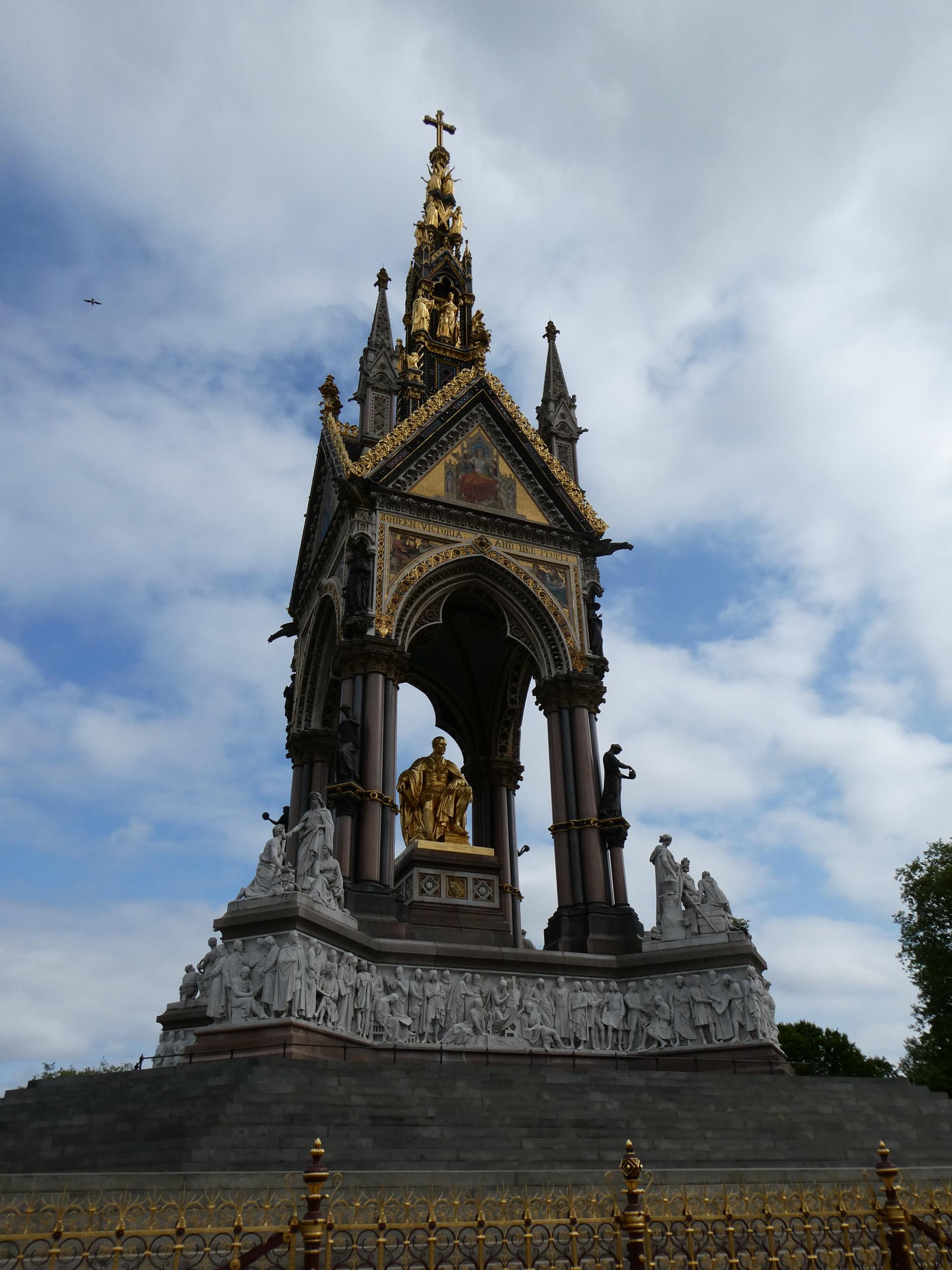 We walked through Hyde Park, passing Kensington Palace, one section of which was covered with scaffolding. It was my first time in Hyde Park. I was struck by the sheer size of it. I wonder if it was a clever town planner or maybe a royal decree that was responsible for its creation. Sharing the path with us were joggers, cyclists, dog walkers, businessmen and women hurrying to work, school kids and sightseers. We found a path marked ‘No cycling’. Few people were on this path and we were able to briefly enjoy having a whole section of the park to ourselves. We arrived at the Albert Memorial, Queen Victoria’s enduring tribute to her late husband, an imposing structure which reminded me of the Walter Scott monument in Edinburgh – with the exception that Albert, unlike Walter, is covered in real gold. Directly across the road was the Royal Albert Hall. Rod and Cornelia visited it yesterday, while Marg and I were still in Singapore. I’d love the experience of going to a concert there one day. I’ll add it to my bucket list.