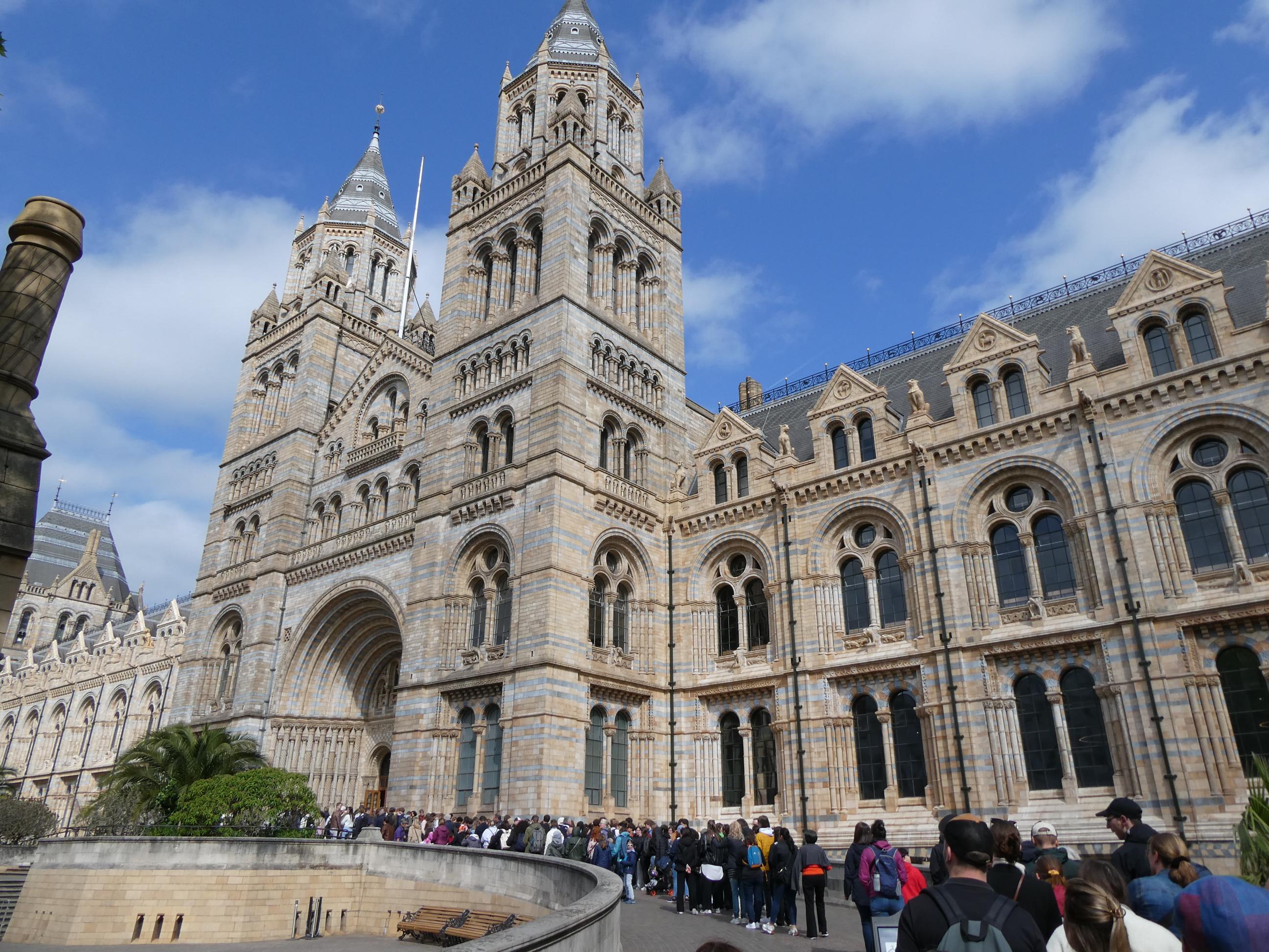 We joined the long queue waiting for the doors to open at the Natural History Museum. It’s one of three famous museums here in South Kensington. The others, just around the corner, are the Science Museum and the Victoria and Albert Museum. No doubt these museums were intended to educate and impress the people of London when they were built during the reign of Queen Victoria, at a time when Britain ruled a good portion of the globe. I was expecting to step inside and find myself surrounded by interactive displays and other innovative 21st century ways of exhibiting the wonders of nature. Instead, I found myself stepping back in time to galleries filled with static displays of stuffed animals in glass cases. I imagine visitors in Victorian times must have experienced something very similar to what I was seeing. The bird and mammal galleries featured rather sad looking specimens, many of which seemed to date back to an era when taxidermy had not yet reached its peak. A dodo’s lifeless glass eyes stared back at me. A panda whose coat was so faded by the passage of time almost looked more like a wombat. These galleries reminded me so much of the way Melbourne museum was when I was a little kid and would visit it with my grandfather. It must have been mindblowing for the Victorians to come here and see these strange creatures gathered from the far corners of the British Empire and beyond, and I’m glad I was able to view the wonders of the natural world as they might have. Other galleries were a little more hi-tech. There was one hall dedicated to conservation, for example, highlighting current innovative practices combating the effects of climate change. My favourite display was the dinosaurs. It was interesting to see a sign offering people the option to take an alternative path through the display if they didn’t want to come face to face with an animatronic tyrannosaurus rex. The lifelike model was more comical than scary as its head and neck moved, eyes blinked and jaws opened and shut. If it took a step, however, I would have been out of there like a shot!