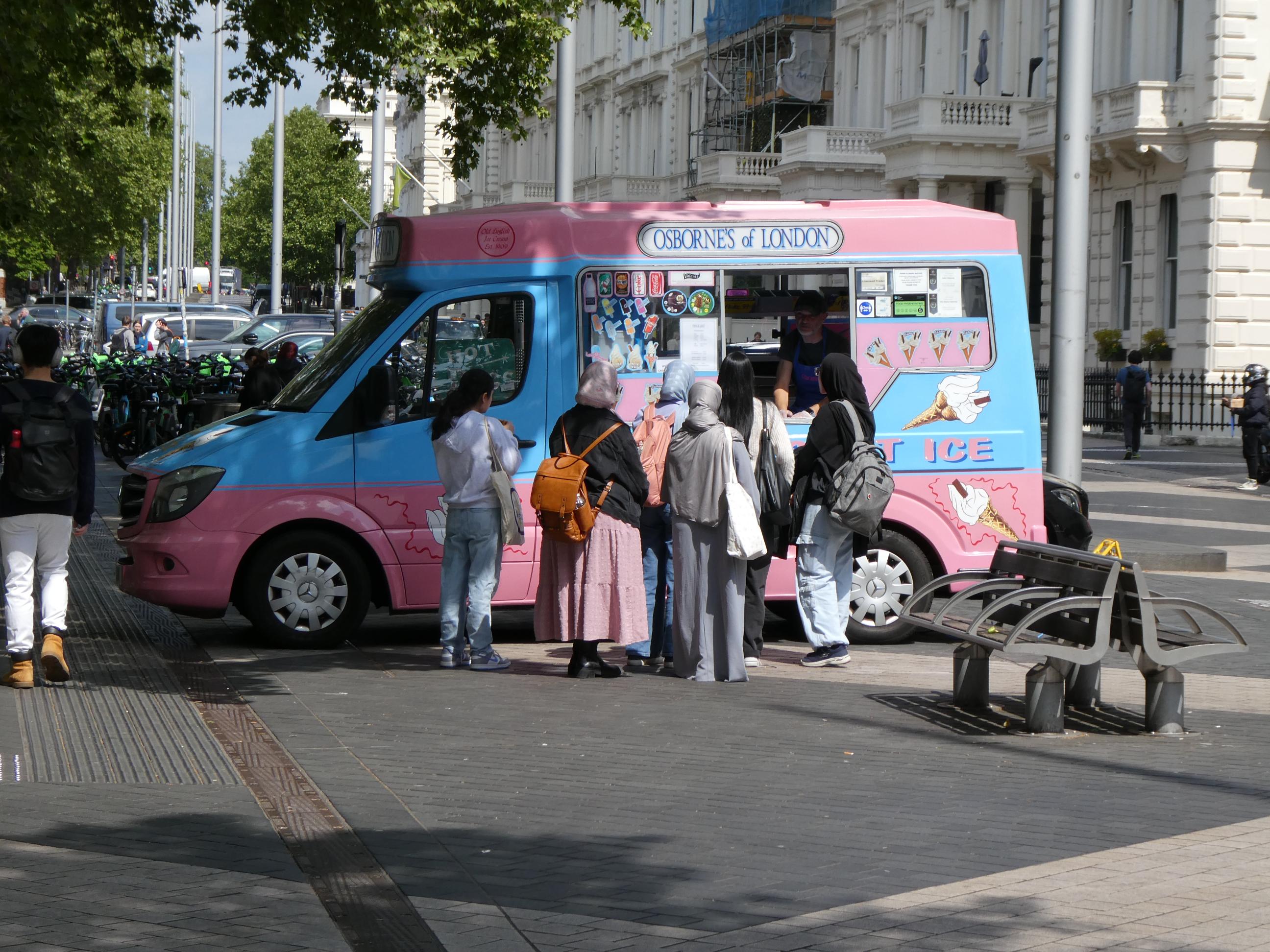 We left the museum and headed back through the park in the direction of Hyde Park Corner. We could hear the Household Cavalry Regiment drilling behind the wall as we passed, though we didn’t see any horses. Perhaps they were preparing for the VE (Victory in Europe) Day commemoration, as today marked the 80th anniversary of the end of World War II in Europe.
