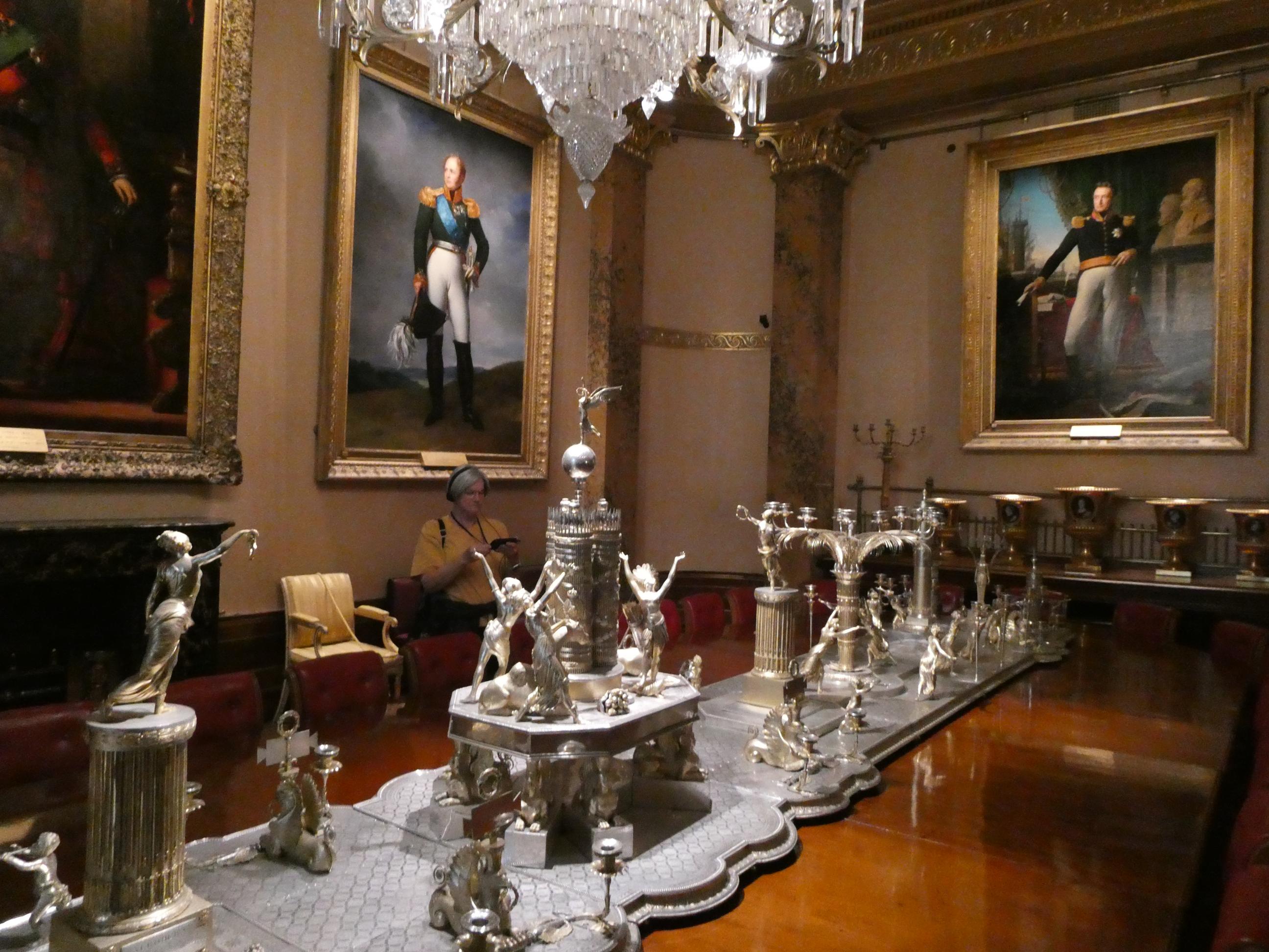 We ate lunch at a cafe on Hyde Park Corner, then entered Apsley House, the former home of the Duke of Wellington. The Duke won the hearts of British people when he led their armies to a series of victories over Napoleon, including the decisive one at Waterloo in 1815, and brought peace to Europe after many years of war. He also served as Prime Minister for a time. In addition to viewing the personal belongings of Wellington on display, such as his telescope, false teeth and famous boots, we got an insight into the way he entertained guests at lavish dinner parties and were able to view his remarkable collection of paintings from the Dutch masters. There was even a larger than life marble effigy of a naked Napoleon that had once belonged to the French military commander.