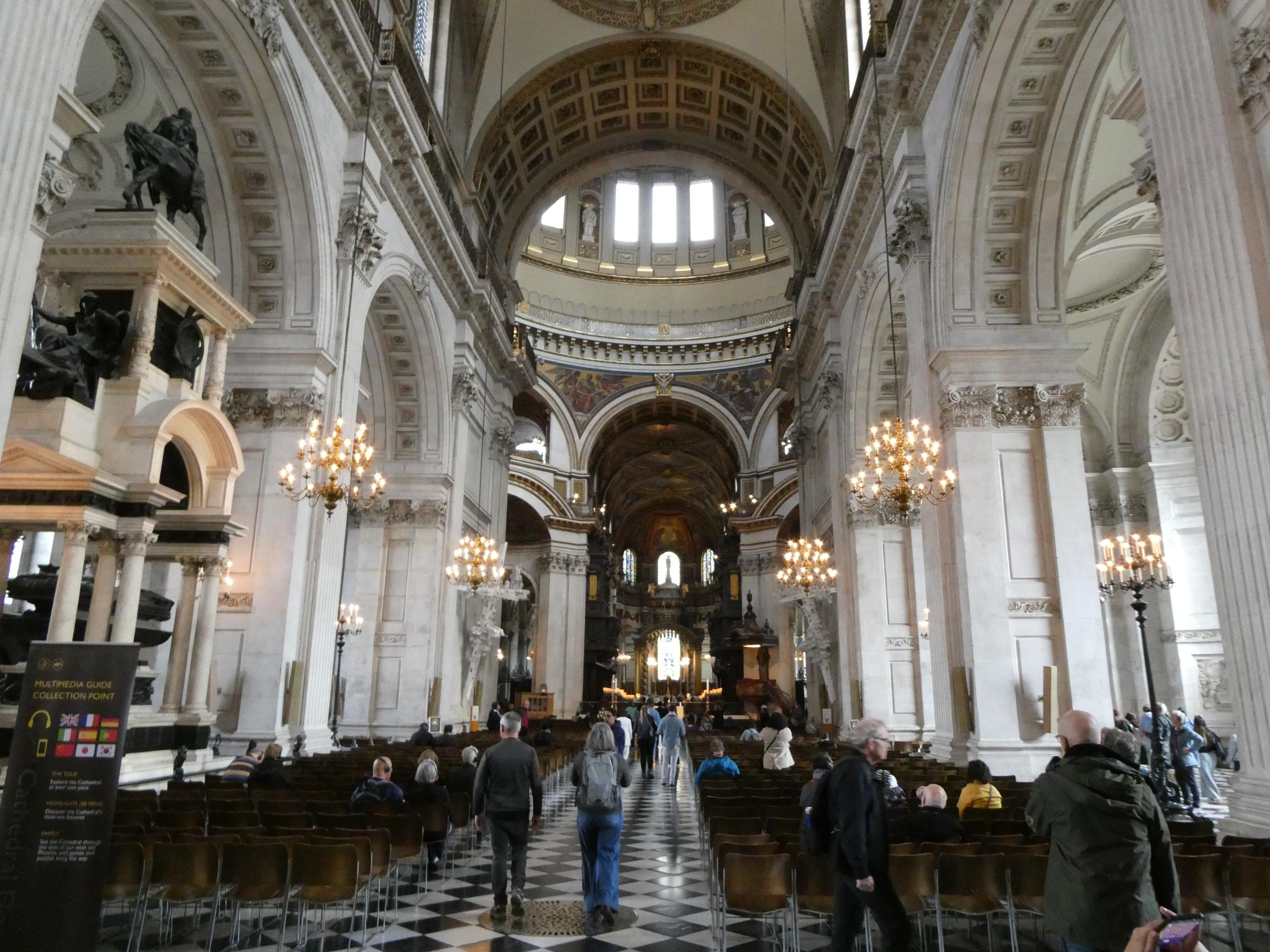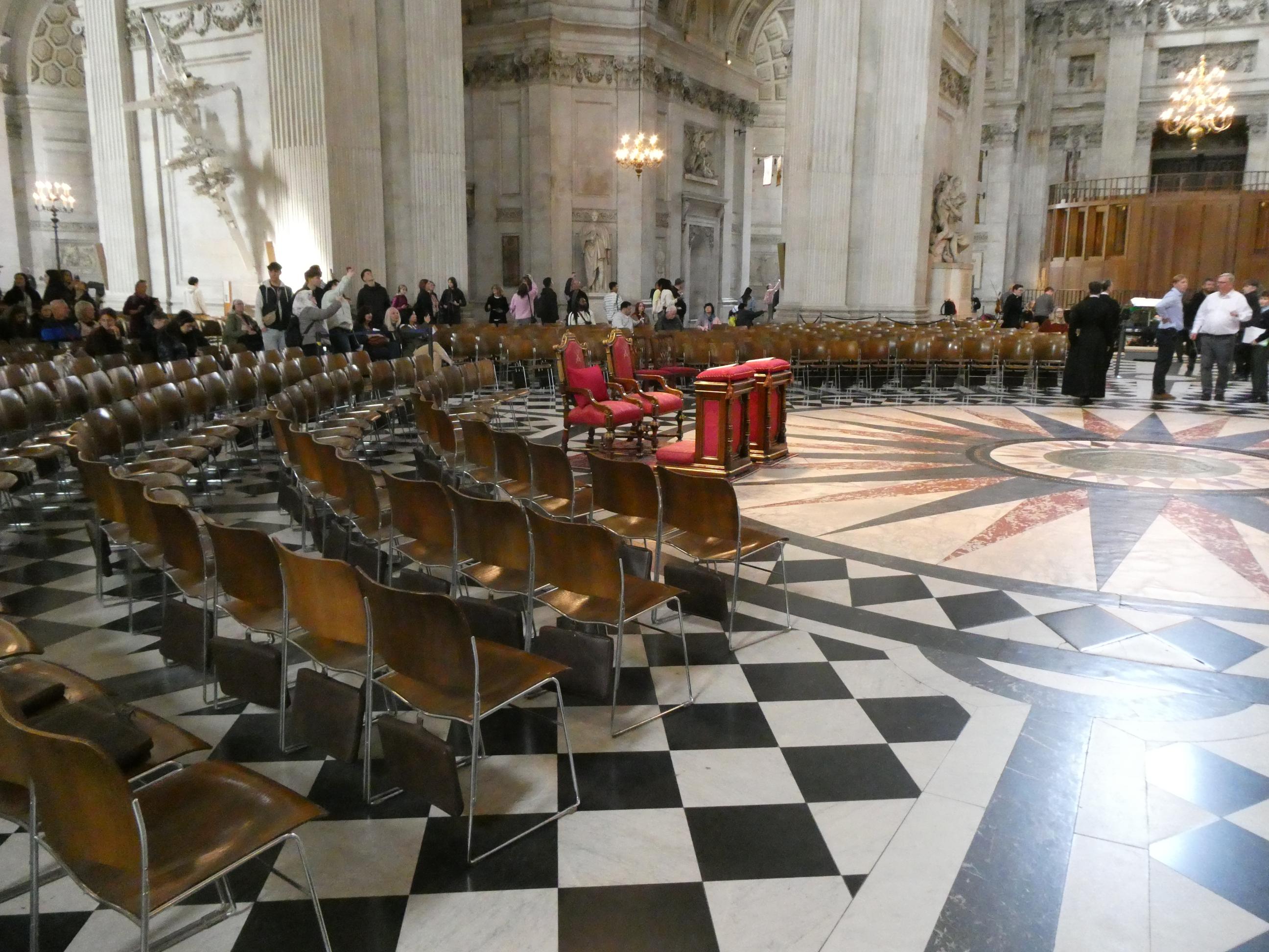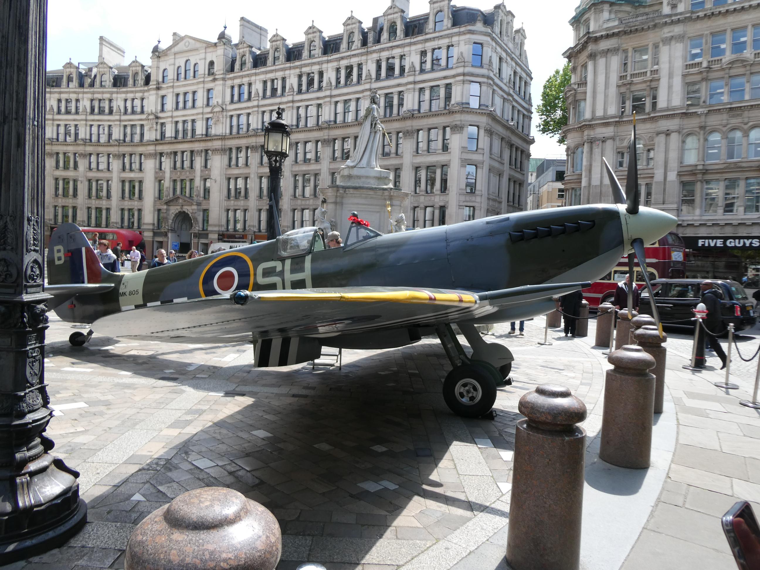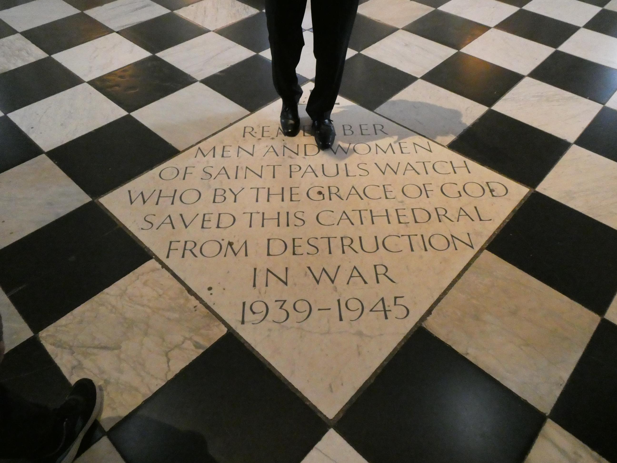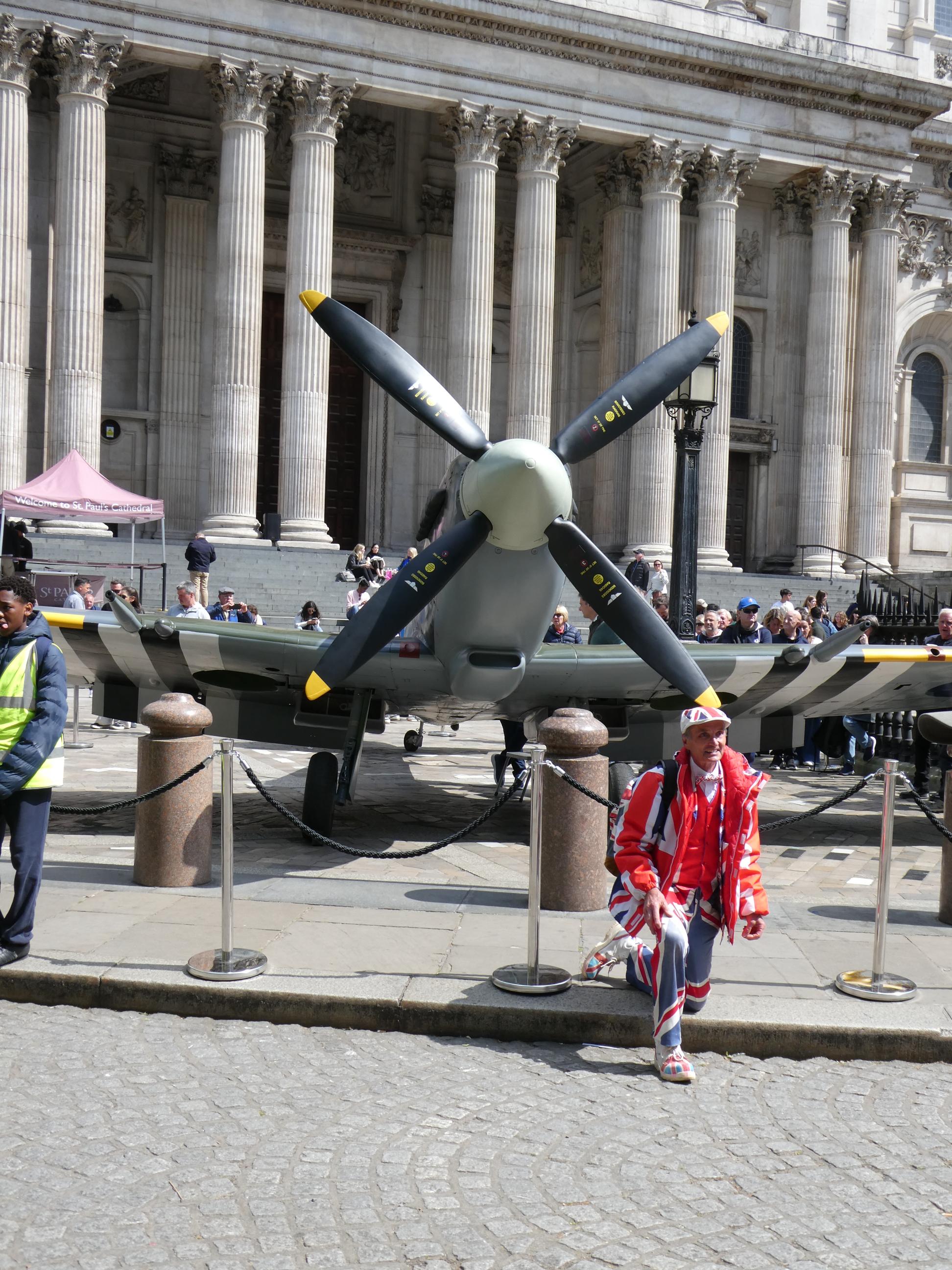 We took the Tube from Hyde Park Corner to Holborn, then changed for the train to St Paul’s. On our last visit to London, Marg and I had walked to St Paul’s, only to find the cathedral was closed to the public for the day. I really wanted to see inside, so I pre-booked tickets for an afternoon visit. Last week I received an email from St Paul’s informing me that they had moved forward the closing time for the day of my visit due to an important event taking place in the evening. It was good to get this warning, as we were able to change our schedule, arrive earlier and still allow ourselves a couple of hours here before the 4pm closure. It was a surprise to find a WWII Spitfire in the forecourt of St Paul’s. It was only going to be here for one day, the anniversary of VE Day, and the reason for the early closure to the public was that a special evensong to commemorate the event was to take place later in the afternoon.