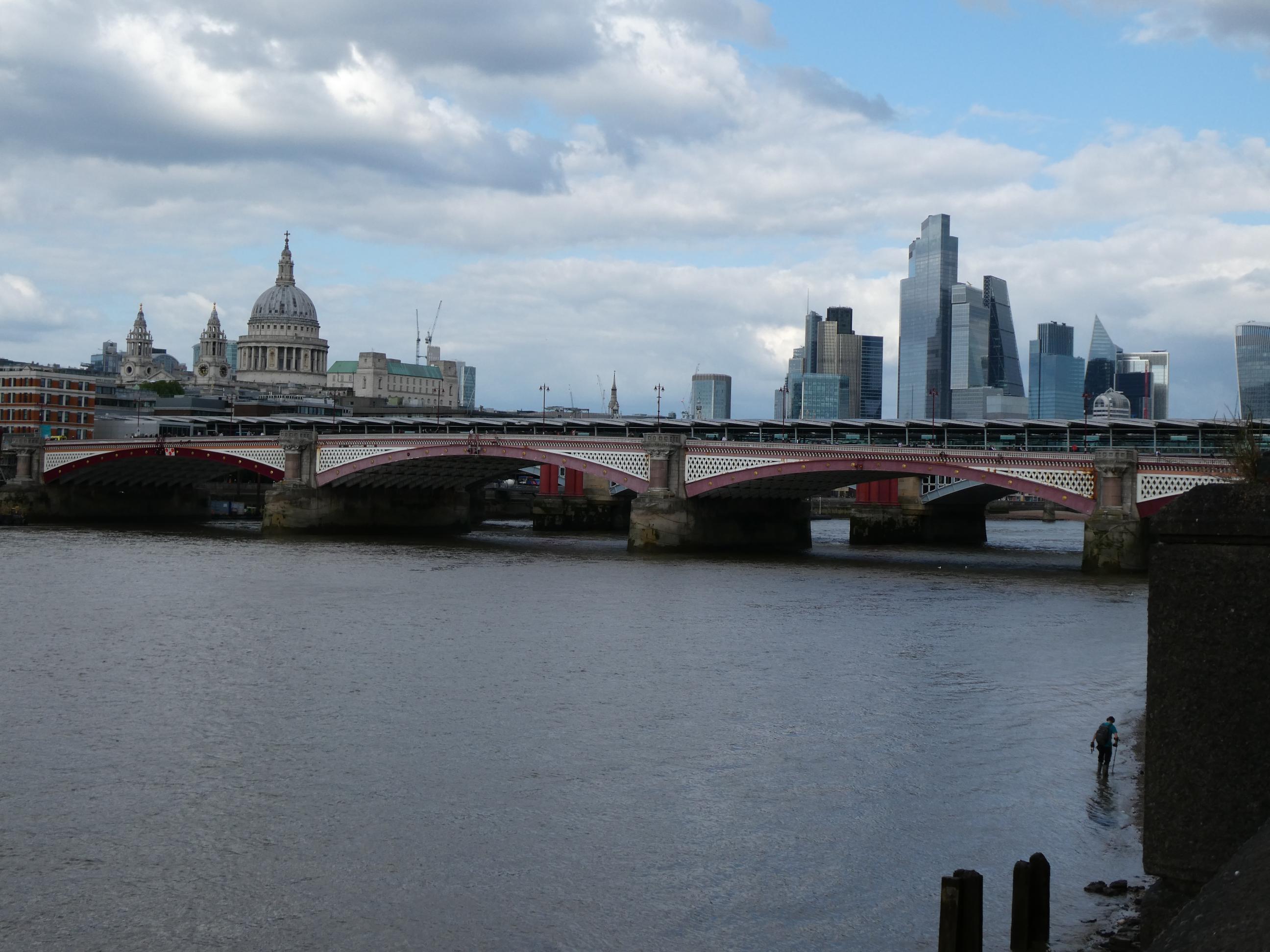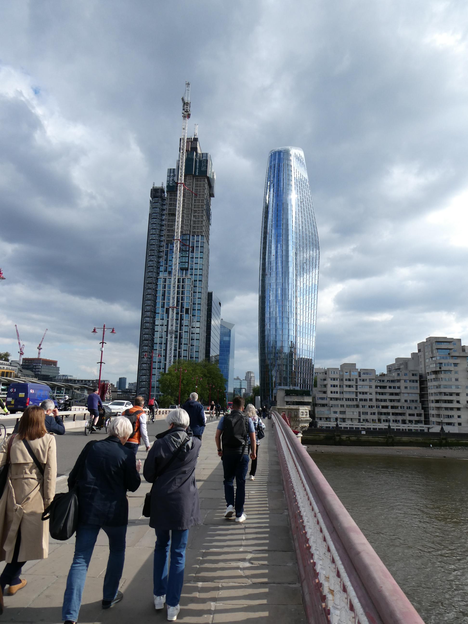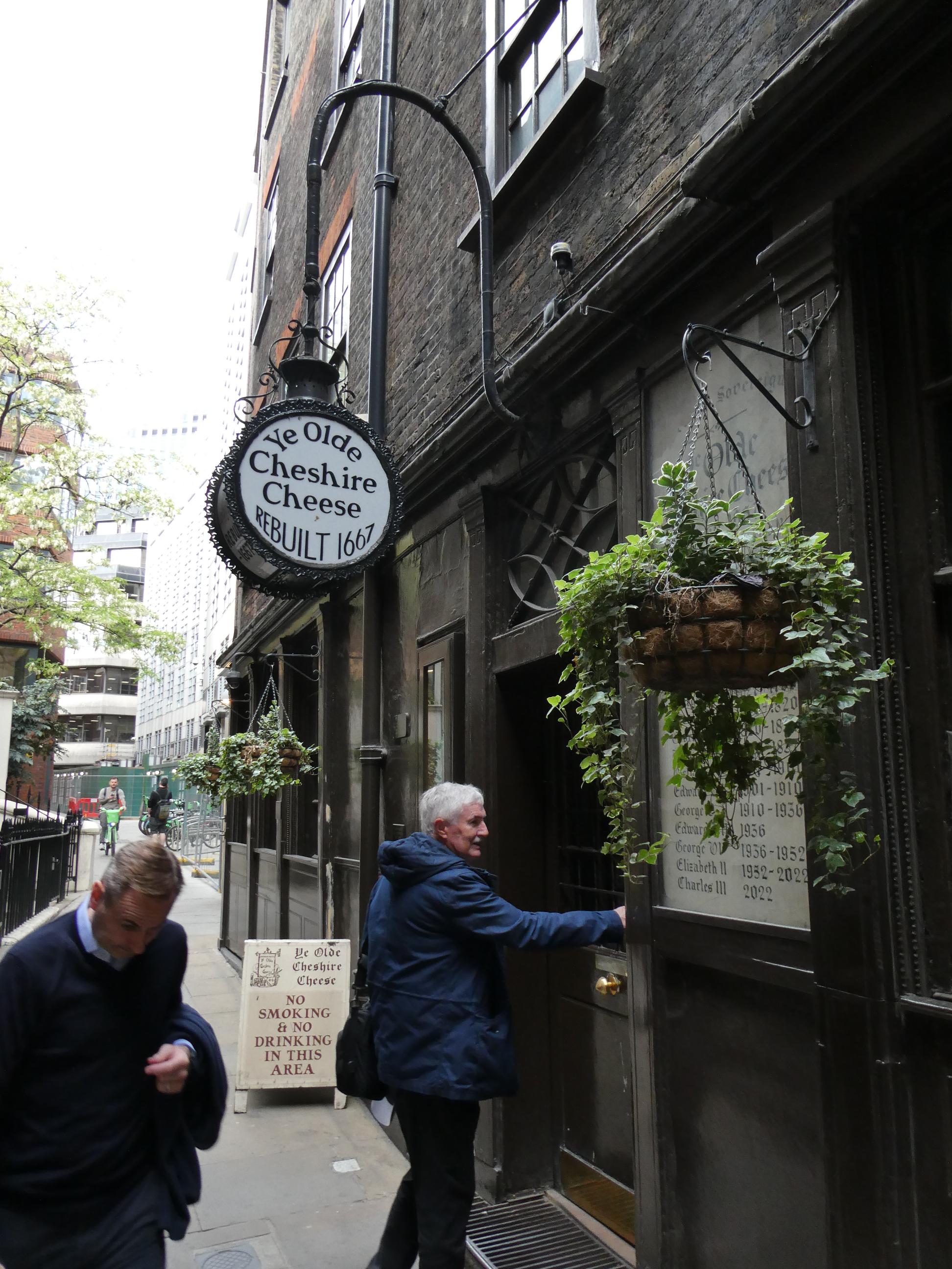We left the cathedral just as people were arriving for the VE Day service. Cornelia’s sister, Ursula, was waiting for us. Ursula was visiting London from her home in Switzerland. It was good to see her again. On our last trip to Europe, Marg and I had spent some time in Lyon, France, with Ursula. After a busy day, we needed a drink, so we made our way to a quaint little pub, ‘Ye Olde Cheshire Cheese’, in Ludgate Hill, which was opened on this site in the 1600s. It’s one of Rod’s favourites. The beer was good. We crossed the Thames and found a place in Southbank for an early dinner. Being back in England again, I didn’t even need to look at the menu to know what I wanted – fish and chips with mushy peas. Delicious.