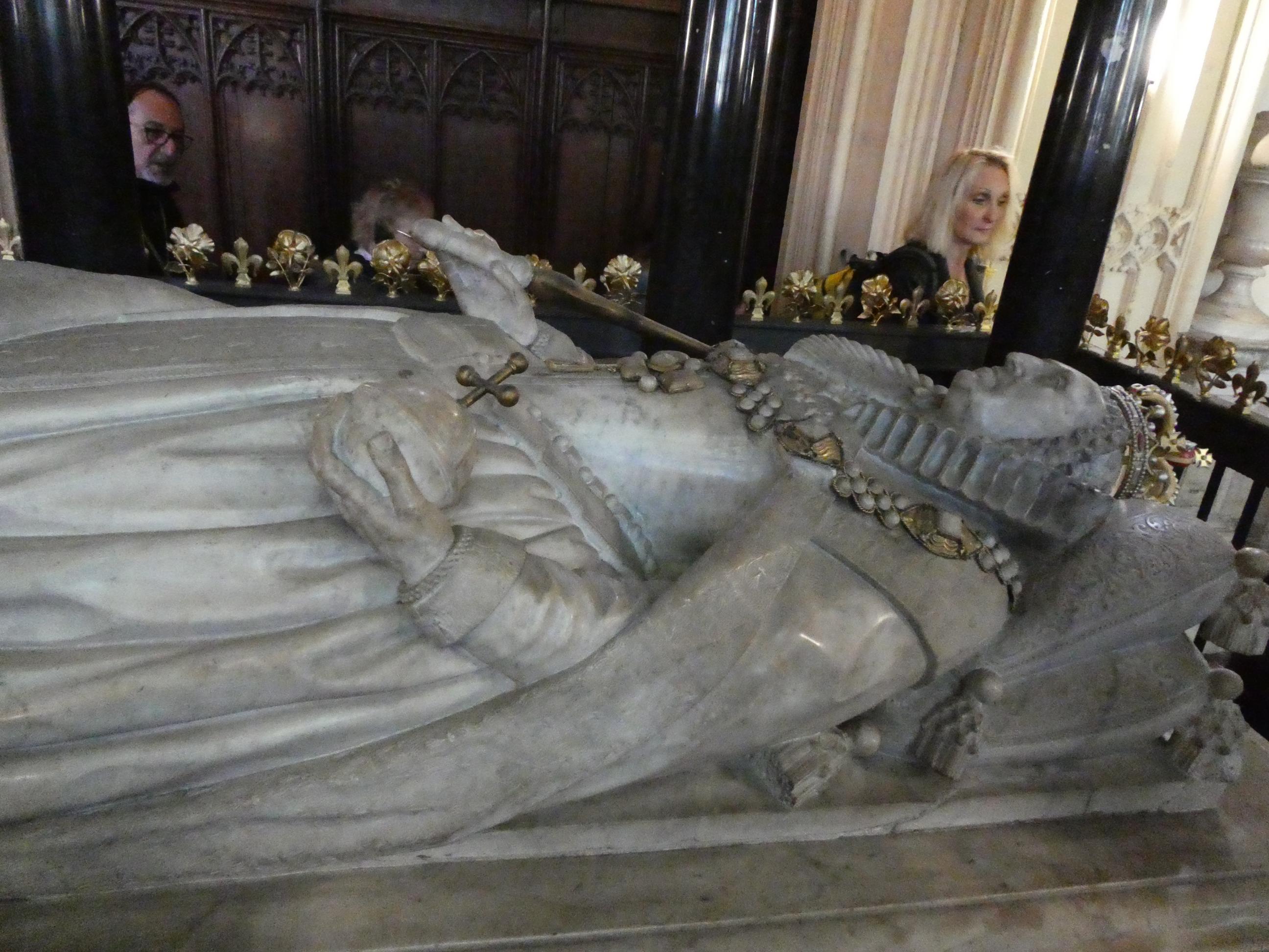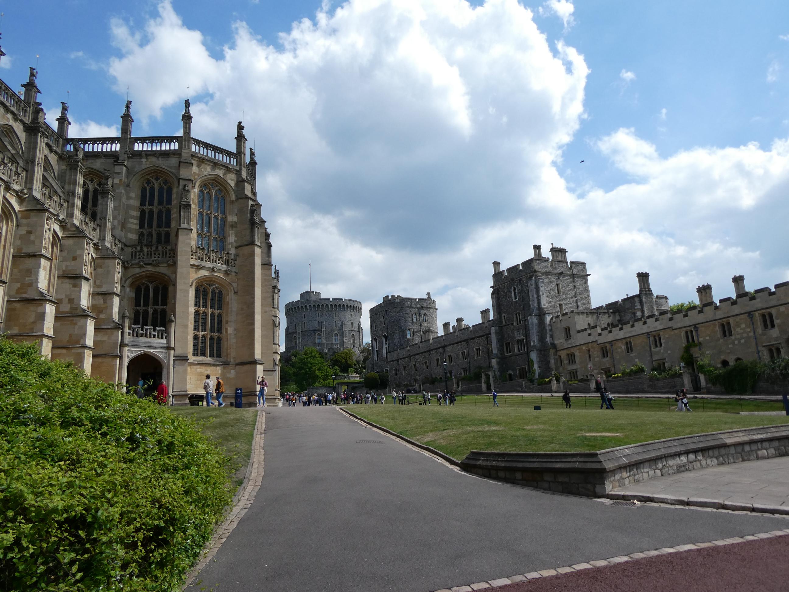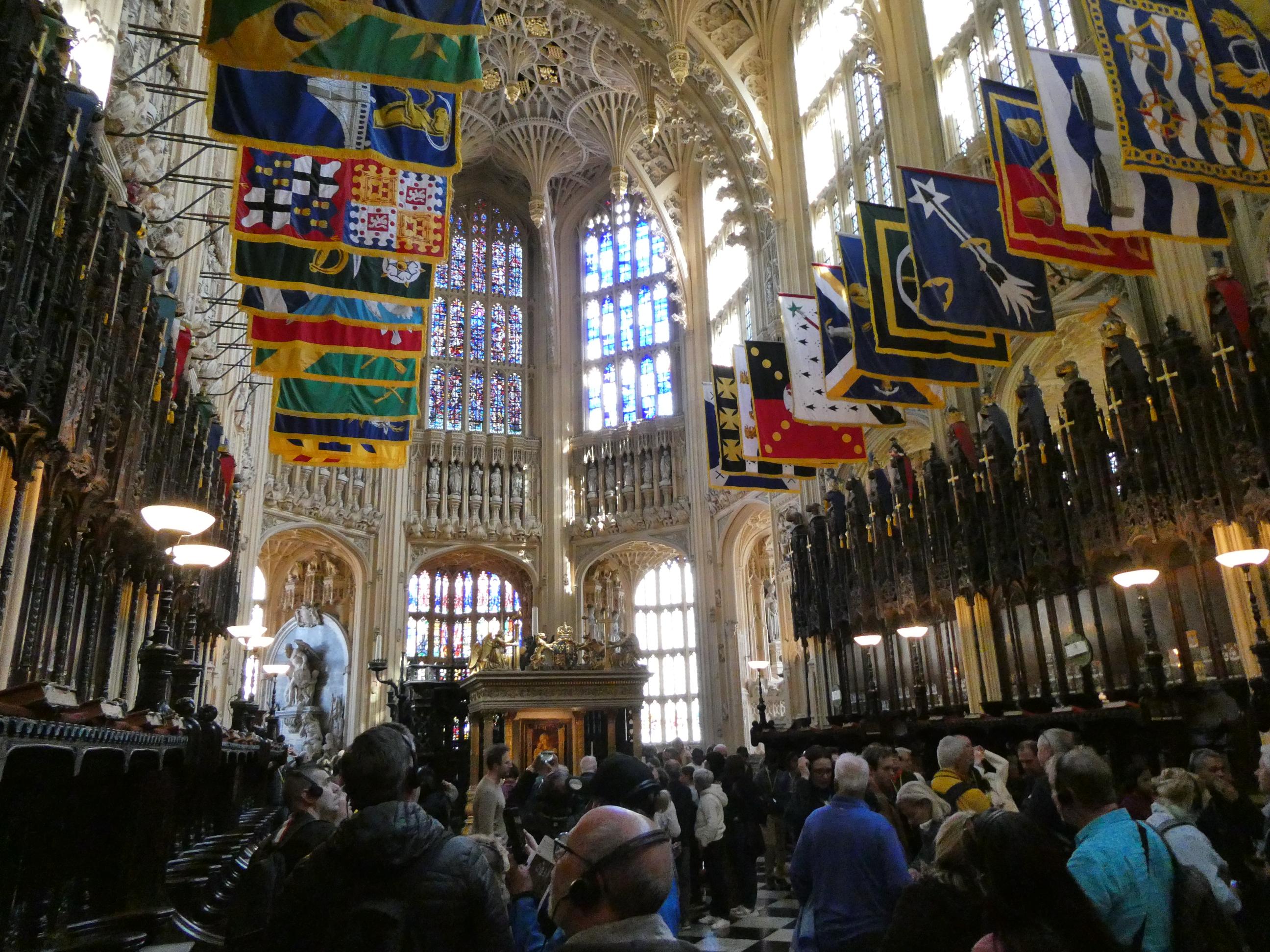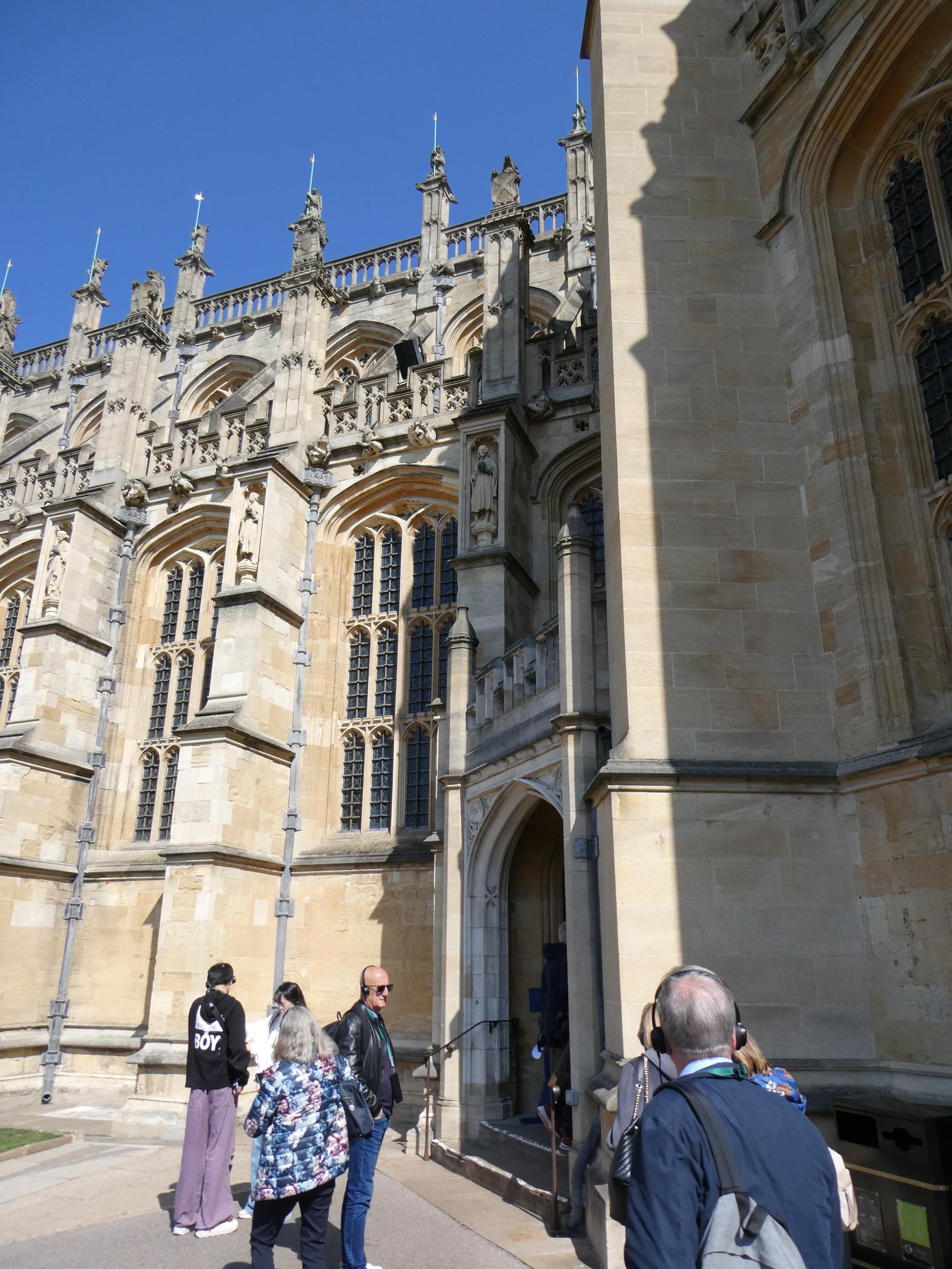 Despite being reminded of the Queen a number of times on my visit, it was still a surprise to come upon her final resting place in a small annex within St George’s Chapel. A large black marble slab was engraved with the names of Elizabeth and Philip. The names of her father, King George, and her mother Elizabeth were also engraved on the same slab. Another stone in this vault bore the name of the Queen’s sister, Princess Margaret. Essentially this was the burial vault of the House of Windsor. Just a few steps away we came upon the burial vault of King Henry VIII, Jane Seymour and Charles I. Jane was reputedly Henry’s favourite wife because she bore him a son and heir. Charles was the king who lost his head after being found guilty of high treason when he went to war against Parliament. He lost, and, for a short time, the monarchy came to an end. Eventually his son Charles II was restored to the throne, but from here on no monarch could put themselves above the will of the parliament. Walking through St George’s Chapel, where eleven English monarchs are buried, was like walking through the pages of a history book. It’s a beautiful chapel, befitting the importance of its place in the story of England. It’s disappointing that I was not able to take photos inside, but completely understandable that they don’t want tourists stopping for selfies in front of the Queen’s tomb or blocking the flow of foot traffic in tight spaces.