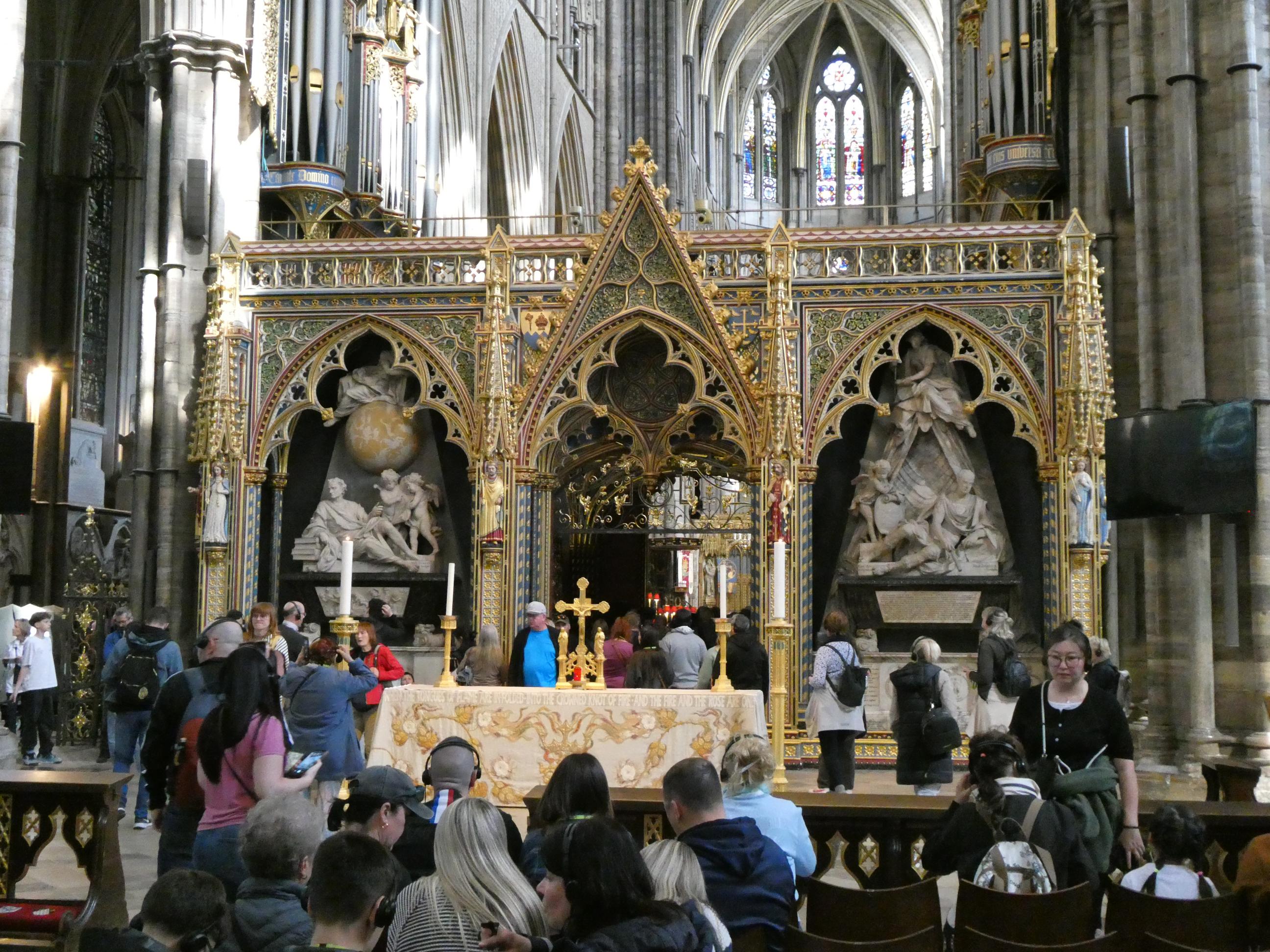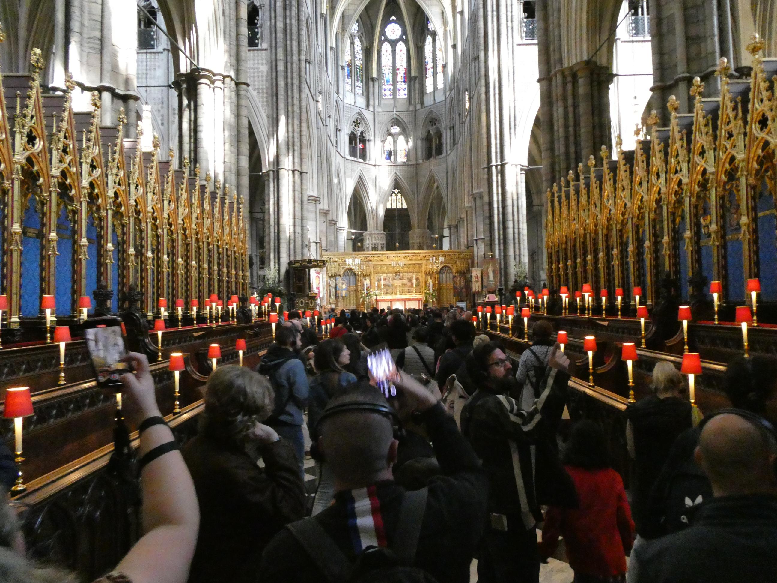 We eventually arrived at the Abbey at 3.20pm. The last guests were to be out by 4.30pm. Thankfully all of us had been here and seen it all before, but it still put us under some pressure to move through quickly. There’s so much to see in this wonderful place. It was my favourite single location of our entire 13-week, 15-country European tour in 2019. Just as we had done earlier at Windsor, we accepted the offer of a free audio guide and headphones to guide us through the abbey. On my last visit here we were forbidden to take photos, which was disappointing because the sights were so memorable. Today I was very pleased to know that restriction had been lifted, and I was able to get some shots which might hopefully give you an idea of what to expect if you are ever fortunate enough to visit this amazing place.