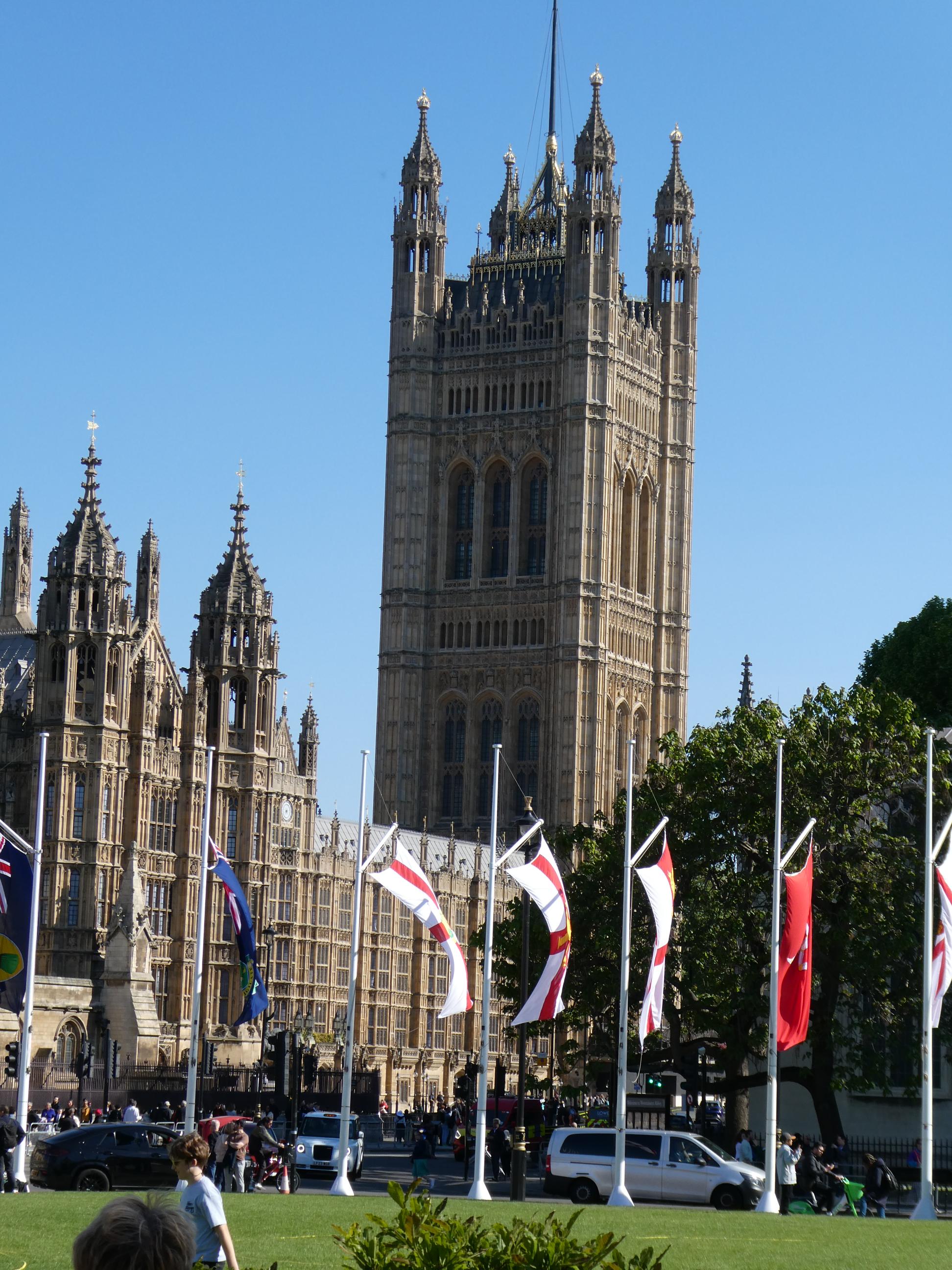 From Paddington, we took the Tube to Westminster. Upon leaving the Underground, we were greeted by the iconic sight of Big Ben, looking resplendent after its recent restoration. When Marg and I were last in London six years ago, it was covered in scaffolding. It looked so good against the perfect blue sky. London was putting on its best clothes for us today.