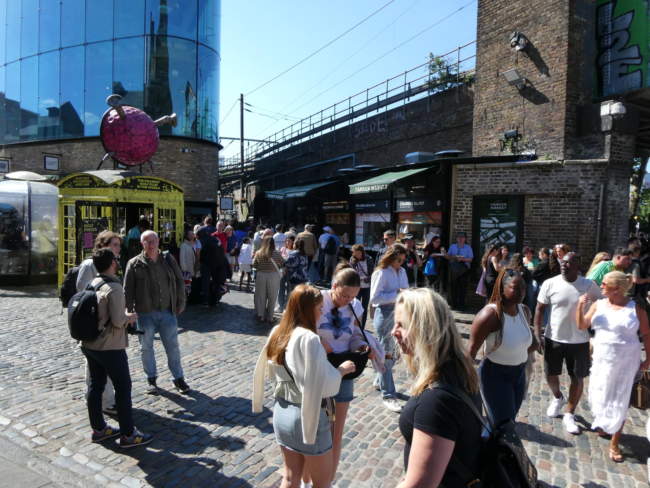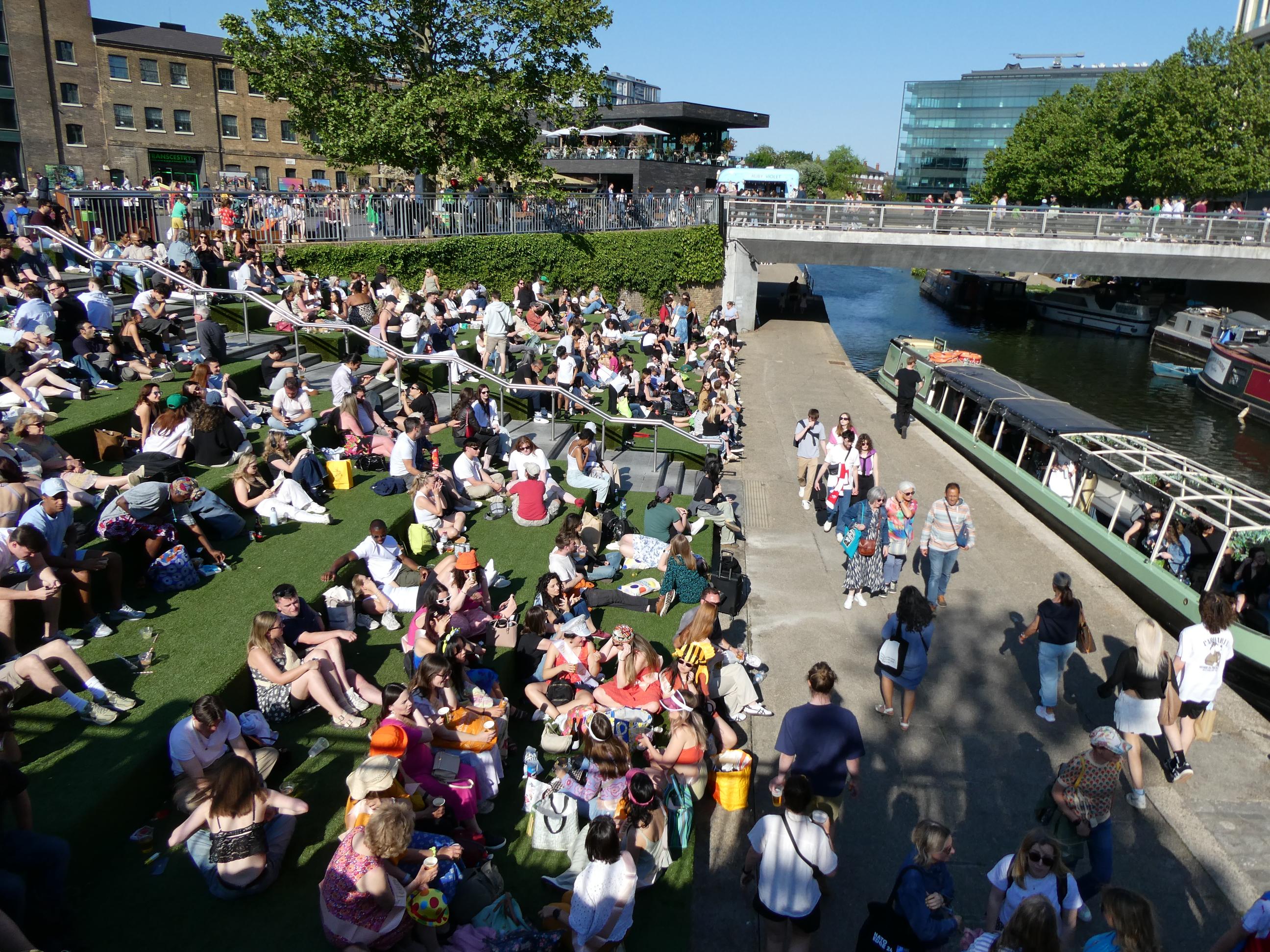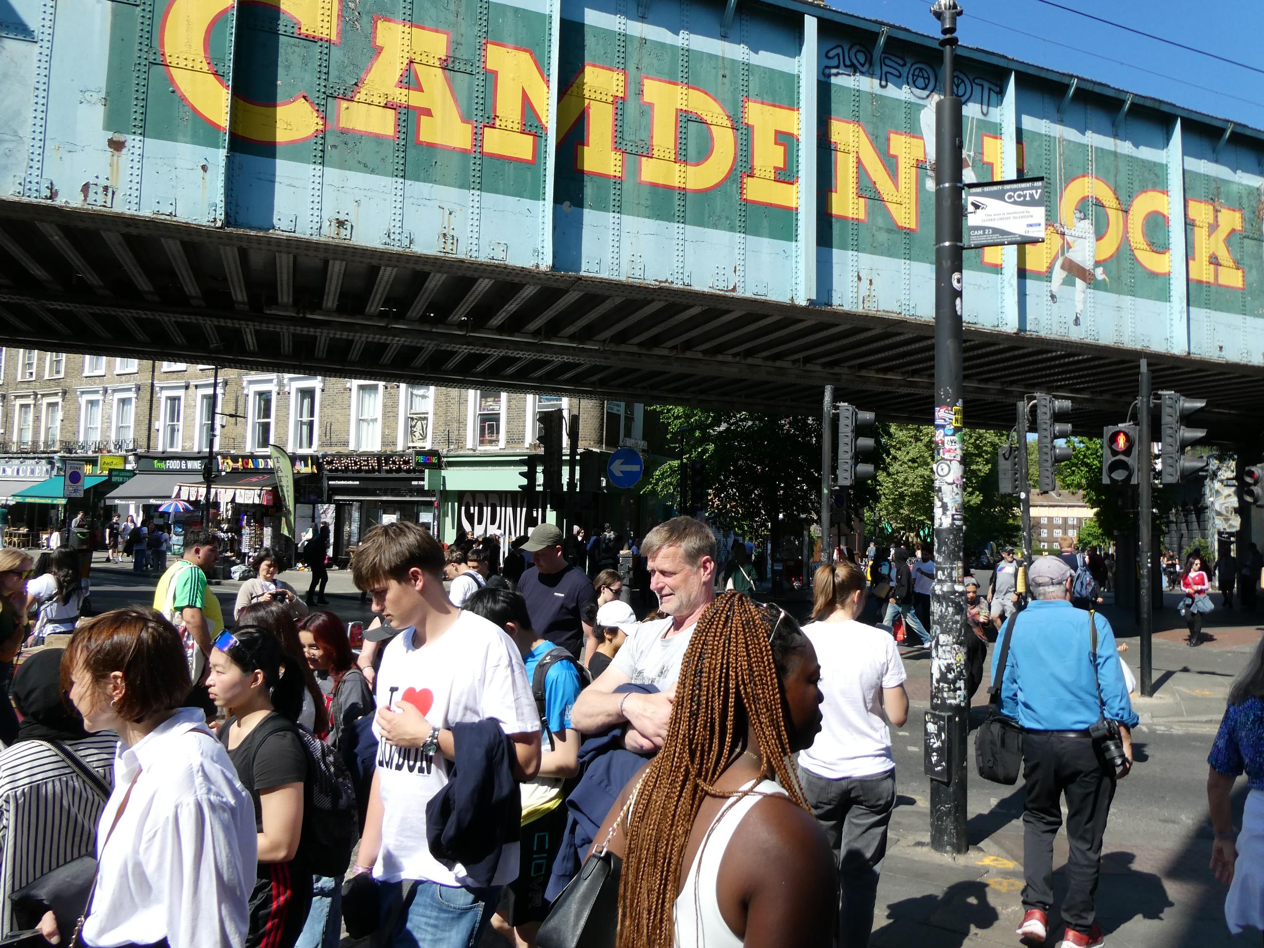 Camden was buzzing when we stopped there mid-afternoon for a drink. That didn’t surprise me on a day like this. It was a challenge to find an empty table, but worth the effort as the beer was good. We stopped to watch a barge pass through the lock. In the hi-tech world that we now inhabit, I take pleasure from some of the things that haven’t changed in centuries, such as the ingenious way of moving a boat through an area where the water level changes.