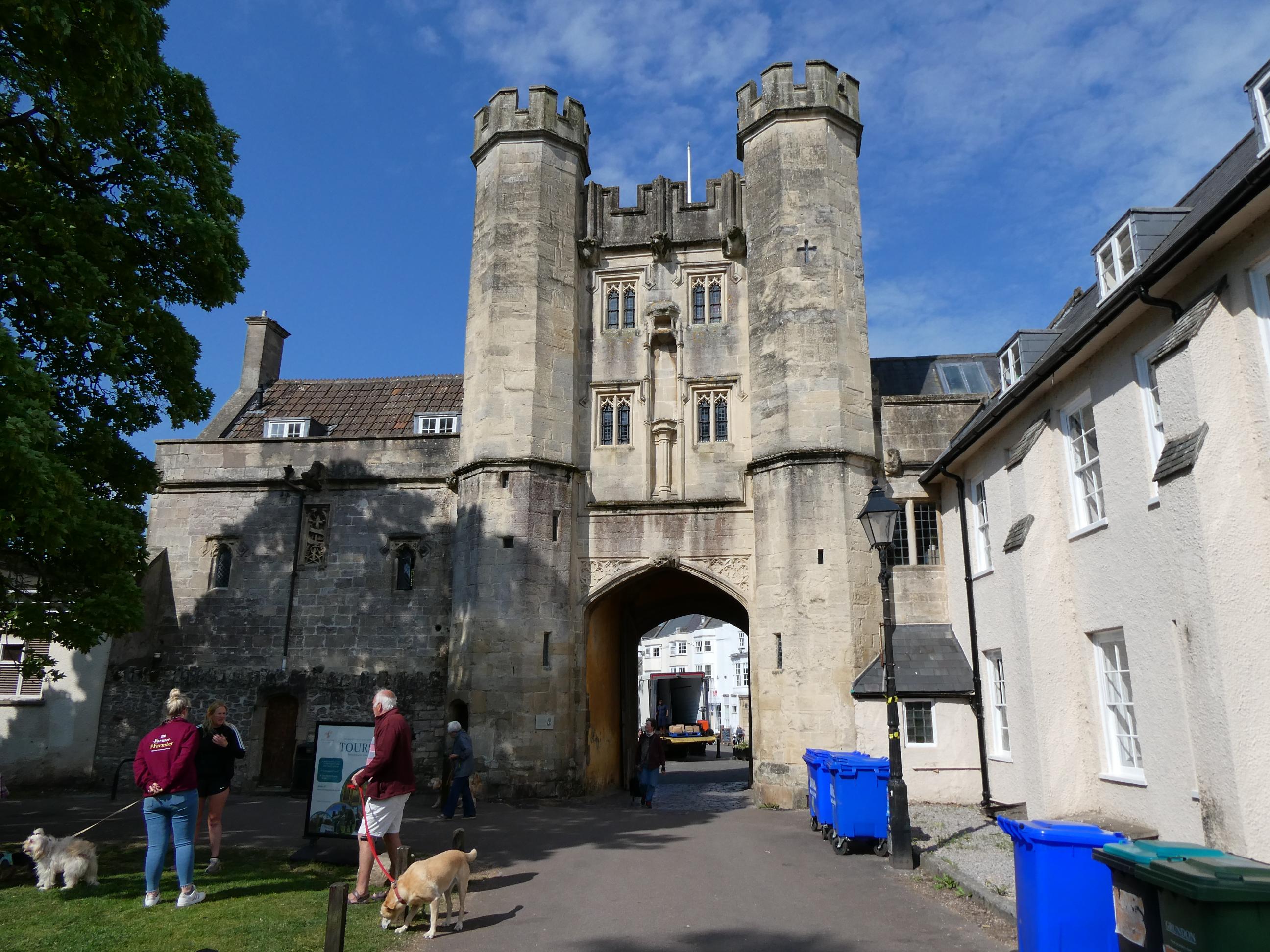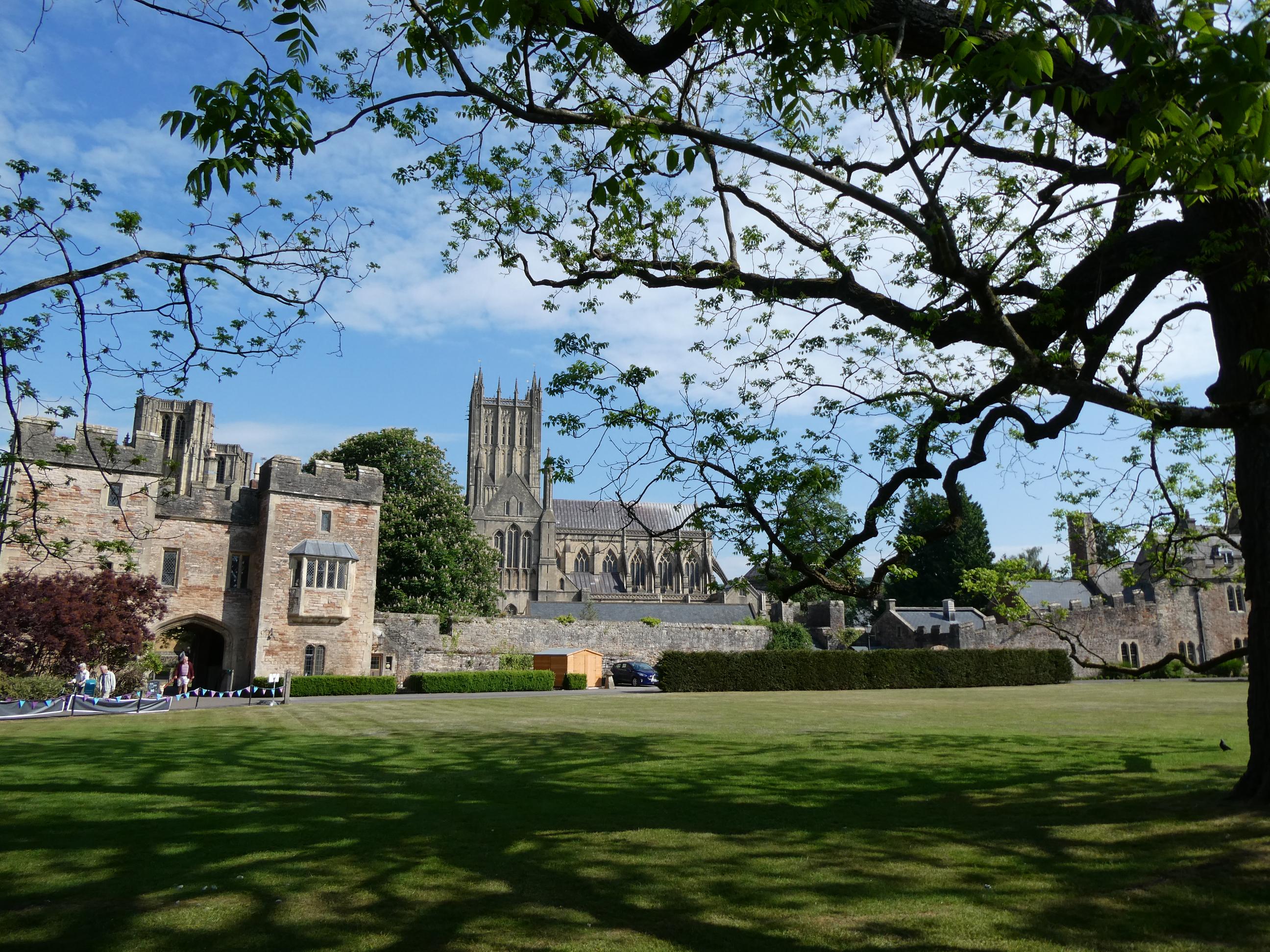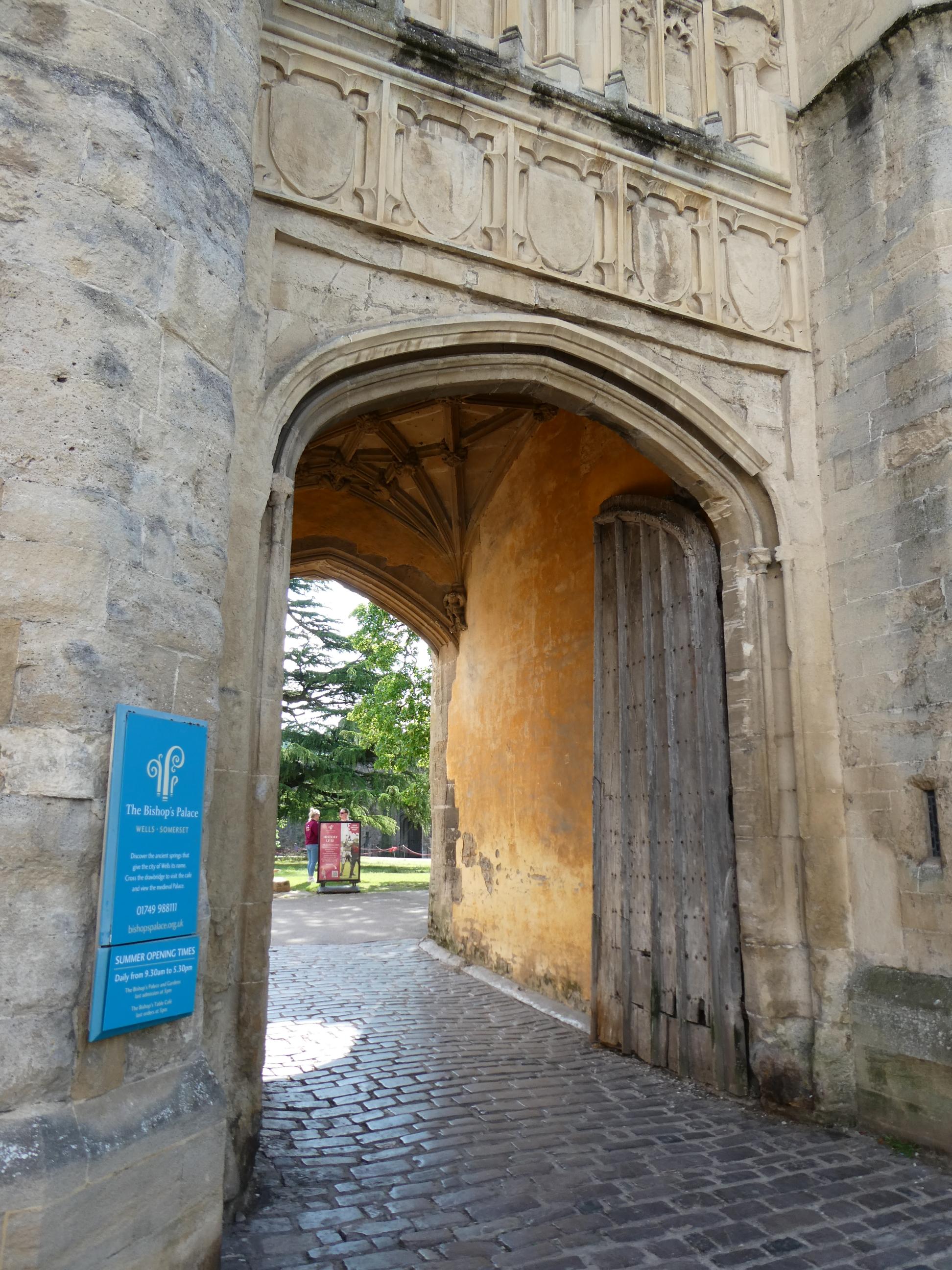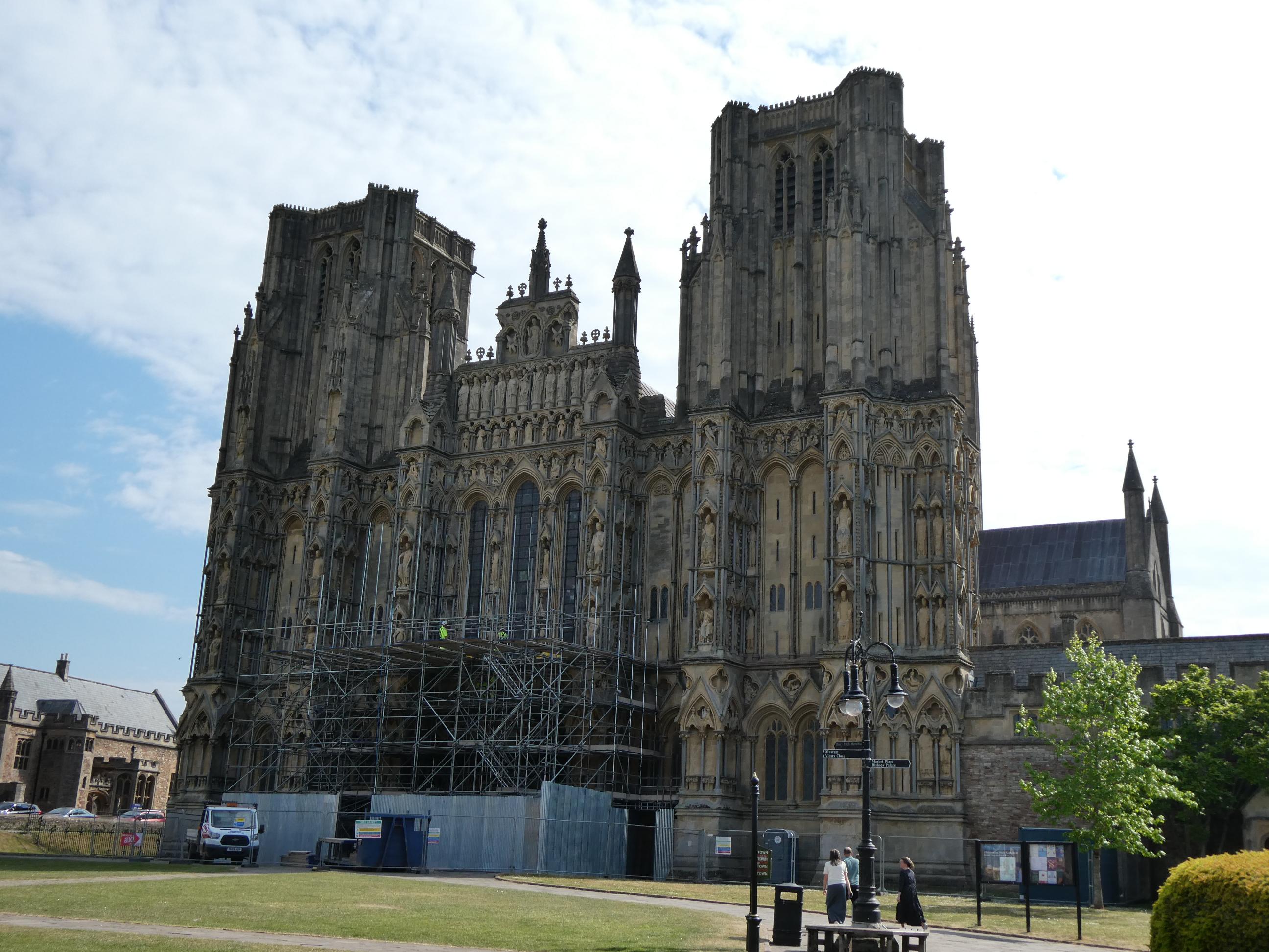Wells is a small city in Somerset. It’s famous for its cathedral, but also boasts that it is officially England’s smallest city. If we’d kept on going past Wells for another 23 miles, we would have come to a village called North Curry. It was here in 1795 that Elizabeth Celey, my five times great grandmother, stole some clothing and passed it on to her mother, Elizabeth Vicary. Betty Celey was convicted of theft of apparel and sentenced to be transported to New South Wales for a term of seven years, and her mother was convicted of receiving stolen goods and sentenced to be transported for a term of fourteen years. At about the same time that this was happening, the resident Bishops of Wells Cathedral were living quite luxuriously in the fabulous Bishop’s Palace and Garden adjacent to the cathedral. We only had a short time available to us to visit Wells, so we opted not to enter the cathedral. It was still very impressive when viewed from the outside, even though one wall was undergoing restoration that obscured much of it from view.