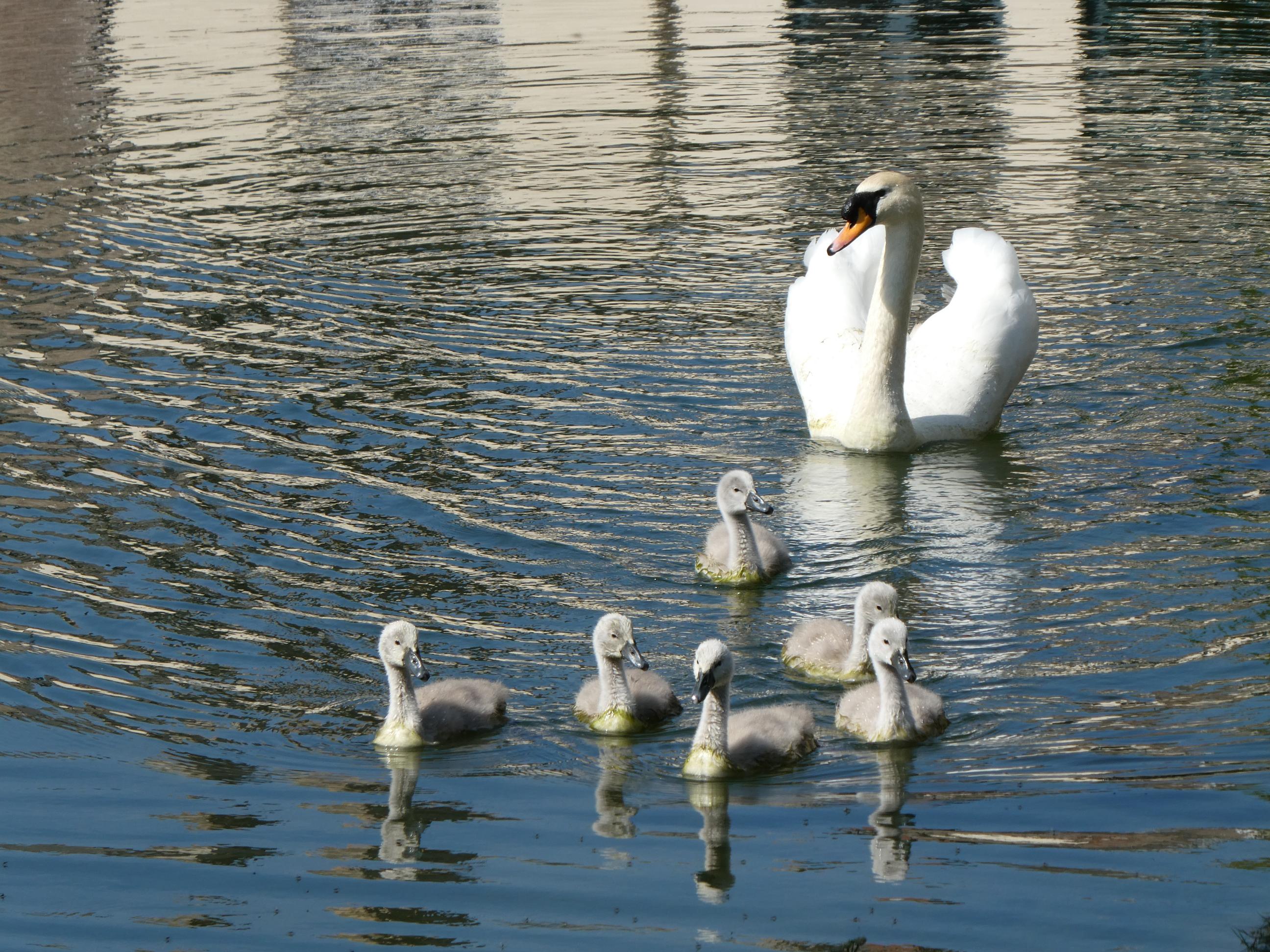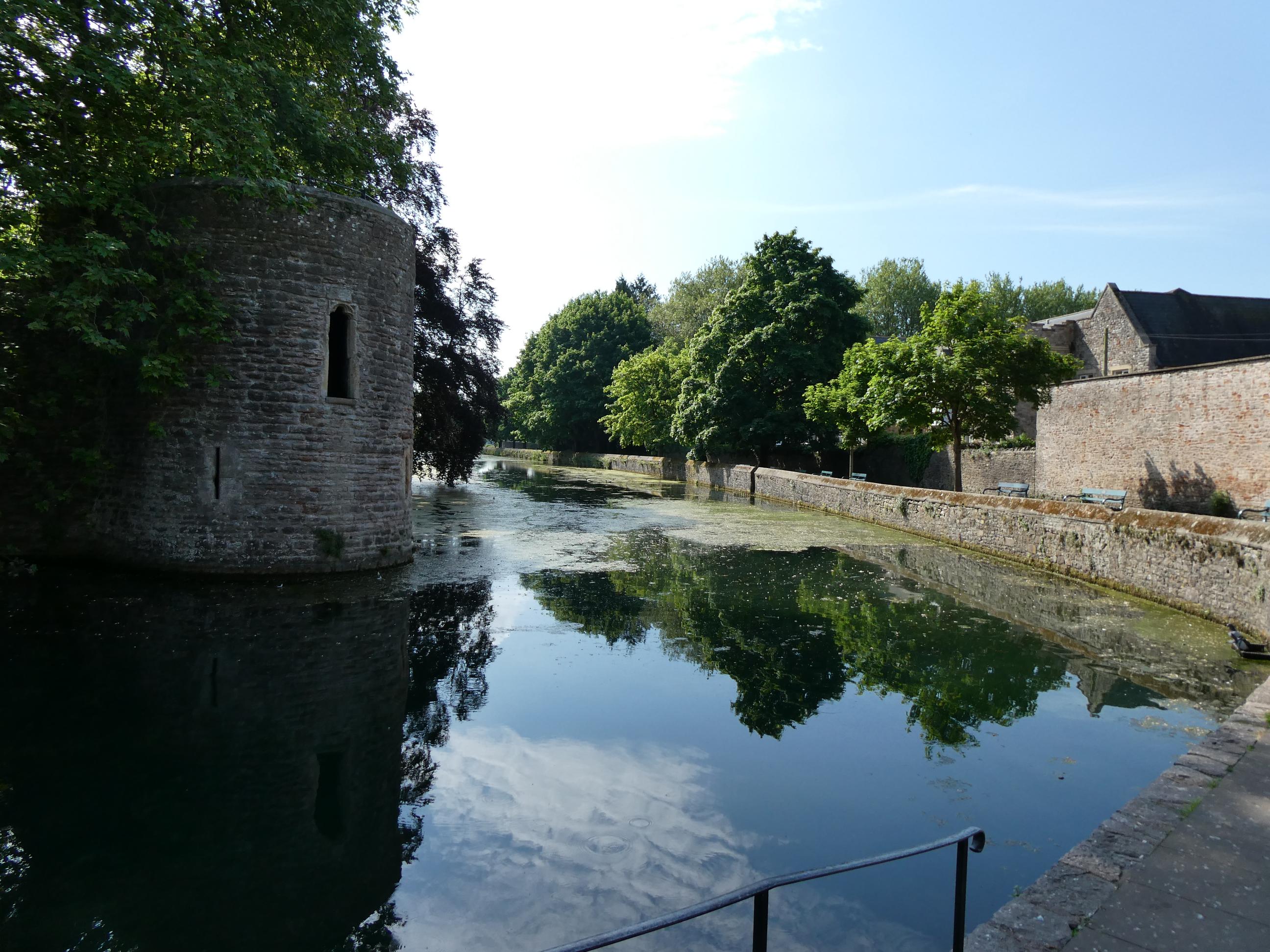 We met people who told us the story of the swans that swim in the moat. Grace and her partner Gabriel are the parents of six small cygnets. When we arrived, Grace swam over to where we were standing, keeping her young ones close. Gabriel sat silently between two adolescent swans on the lawn, eyeing them off. If either of those swans tried to get into the water and swim over to be fed, Gabriel would chase him away. Locals expect the two adolescents to soon fly off elsewhere, leaving Grace and Gabriel to raise their family as a unit in the Palace moat. One time long ago, a bishop’s daughter trained the swans to ring a bell when they wanted to be fed. The tradition was passed on, and today the adult swans know how to ring the bell and receive food as a reward. How clever.