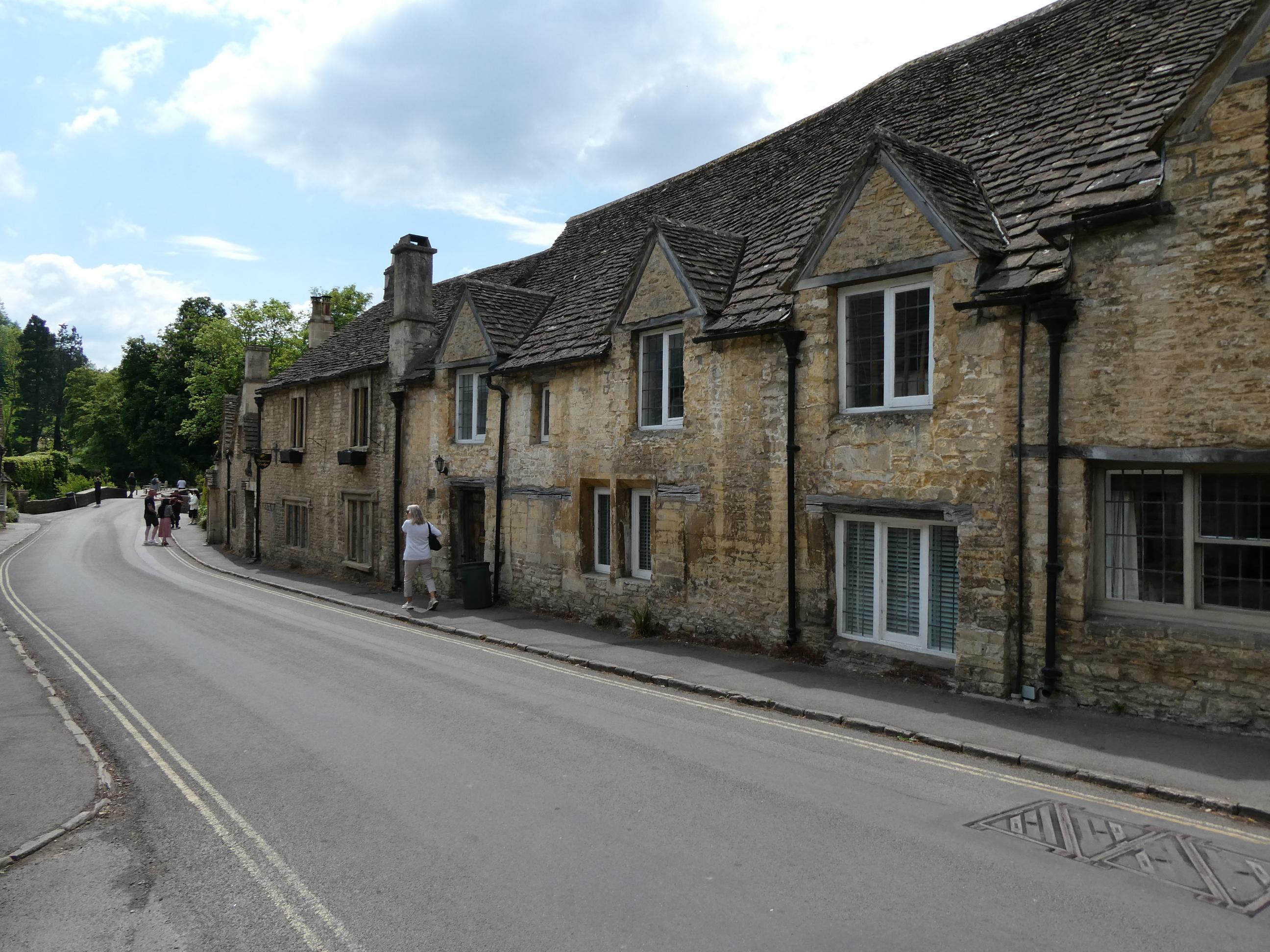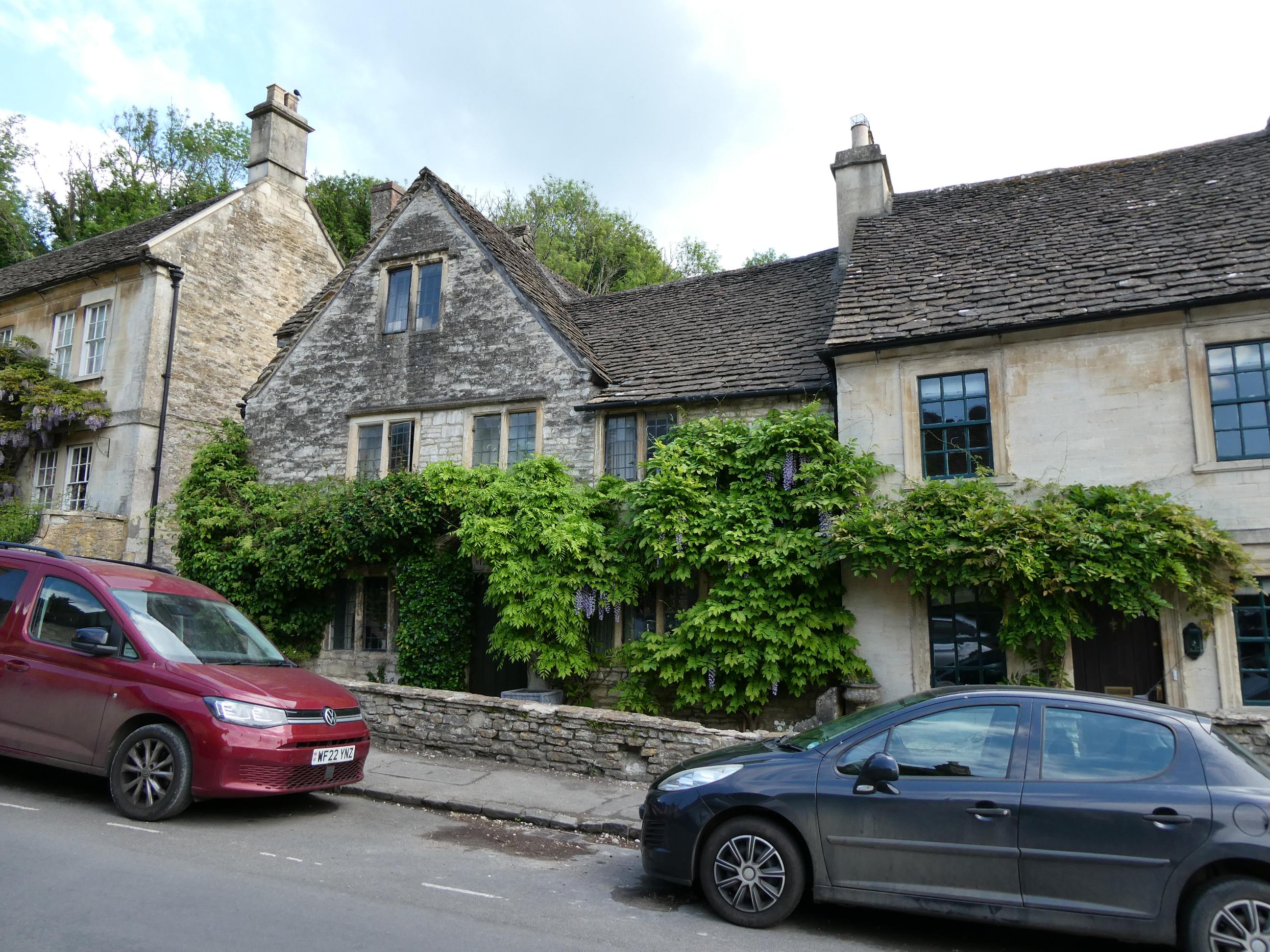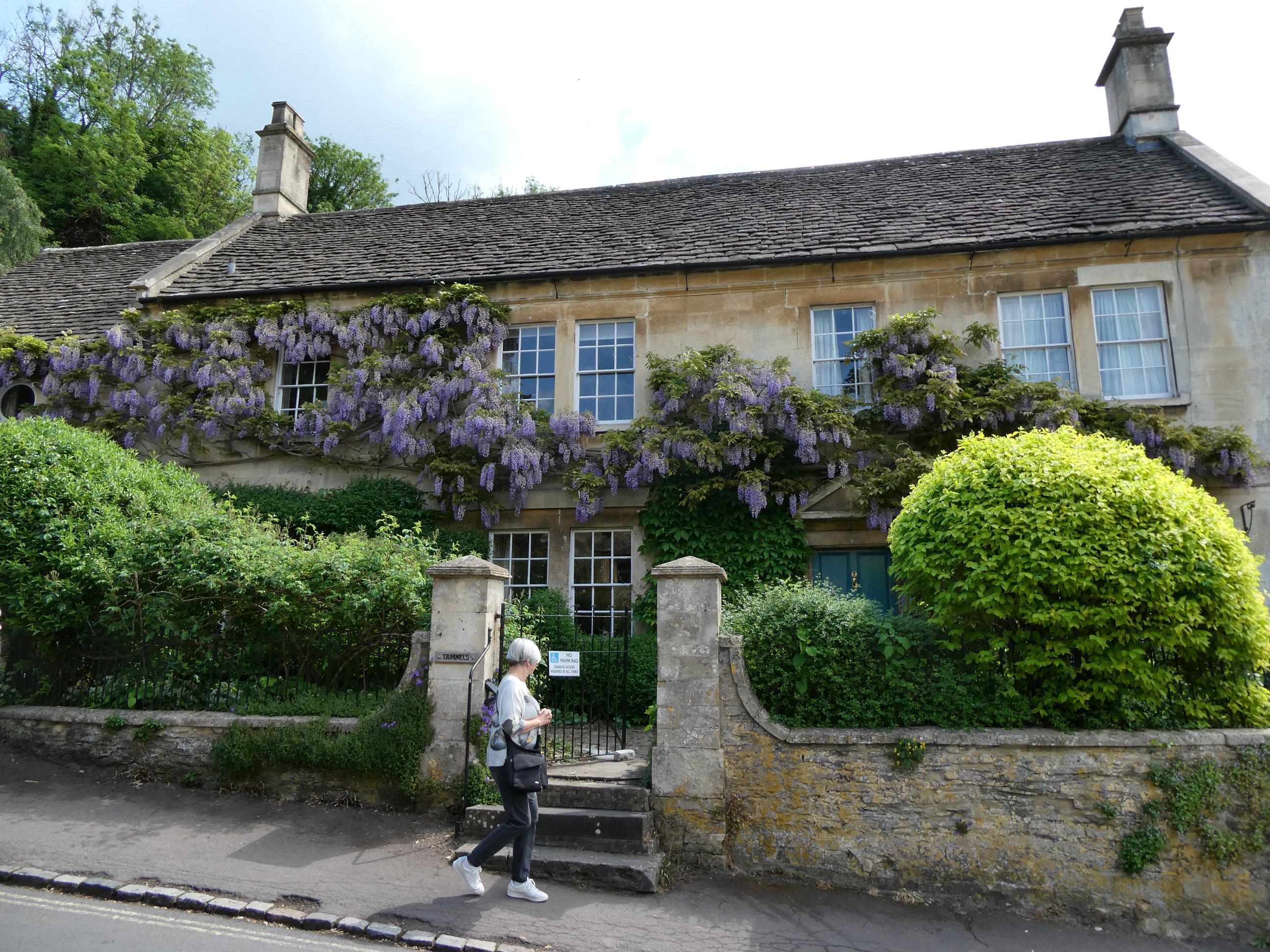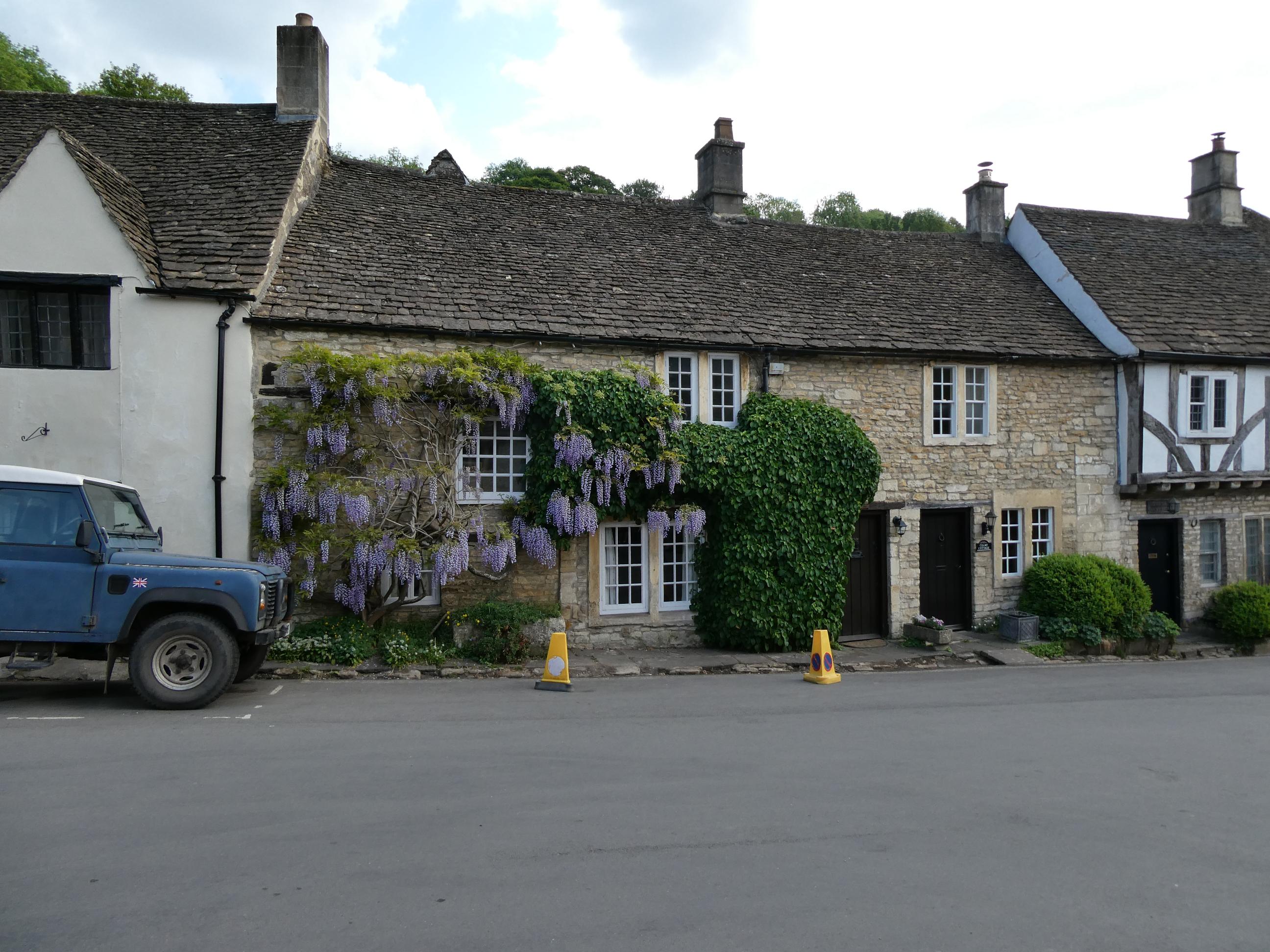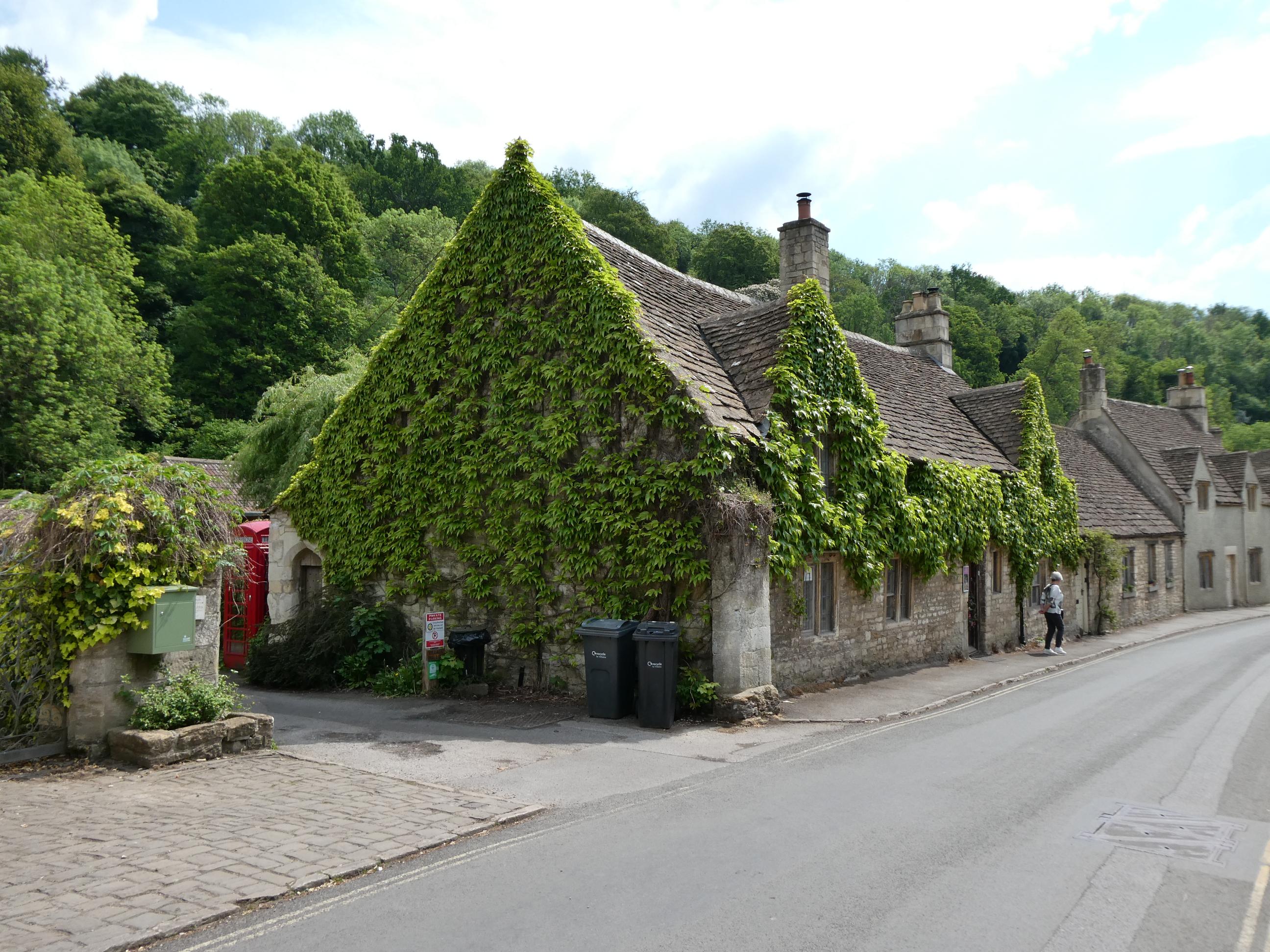 From Bristol we made our way to Castle Combe. The name is a misnomer, as Castle Combe is actually a small rural village, rather than a castle (that was demolished centuries ago). We drove down a very narrow lane to reach the village, then discovered there was nowhere to park and very little room to turn the hire car around. Rod did a good job of doing so, and eventually we found a parking spot on the side of the road we came in on. We took our time strolling down through the village. It is absolutely charming in every sense of the word. A google search reveals that some people consider it the most beautiful village in all of England. A number of movies and TV series have been filmed here, which is no surprise as the current configuration of the village really represents a little slice of time from a bygone era. Castle Combe lies within a corner of the Cotswolds (Cotwolds Area of Outstanding Natural Beauty). The village basically features only stone cottages, all of which are centuries old. The most recent new house in Castle Combe was built in the 1600s. Many houses feature either a colourful front garden or, in some cases, a climbing ivy or wisteria or similar. We found a table in the beer garden out the back of the White Hart Inn for lunch. If it hadn’t been for a conversation with the hotel manager in Bath yesterday, we would never have heard of Castle Combe, so it was a lucky accident that I was able to stroll down its main street (simply named The Street) the following day. I’m so glad we came here.