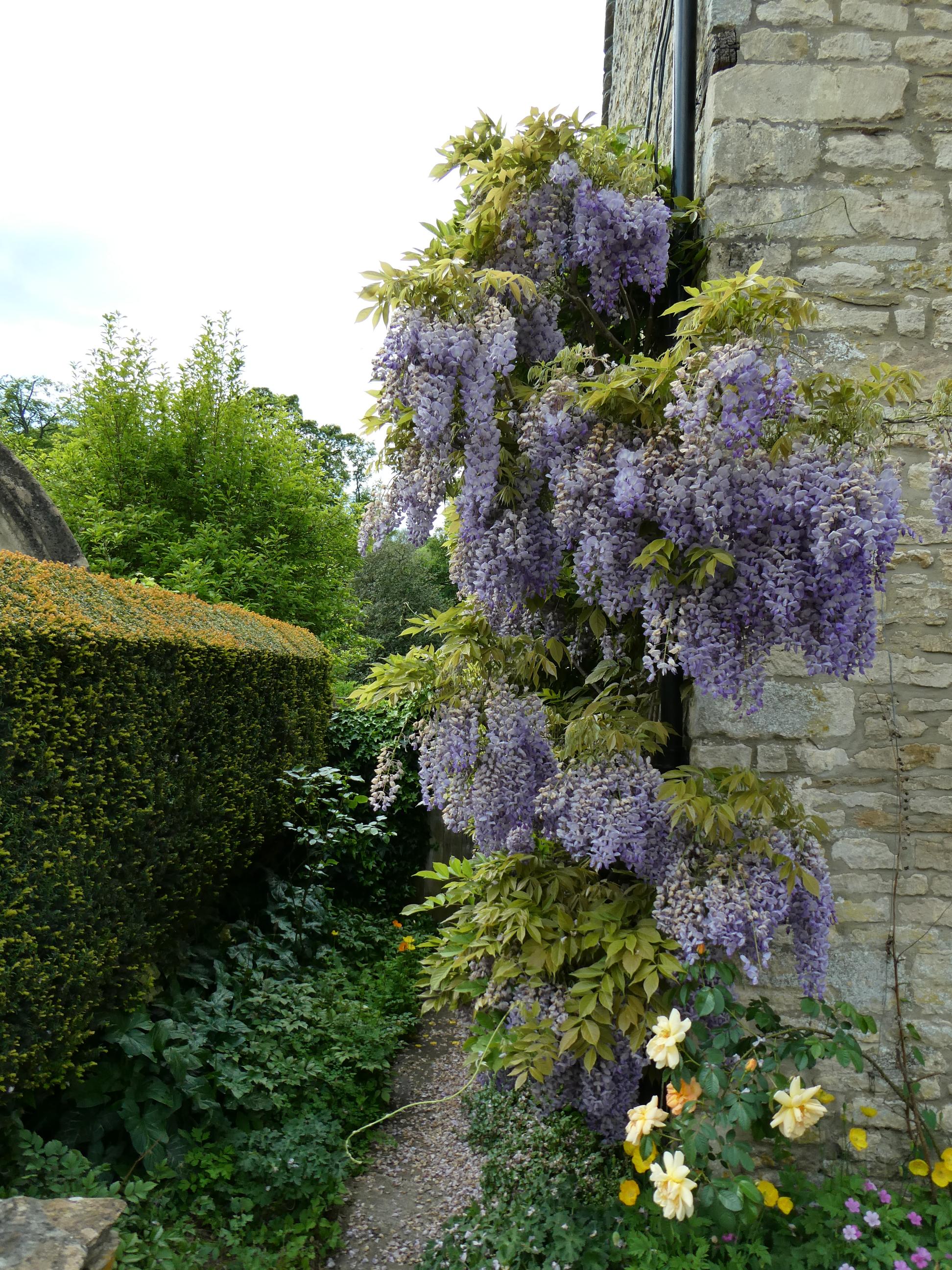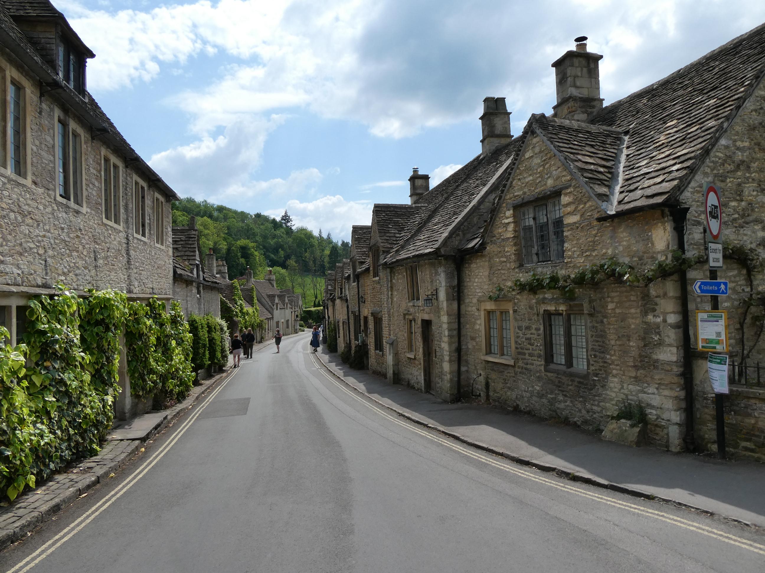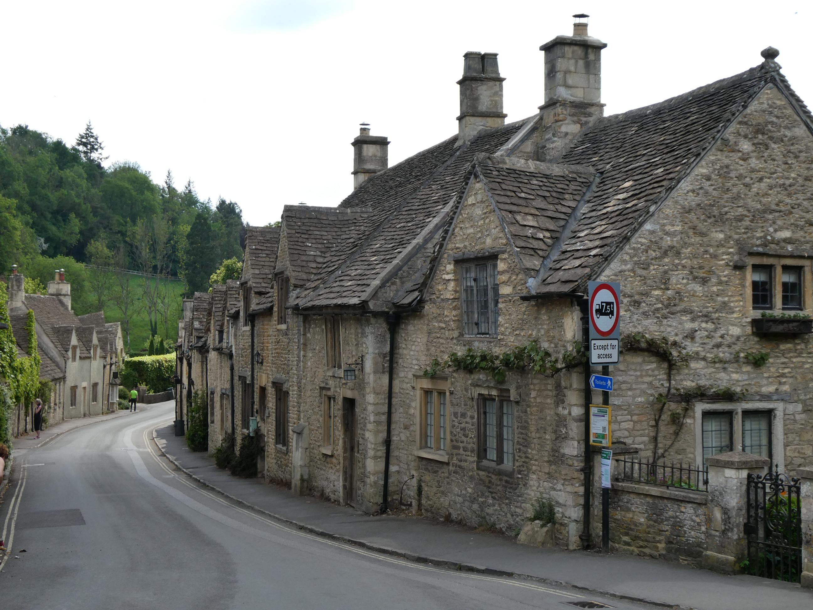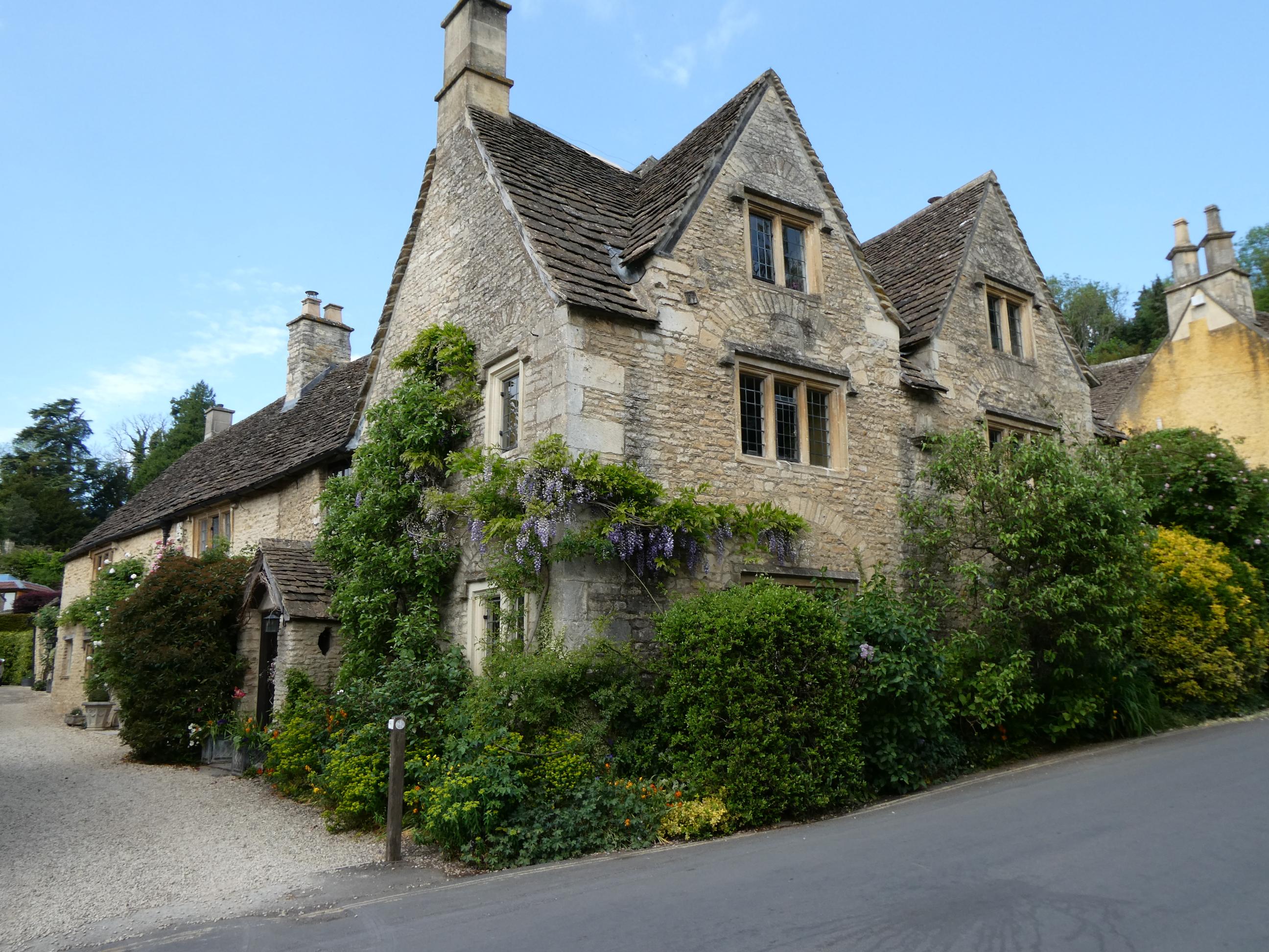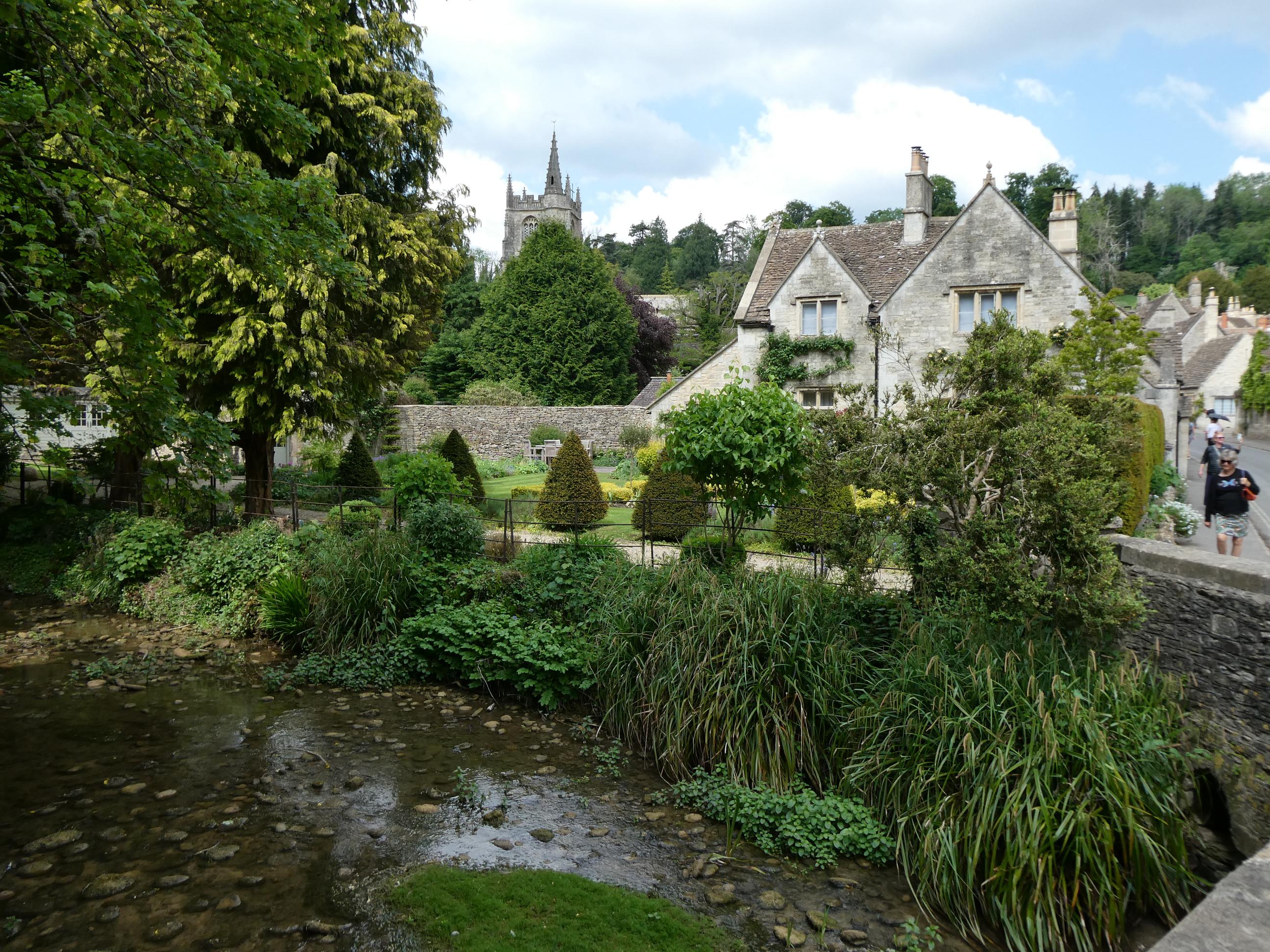From Bristol we made our way to Castle Combe. The name is a misnomer, as Castle Combe is actually a small rural village, rather than a castle (that was demolished centuries ago). We drove down a very narrow lane to reach the village, then discovered there was nowhere to park and very little room to turn the hire car around. Rod did a good job of doing so, and eventually we found a parking spot on the side of the road we came in on. We took our time strolling down through the village. It is absolutely charming in every sense of the word. A google search reveals that some people consider it the most beautiful village in all of England. A number of movies and TV series have been filmed here, which is no surprise as the current configuration of the village really represents a little slice of time from a bygone era. Castle Combe lies within a corner of the Cotswolds (Cotwolds Area of Outstanding Natural Beauty). The village basically features only stone cottages, all of which are centuries old. The most recent new house in Castle Combe was built in the 1600s. Many houses feature either a colourful front garden or, in some cases, a climbing ivy or wisteria or similar. We found a table in the beer garden out the back of the White Hart Inn for lunch. If it hadn’t been for a conversation with the hotel manager in Bath yesterday, we would never have heard of Castle Combe, so it was a lucky accident that I was able to stroll down its main street (simply named The Street) the following day. I’m so glad we came here.