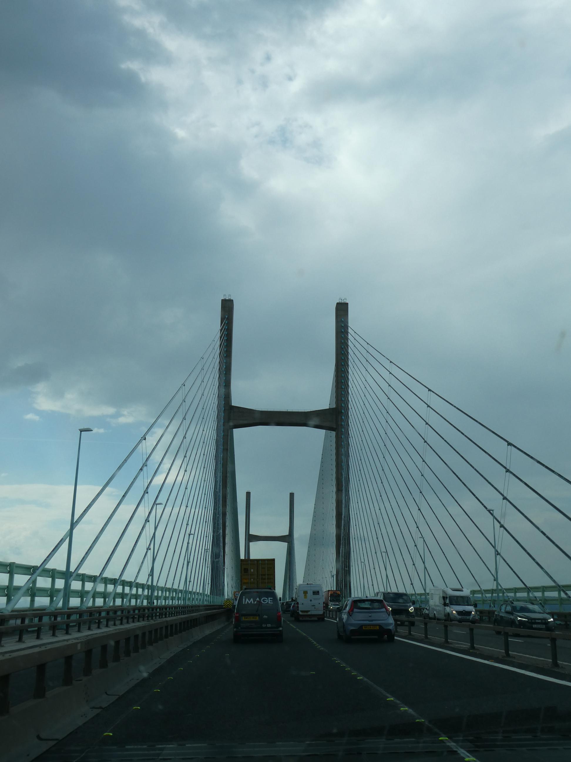 We drove on to Stroud, where we intended to stop for a coffee. Rod drove round the town in circles trying to find a parking space, but parking didn’t seem to be allowed anywhere. Eventually we found a place in the railway station carpark. But we thought the better of stopping any longer, and decided to forget about the coffee break and head straight to Cardiff, which would be our final stop for the night. Stroud, incidentally, was the home town of my aforementioned great great grandfather Jeremiah Cother and generations of Cothers before him. At least, I can proudly say I’ve been there – albeit only very briefly. We crossed the very long Prince of Wales Bridge over the Severn River into Wales.