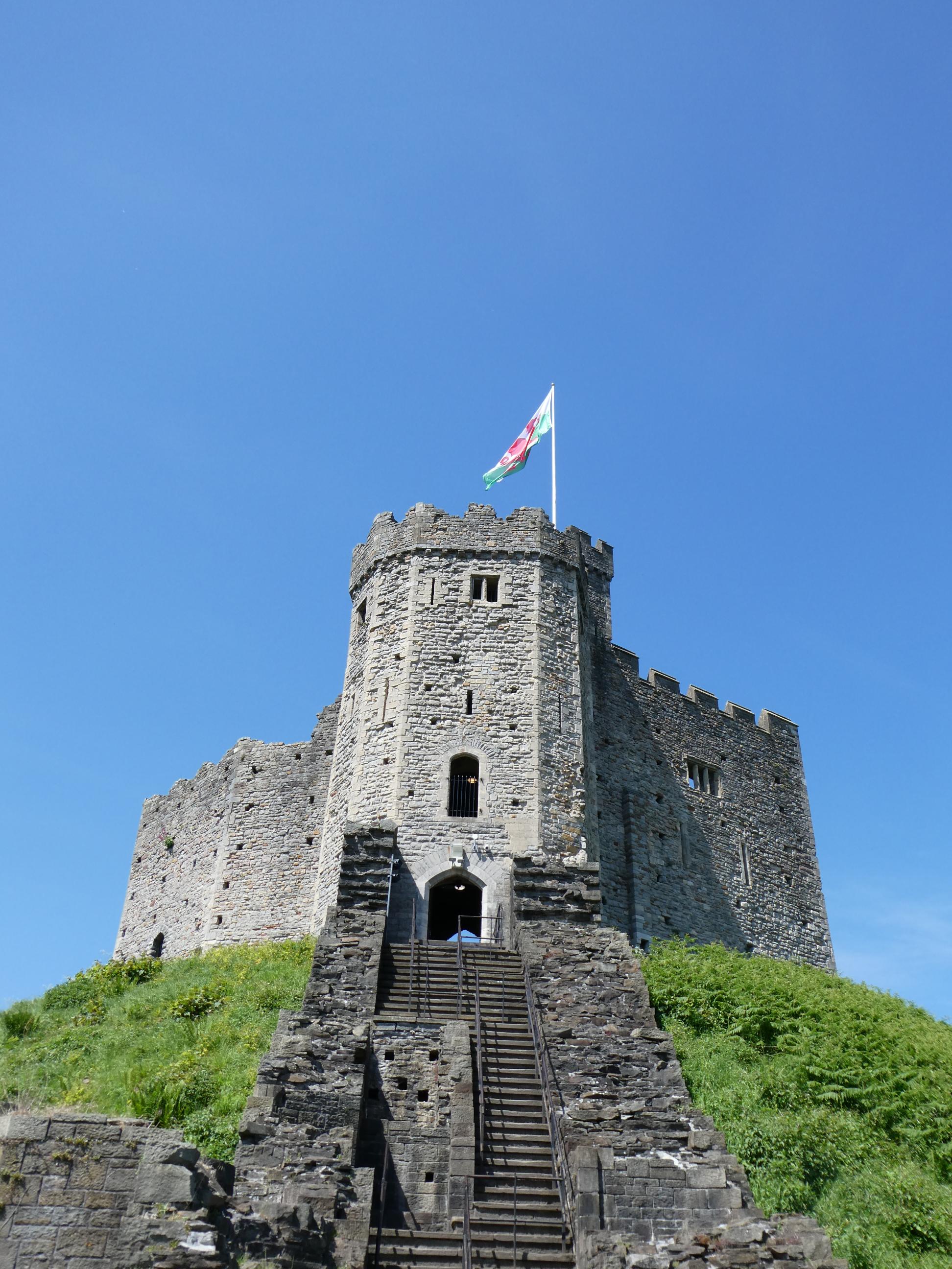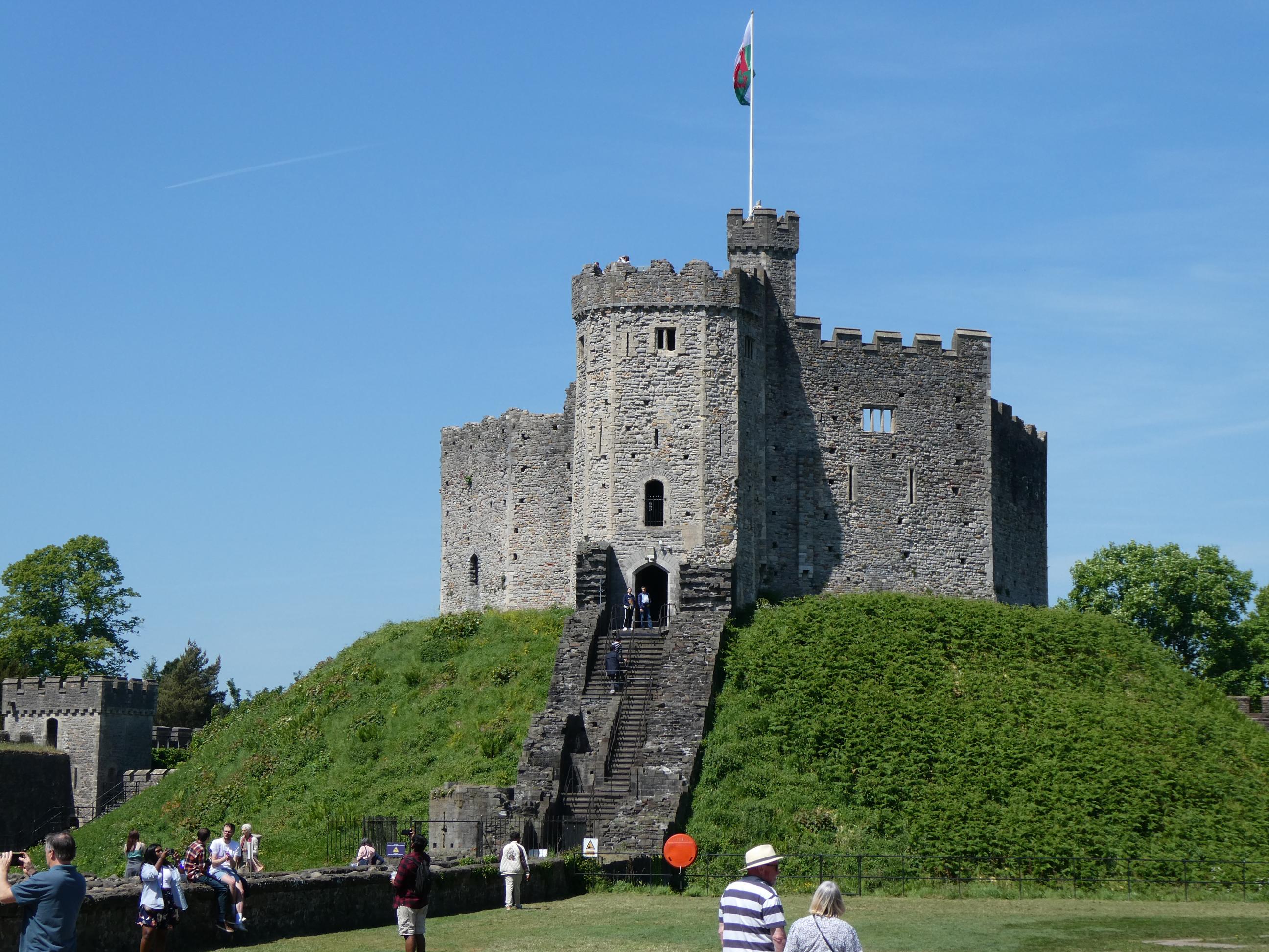 We returned to our rooms to pack away all the freshly laundered clothes. Marg took advantage of our more relaxed touring schedule to catch up on some rest, while Rod, Cornelia, Ursula and I walked through Sophia Gardens, across the River Taff and through Bute Park into the heart of the city. We wandered down the busy High Street until we turned into Royal Arcade and found a really nice coffee roastery, Uncommon Ground Coffee, where we stopped for lunch. It’s Marg’s custom, when travelling and time permits, to find a wool store and often buy some wool. Sometimes she’ll crochet with in on our travels and other times she’ll bring it home and save it until she finds a suitable pattern. Rod saw there was a wool store in the Central Market between our lunch spot and our next spot, the castle, so we called in on our way to check it out. I figured it wouldn’t hurt to stand in for Marg on this occasion. Though I didn’t really know what I was doing, I asked the lady behind the counter for something Marg could crochet a cowl with that was soft, local and only required one ball. She showed me a finished sample, and I thought that would be okay, so I bought a ball of the yarn and brought it back to the accommodation. I was both pleased and relieved when Marg gave it the tick of approval. I’m interested to see what she can do with it.