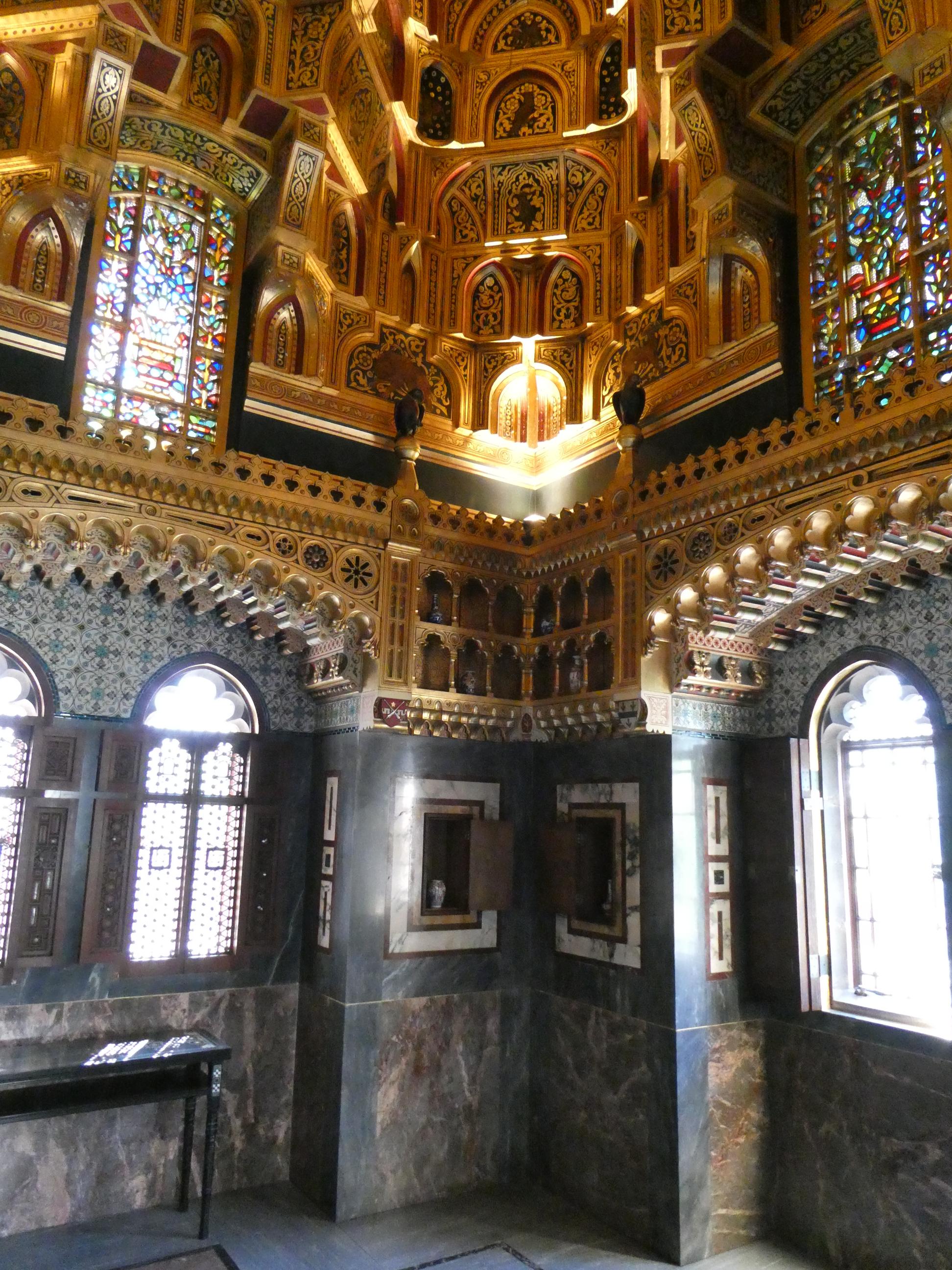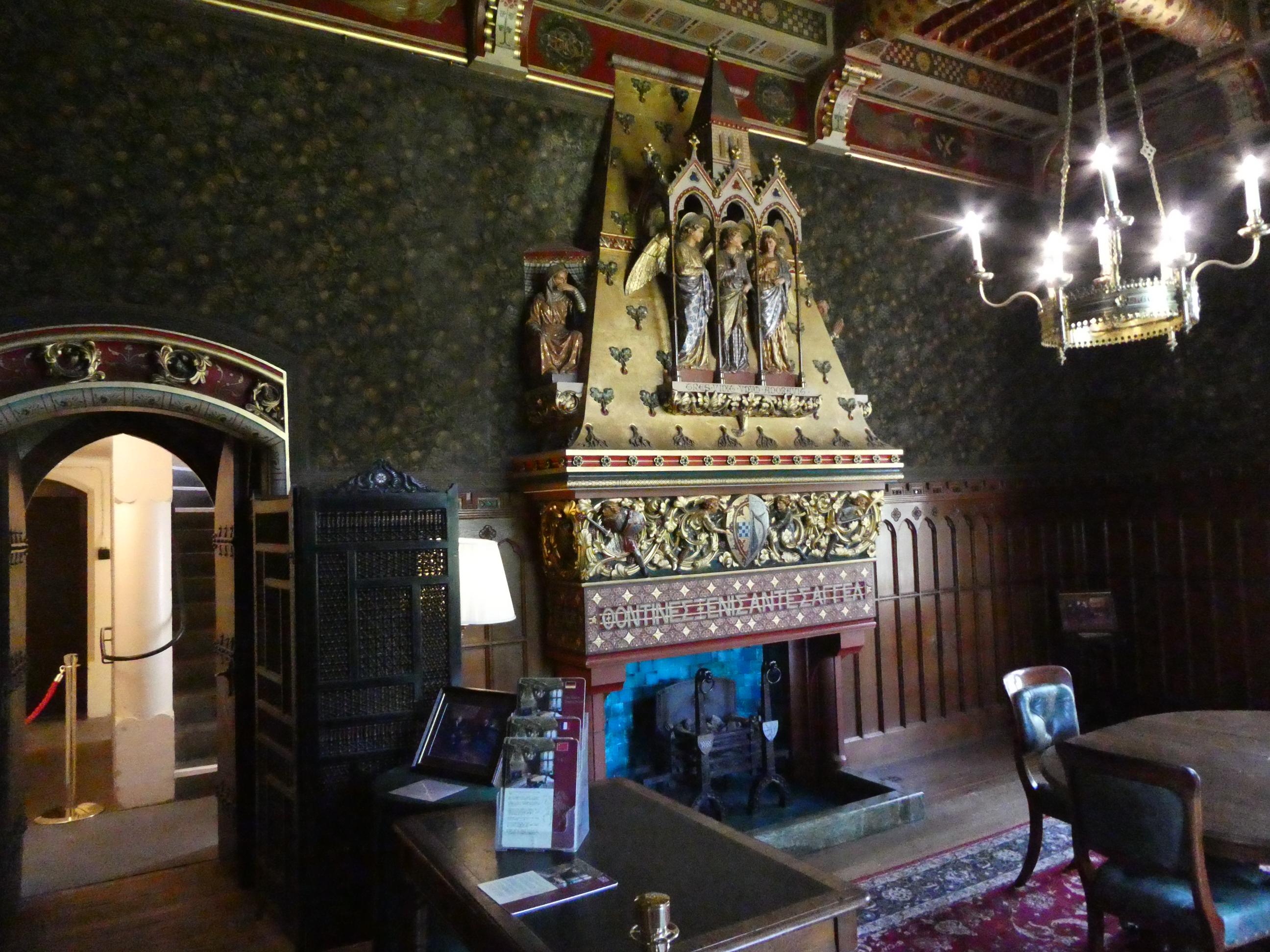 “The resulting modifications to the old castle brought about one of the most extravagant castles in the British Isles – in fact, probably in all of Europe. Room after room became a kaleidoscope of colours and shapes, with painted and tiled walls illustrating biblical scenes, fairy tales and characters from literature. The texts on the walls represented the many different languages the Marquess spoke. He had one of the world’s first flushing water closets. He had a bedroom with a mirrored ceiling. He even had a room dedicated to Geoffrey Chaucer and the Canterbury Tales. On the floor of one room the tiles were laid out in the formation of a maze, where the Marquess could wander around, lost in meditation. He was an opium addict, and no doubt some of his design ideas must have come to him while he was in an opium-induced state of consciousness.”