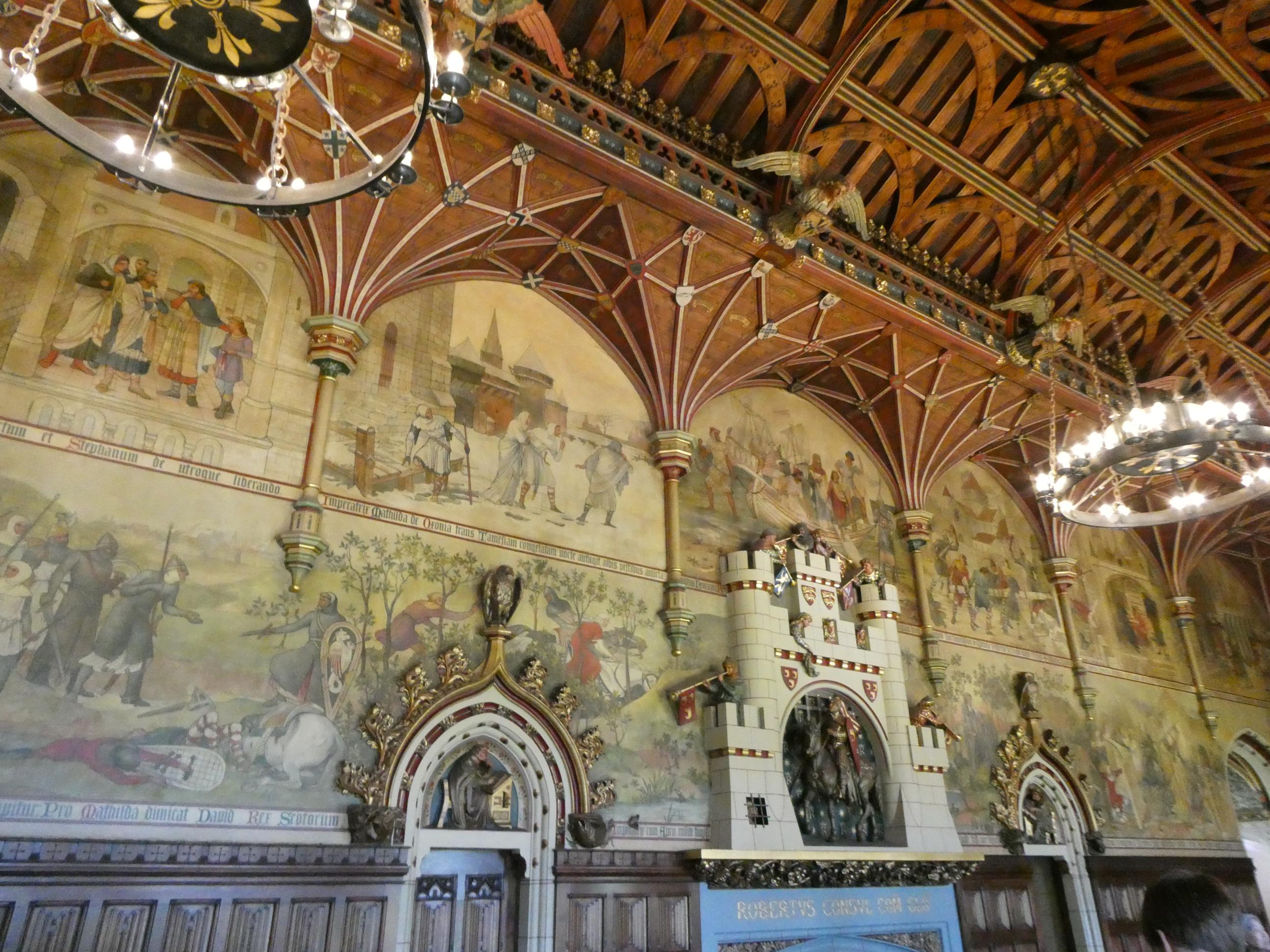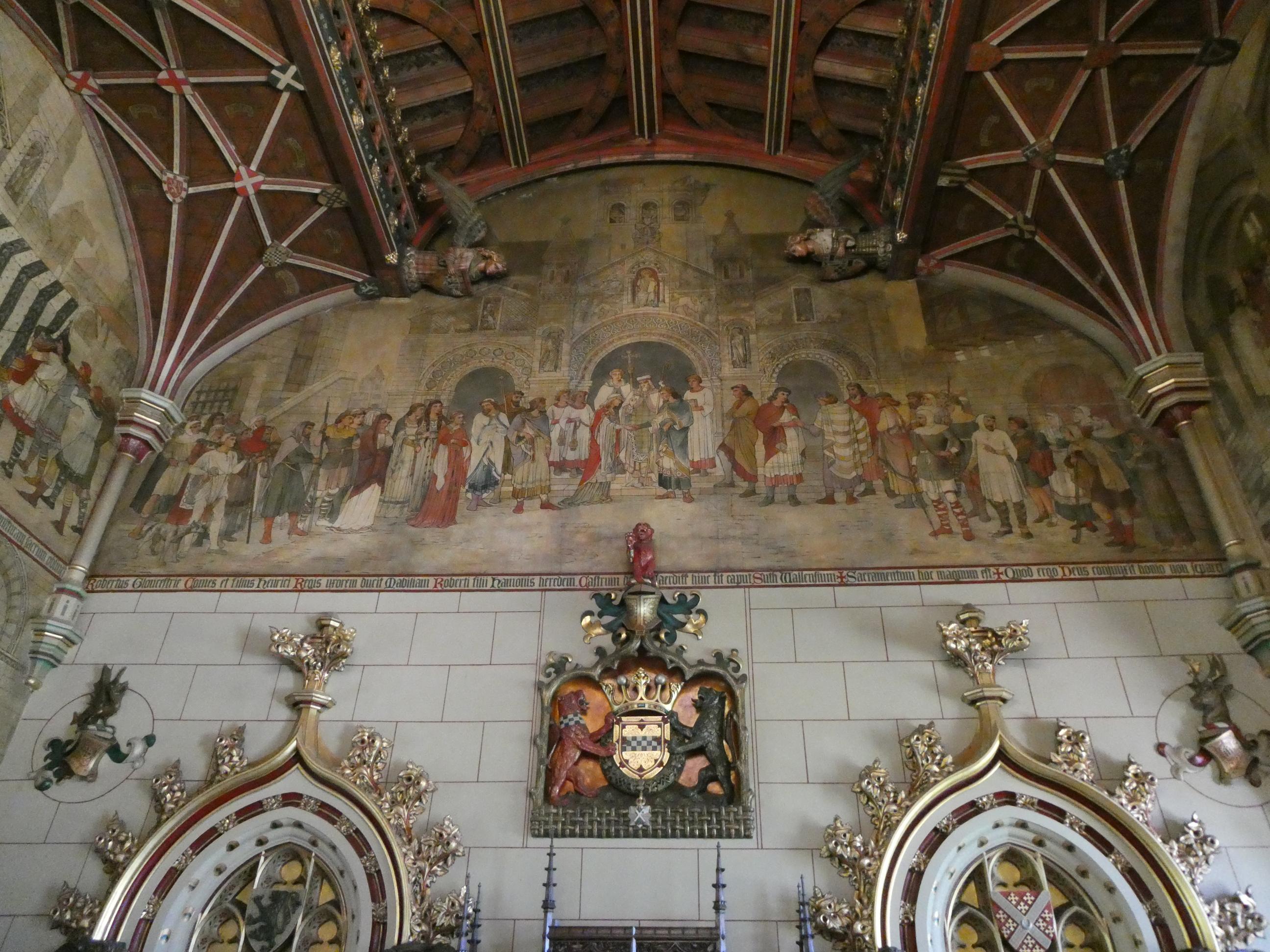 We walked over to Cardiff Castle, where we had entry tickets we’d purchased online from Australia. The origins of the castle date back to Roman times, and some parts were built by the Normans, but the parts of the castle I was looking forward to seeing were those parts renovated by the Third Marquess of Bute during the late 1800s. Six years ago, Marg and I had visited the castle on a bus tour, and we’d had a fantastic guided tour through all the rooms of the Marquess’s private rooms. He’d inherited the castle from his wealthy father, and had employed a leading Victorian architect to renovate the apartments he personally used, with a licence to be innovative. Here’s how I described this part of the castle in my blog post of 2019: