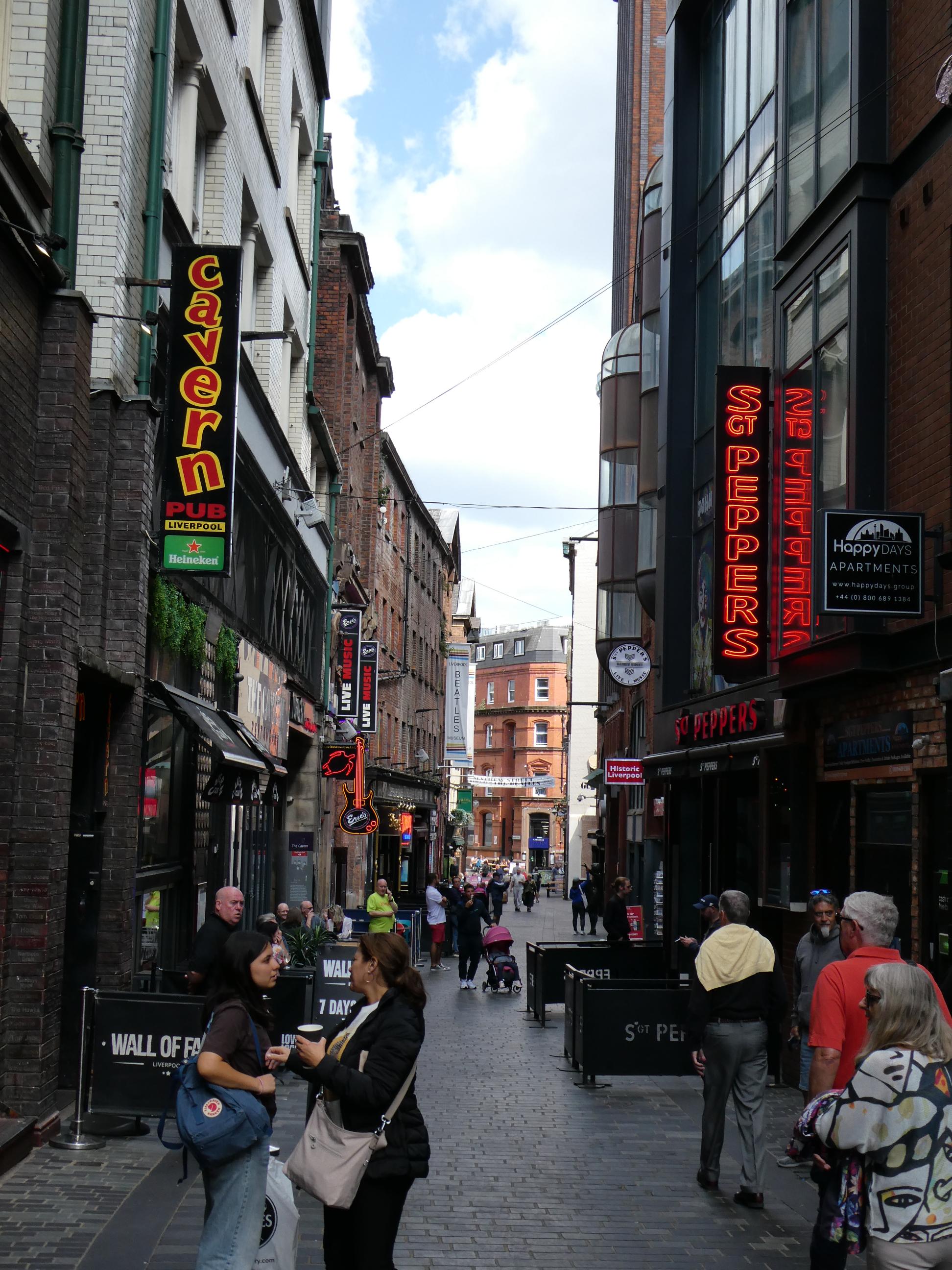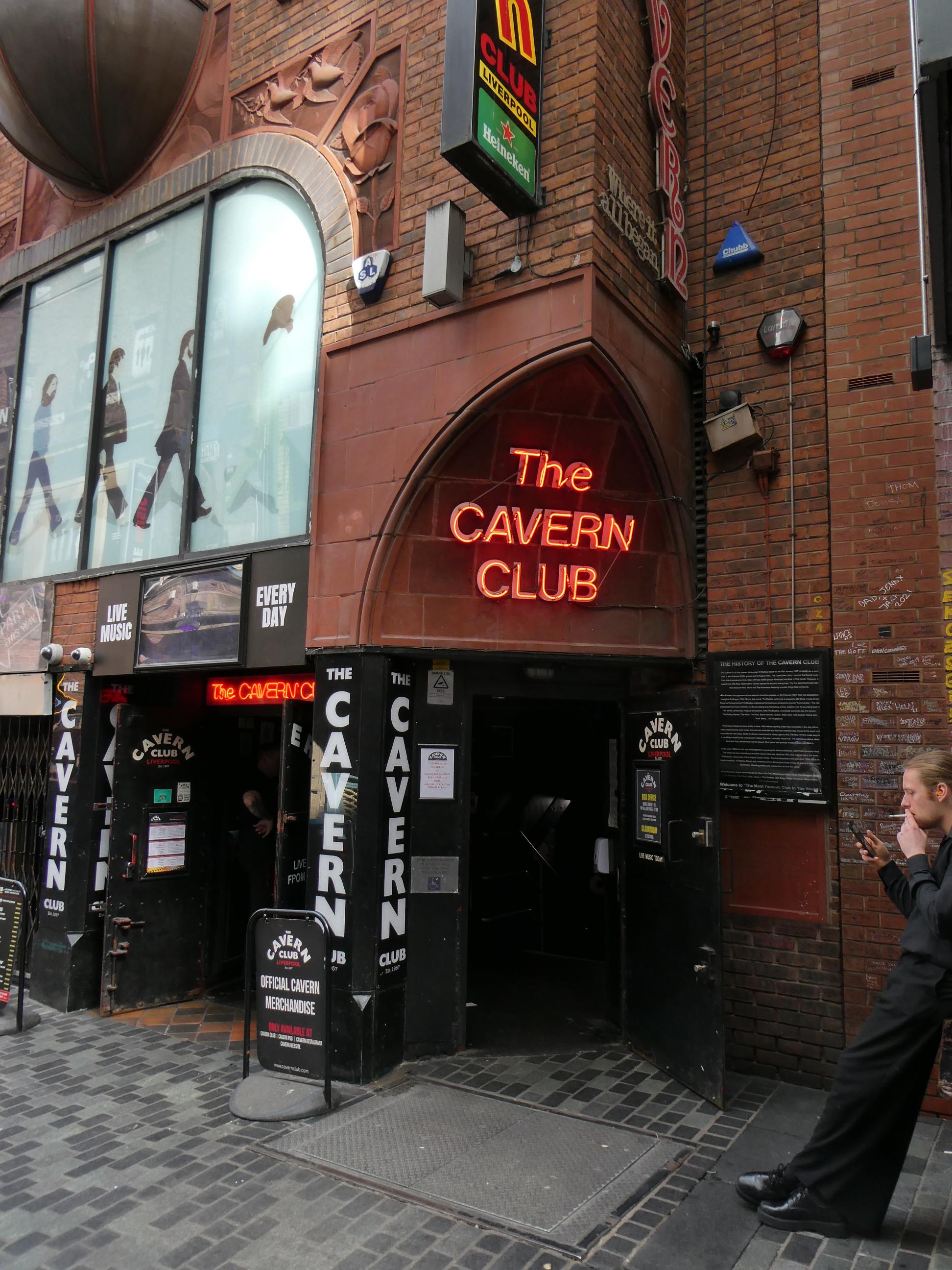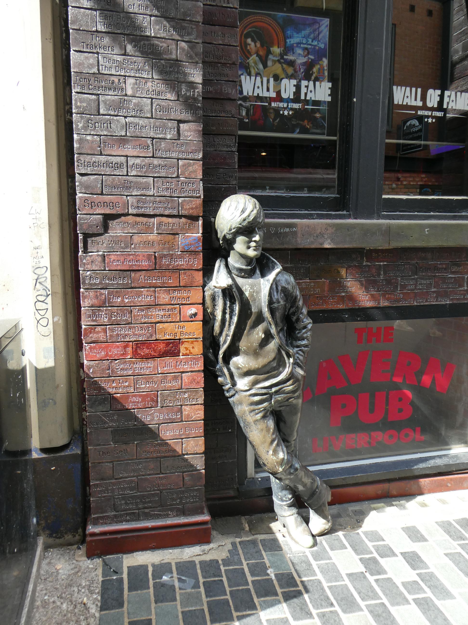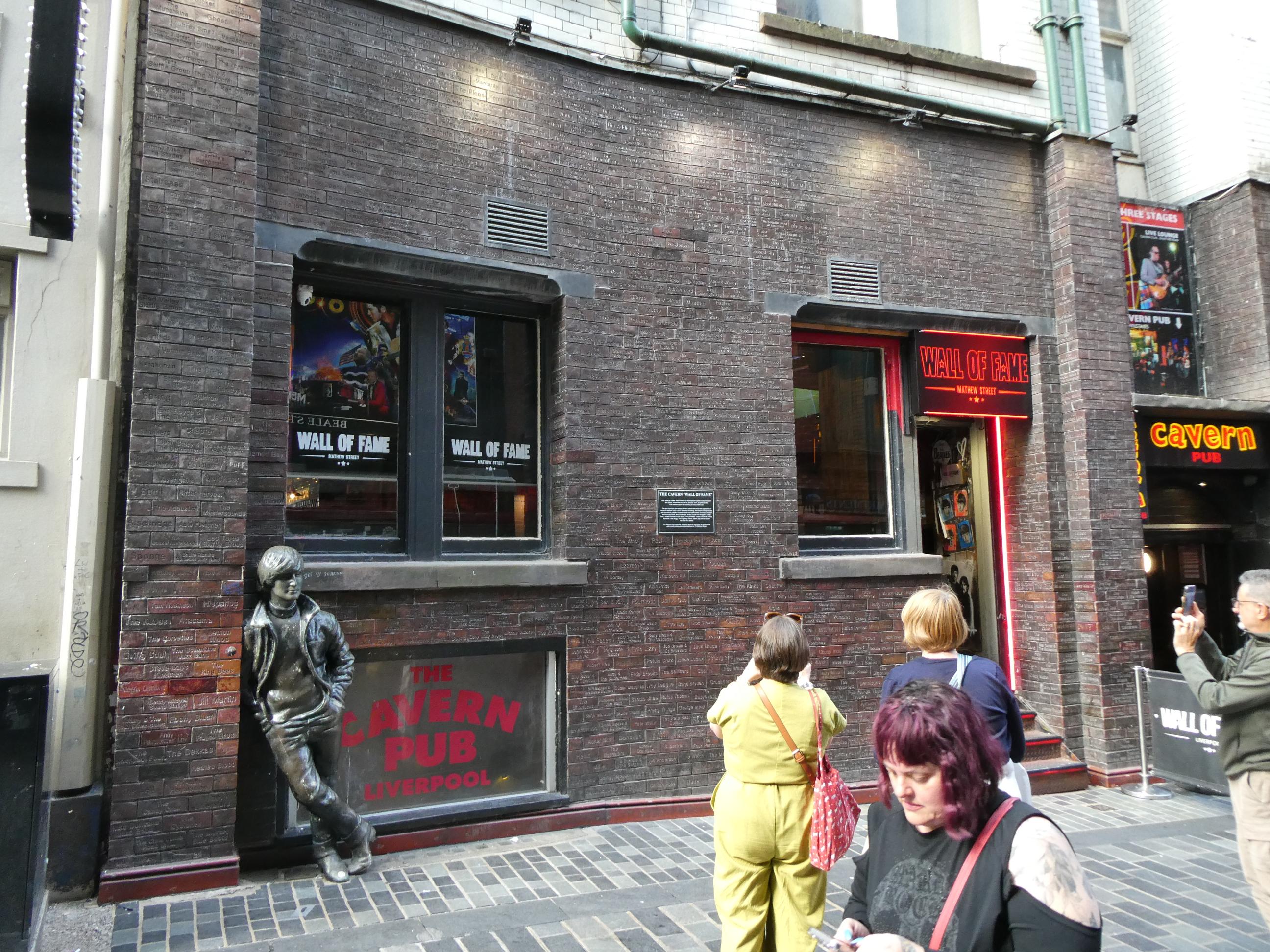 It was a good road to Liverpool and we arrived just after 10am. Rod found a car park a few blocks from the place we were staying. Because we wouldn’t be able to check in to our hotel until after 3pm, we left all our luggage in the car and went for a walk through the city down to the riverfront. It was really warm and we had perfect blue skies. Liverpool was a vital port city during the Industrial Revolution, and a lot of resources and manufactured goods passed through the port, bringing great wealth to many merchants of the era. They built some magnificent structures, many of which are still standing today. Down by the Mersey River, we stopped near the huge Cunard Building to read the information panels about some of the mighty ships the Cunard Line owned. A man about our age, crossing the road, stopped on the median strip and began to point out features of the riverfront area. For the next five minutes, we listened as he gave us a history lesson on his city and told us he lived right around the corner from Sir Paul McCartney’s childhood home. He spoke quite passionately about all the great bands who played in Liverpool during his youth, including the Beatles, who were the resident band of that era at the Cavern Club.