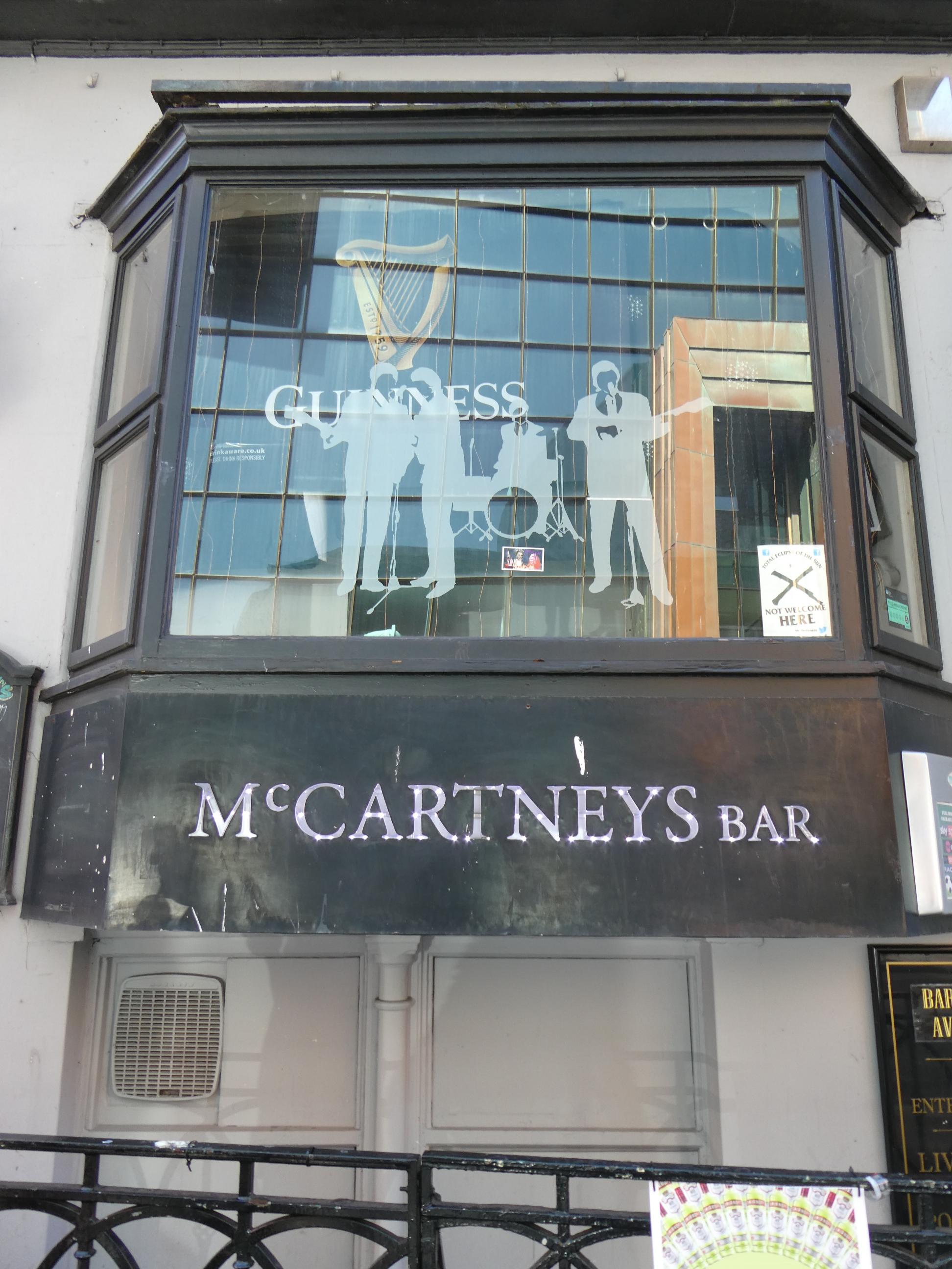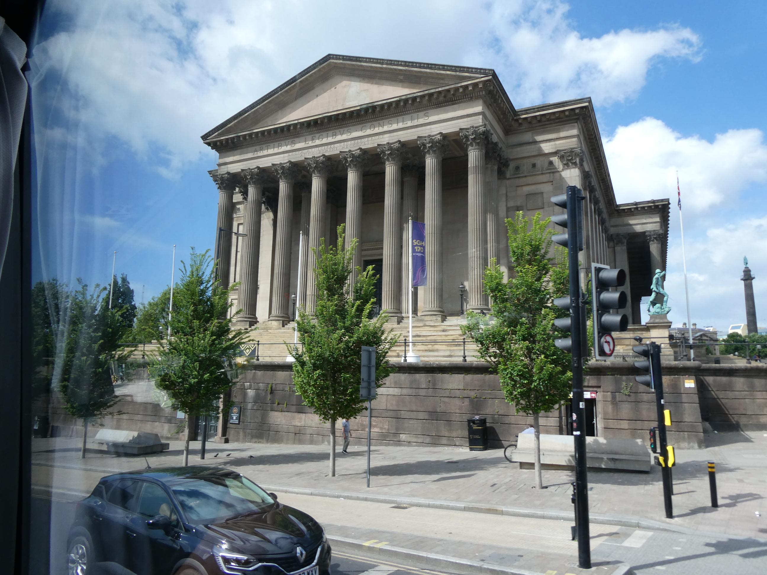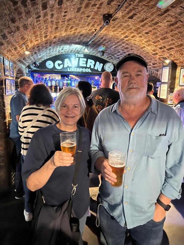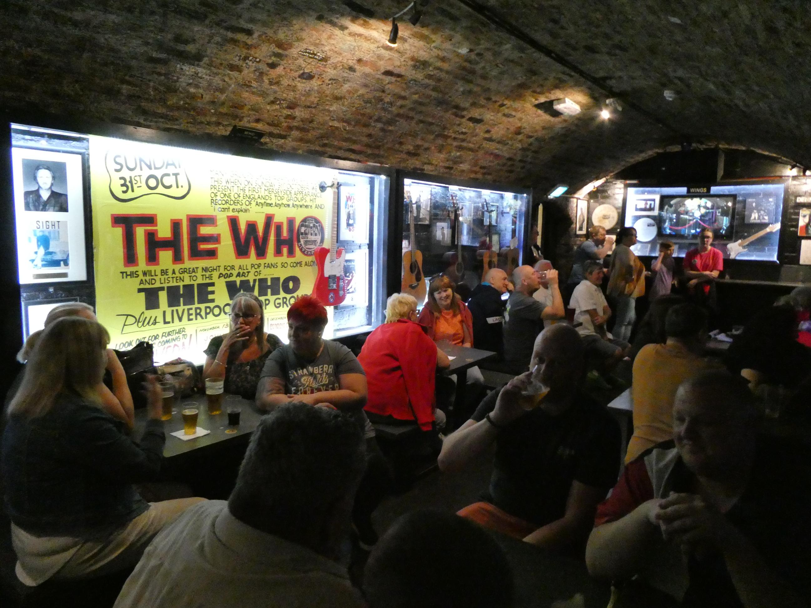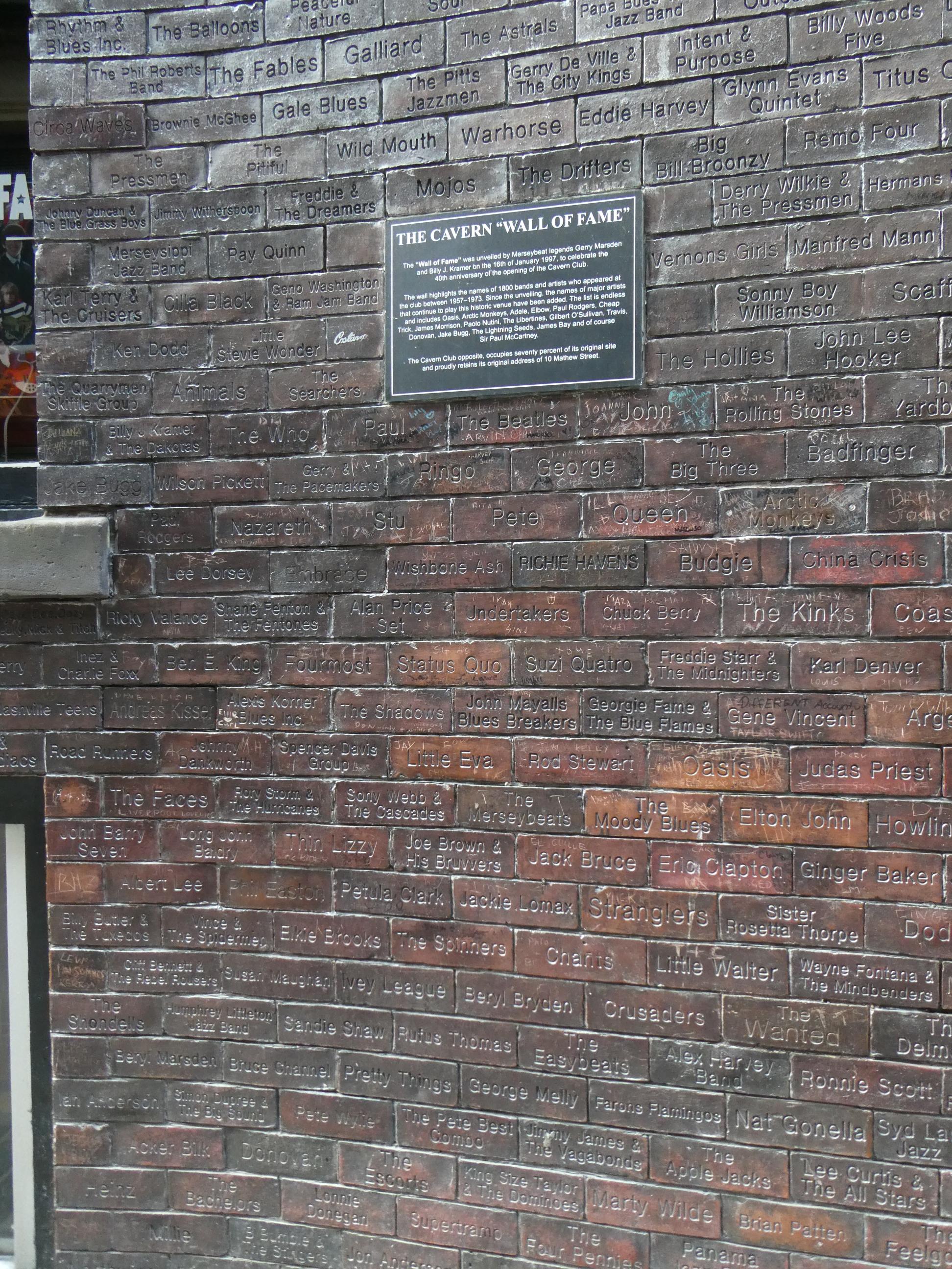 It was a good road to Liverpool and we arrived just after 10am. Rod found a car park a few blocks from the place we were staying. Because we wouldn’t be able to check in to our hotel until after 3pm, we left all our luggage in the car and went for a walk through the city down to the riverfront. It was really warm and we had perfect blue skies. Liverpool was a vital port city during the Industrial Revolution, and a lot of resources and manufactured goods passed through the port, bringing great wealth to many merchants of the era. They built some magnificent structures, many of which are still standing today. Down by the Mersey River, we stopped near the huge Cunard Building to read the information panels about some of the mighty ships the Cunard Line owned. A man about our age, crossing the road, stopped on the median strip and began to point out features of the riverfront area. For the next five minutes, we listened as he gave us a history lesson on his city and told us he lived right around the corner from Sir Paul McCartney’s childhood home. He spoke quite passionately about all the great bands who played in Liverpool during his youth, including the Beatles, who were the resident band of that era at the Cavern Club.