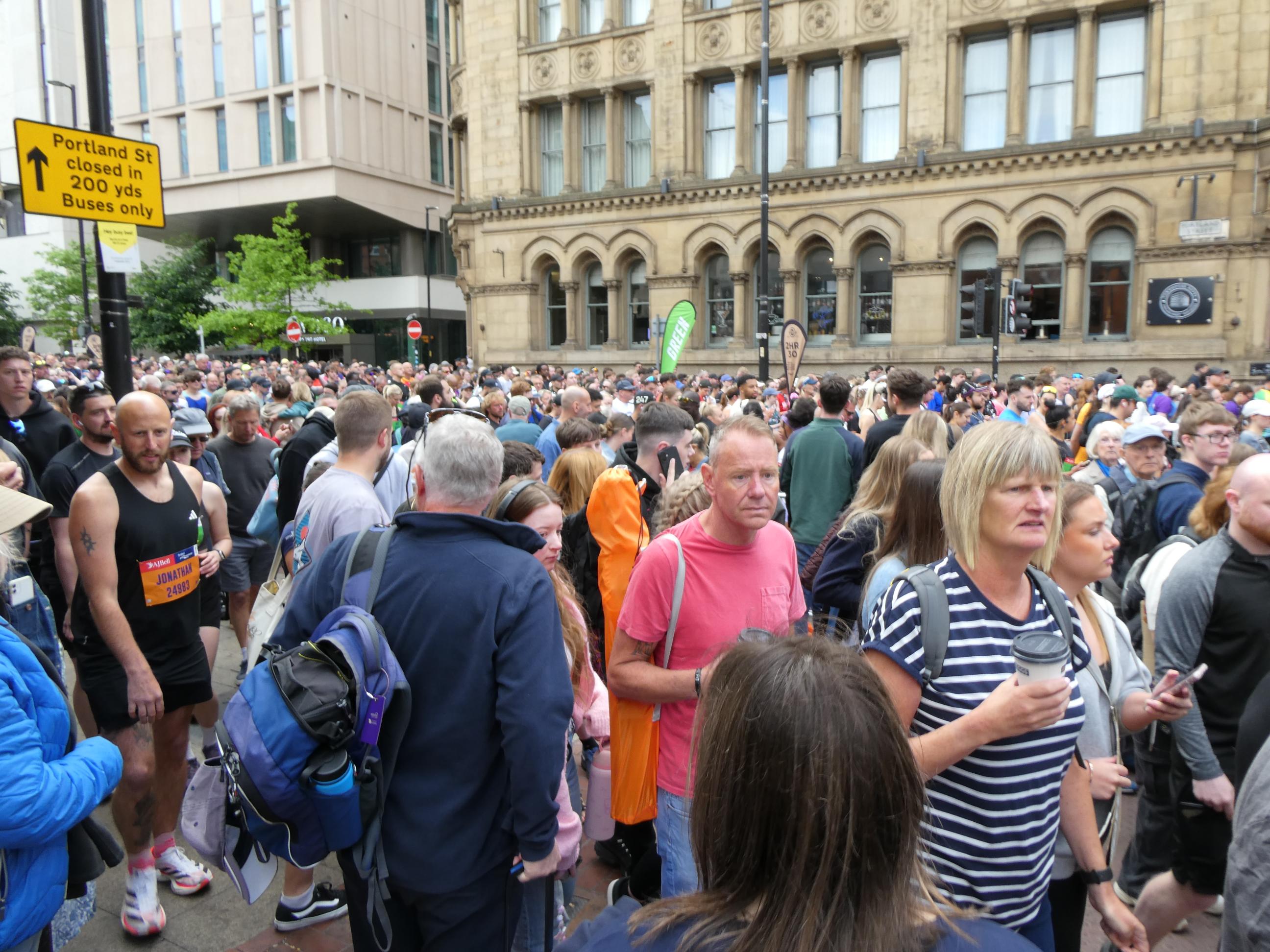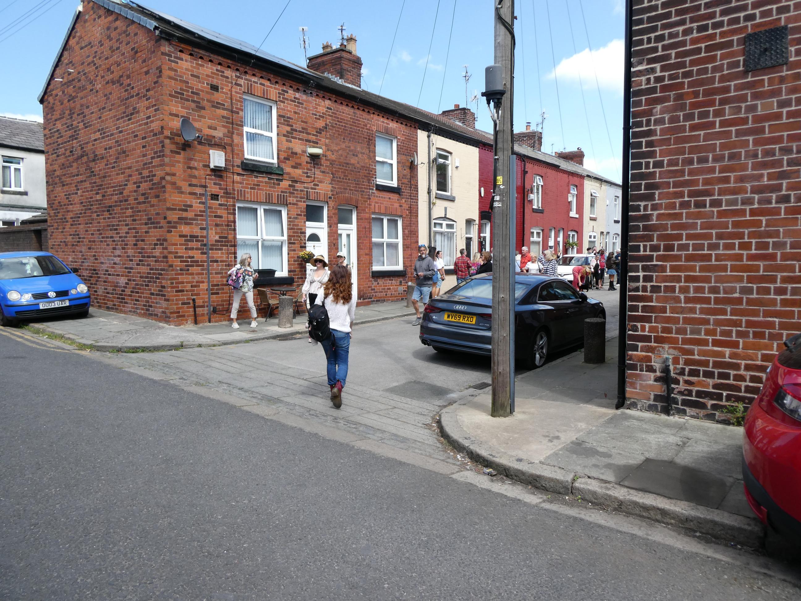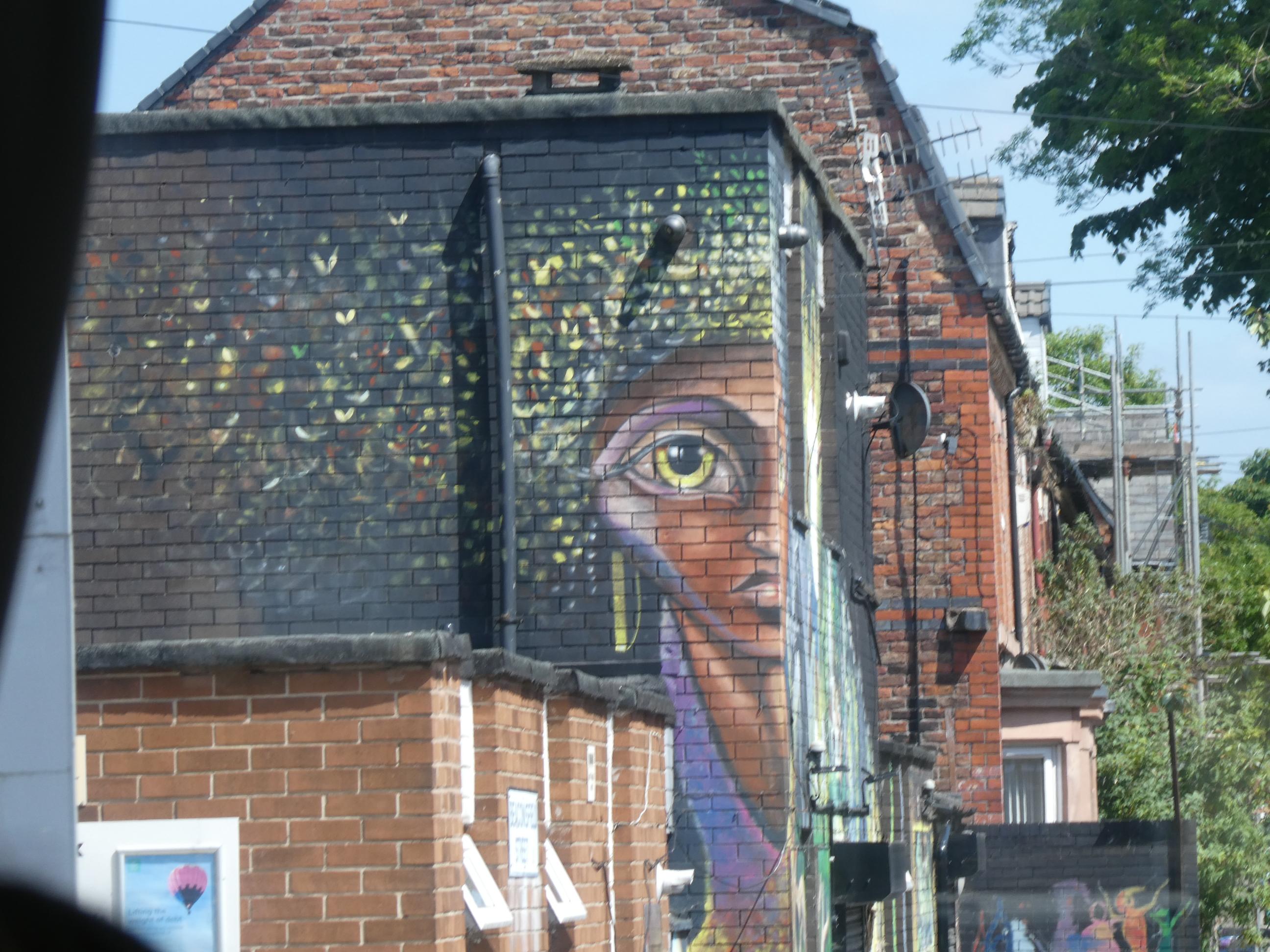 We were a little concerned this morning when we had to roll our heavy suitcases from our hotel to the place where our car was parked about a ten-minute walk away, or at least to a place where a car could pick us up. Although that might not sound much of an issue, I should also mention that today was the day of the Great Manchester Run, that the porta-loos were placed right outside our hotel door, that the start line was just a little way down the street from our hotel in Portland Road, that we checked out just minutes before the race was due to begin, that our car was parked on the far side of Portland Road and that many of the roads around us were closed to traffic. We made our way through the crowd as far as Portland Road, then headed along the footpath in the opposite direction to the start line, dodging and weaving people going the other way and trying to keep our luggage under control. Eventually we came to a break in the barricades a couple of blocks from the start line, where the sea of runners was a little less crowded, so we snuck through and managed at last to cross Portland Road, taking care not to crash into any of the people hurrying for the start line with our heavy suitcases. Once we’d got across there we found a couple of streets a few blocks away that were not closed off. Rod felt he could go and get our car and return to pick us and our luggage here. While we waited for him to return, the intersection near us became a bottleneck more than once, and a battlefield on a couple of occasions. Cars and even a bus tried to go one way, only to find that they couldn’t get through. It was a very tight spot for them to turn around and come back the other way. While they were attempting that, other cars drove into the street behind them and got stuck. A very angry guy with a completely tattooed face driving a street sweeper found himself unable to do his job because cars that were stuck were blocking his path – multiple times. One time he got out of his vehicle and stormed up to a taxi driver’s door to abuse him. I have no idea why the city council would want him out sweeping the gutters on a day when they blocked all the thoroughfares around the city. Eventually Rod arrived and we very quickly piled our cases into the car and hopped in before he blocked anyone else and was abused. He managed to get a U-turn in when there was a break in the congestion and was able to get us out of there and heading away from the chaos. We still had a few hurdles to overcome, as Google Maps was now showing so many road closures blocking our way out of Manchester that we had to turn back and try alternative routes several times before we finally put Manchester behind us and were on our way to Liverpool.