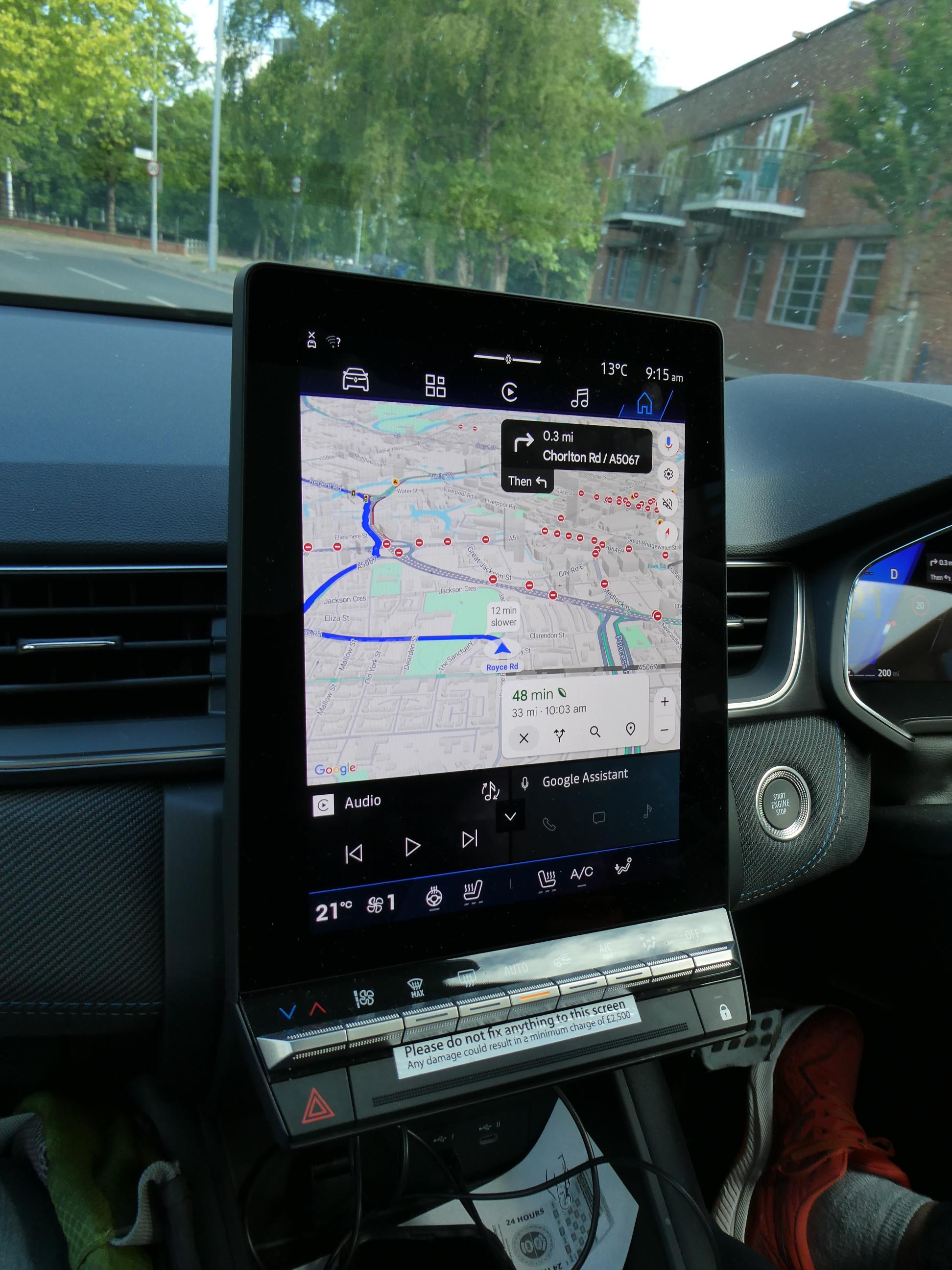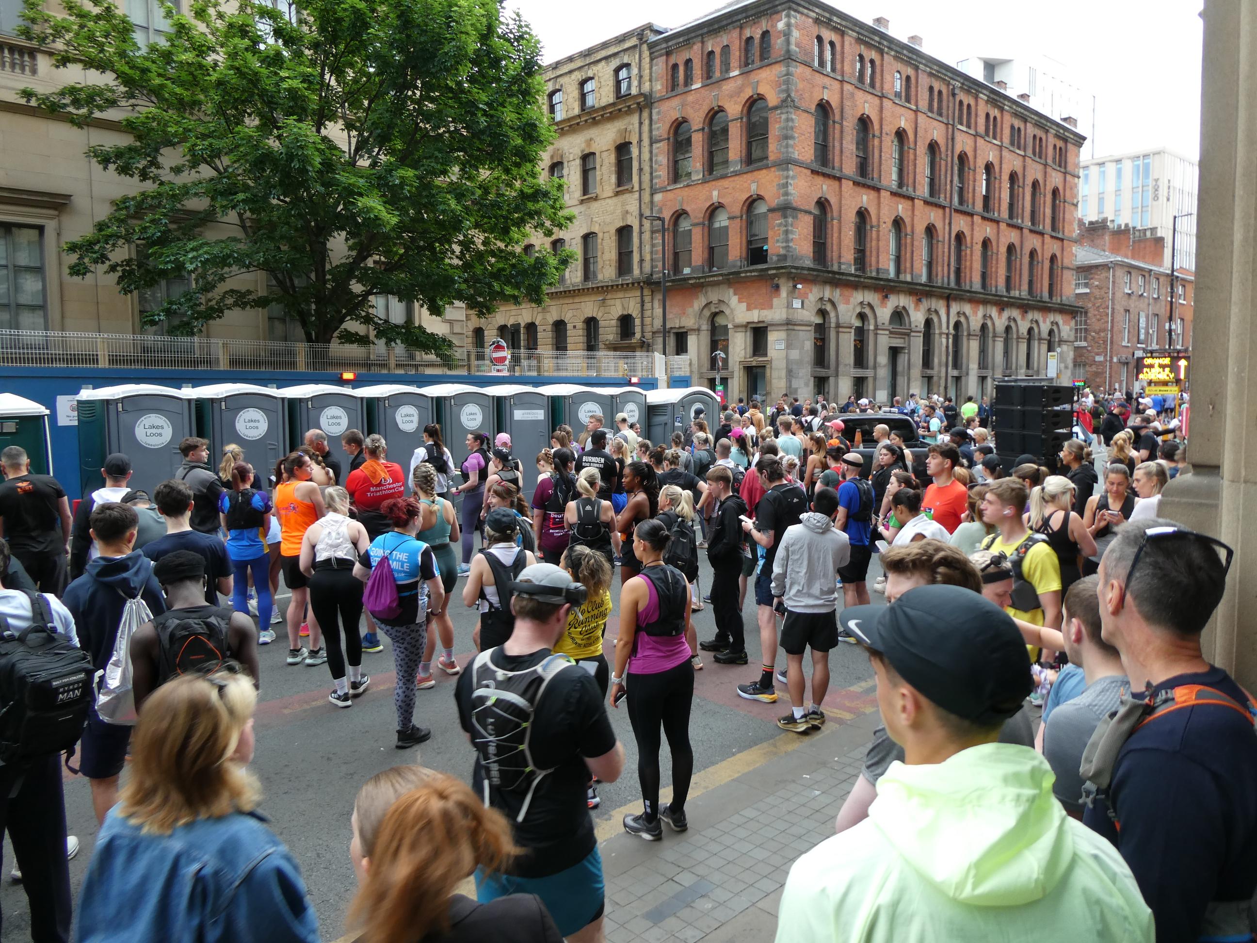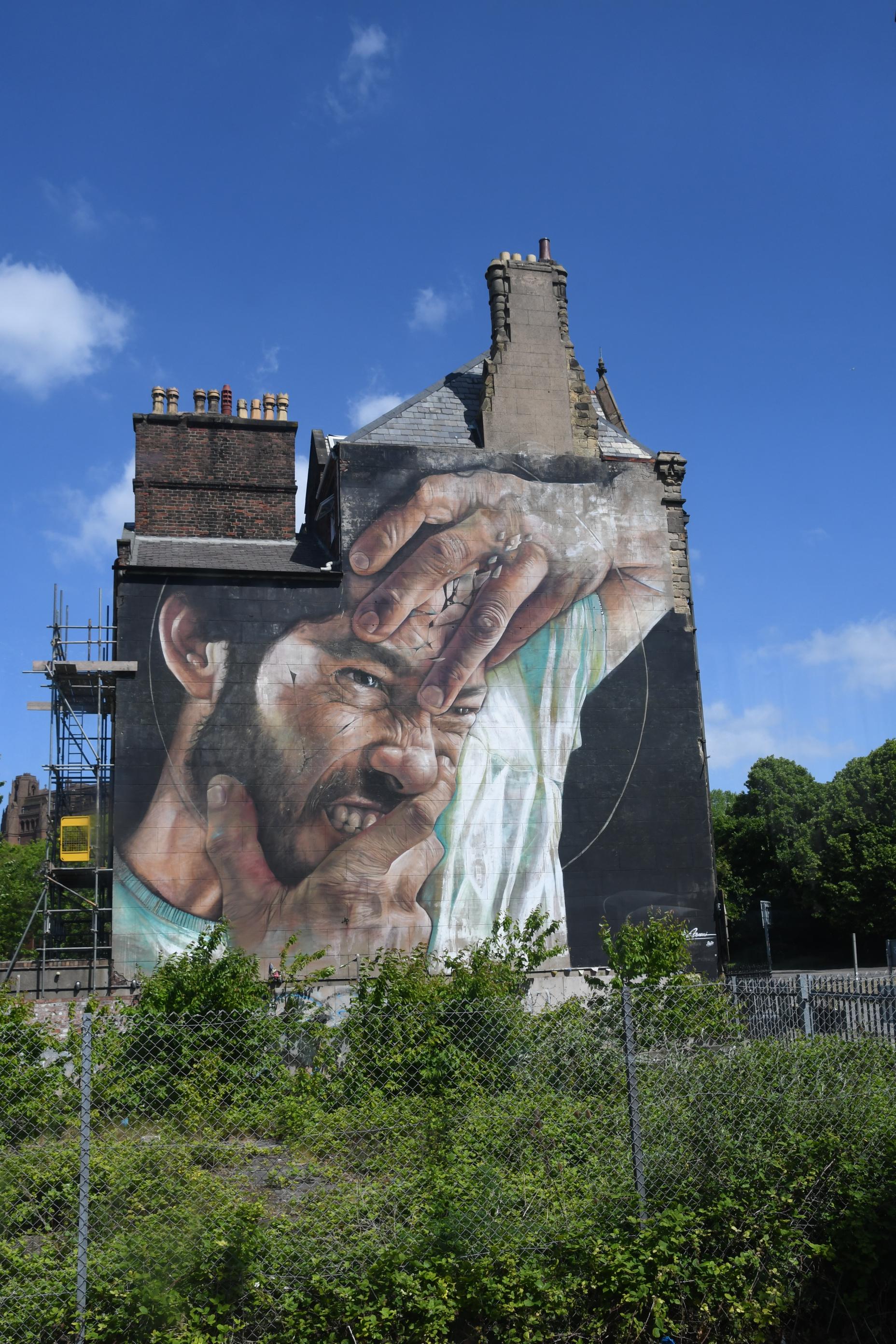We were a little concerned this morning when we had to roll our heavy suitcases from our hotel to the place where our car was parked about a ten-minute walk away, or at least to a place where a car could pick us up. Although that might not sound much of an issue, I should also mention that today was the day of the Great Manchester Run, that the porta-loos were placed right outside our hotel door, that the start line was just a little way down the street from our hotel in Portland Road, that we checked out just minutes before the race was due to begin, that our car was parked on the far side of Portland Road and that many of the roads around us were closed to traffic. We made our way through the crowd as far as Portland Road, then headed along the footpath in the opposite direction to the start line, dodging and weaving people going the other way and trying to keep our luggage under control. Eventually we came to a break in the barricades a couple of blocks from the start line, where the sea of runners was a little less crowded, so we snuck through and managed at last to cross Portland Road, taking care not to crash into any of the people hurrying for the start line with our heavy suitcases. Once we’d got across there we found a couple of streets a few blocks away that were not closed off. Rod felt he could go and get our car and return to pick us and our luggage here. While we waited for him to return, the intersection near us became a bottleneck more than once, and a battlefield on a couple of occasions. Cars and even a bus tried to go one way, only to find that they couldn’t get through. It was a very tight spot for them to turn around and come back the other way. While they were attempting that, other cars drove into the street behind them and got stuck. A very angry guy with a completely tattooed face driving a street sweeper found himself unable to do his job because cars that were stuck were blocking his path – multiple times. One time he got out of his vehicle and stormed up to a taxi driver’s door to abuse him. I have no idea why the city council would want him out sweeping the gutters on a day when they blocked all the thoroughfares around the city. Eventually Rod arrived and we very quickly piled our cases into the car and hopped in before he blocked anyone else and was abused. He managed to get a U-turn in when there was a break in the congestion and was able to get us out of there and heading away from the chaos. We still had a few hurdles to overcome, as Google Maps was now showing so many road closures blocking our way out of Manchester that we had to turn back and try alternative routes several times before we finally put Manchester behind us and were on our way to Liverpool.