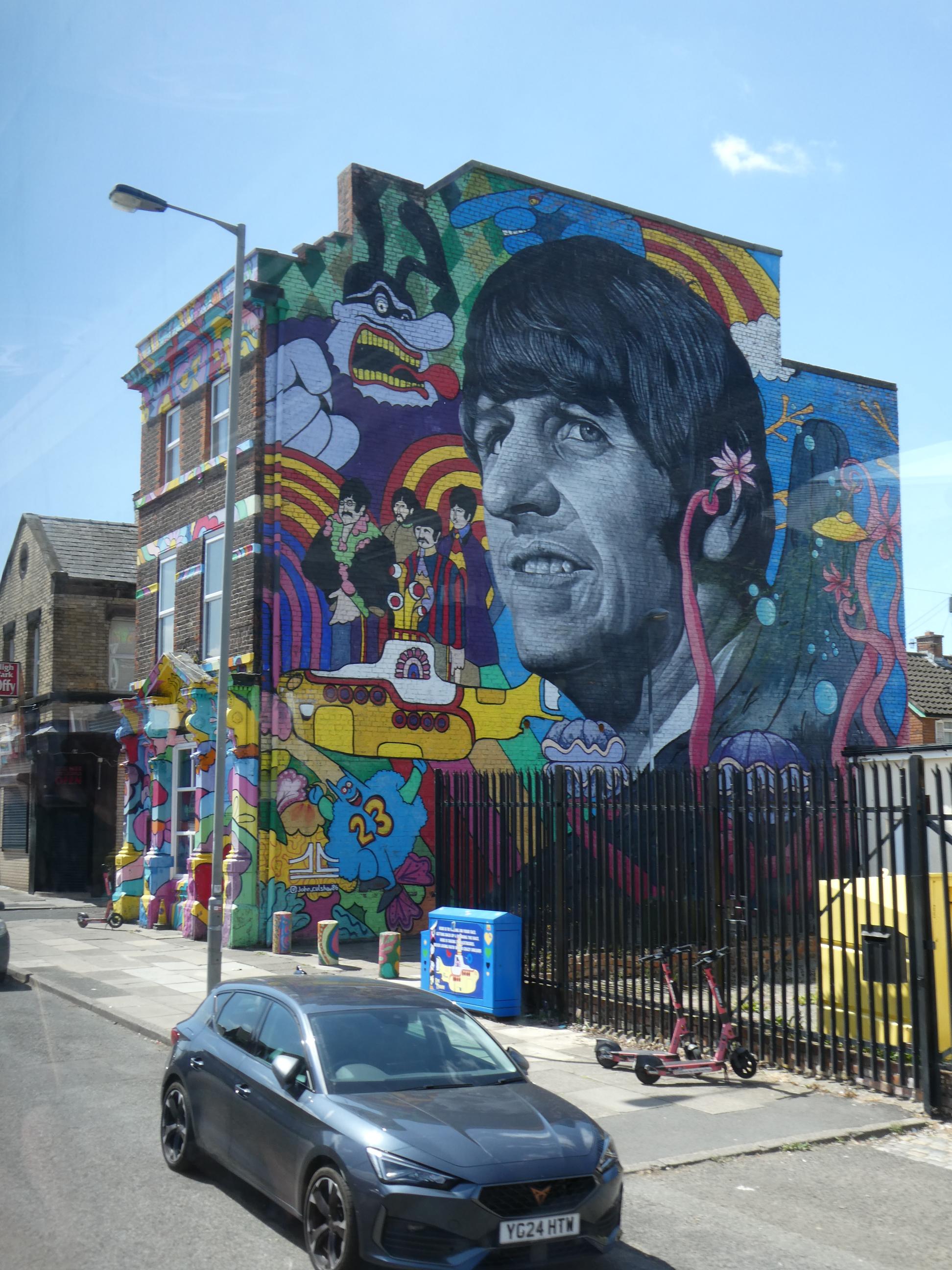 We grabbed a bite to eat on Albert Dock, then boarded our bus for the Magical Mystery Tour of Liverpool. Over the next couple of hours, our guide Charlie and driver Ross took us on a memorable journey through the Beatles’ formative years. We passed some fantastic murals along the route, including a brilliant tribute to Ringo just adjacent to the street where he once lived, at a time when he was better known as Richard Starkey.