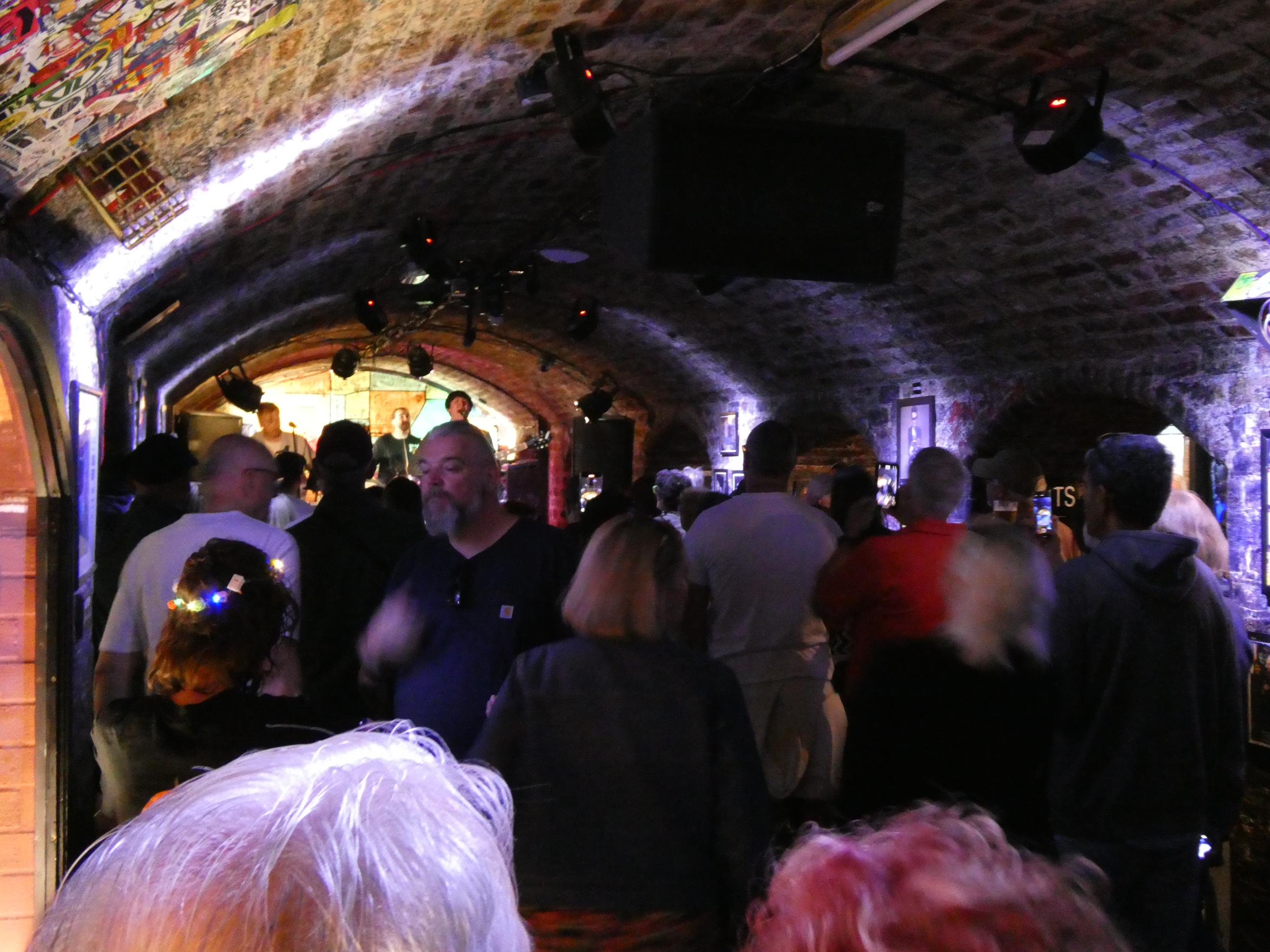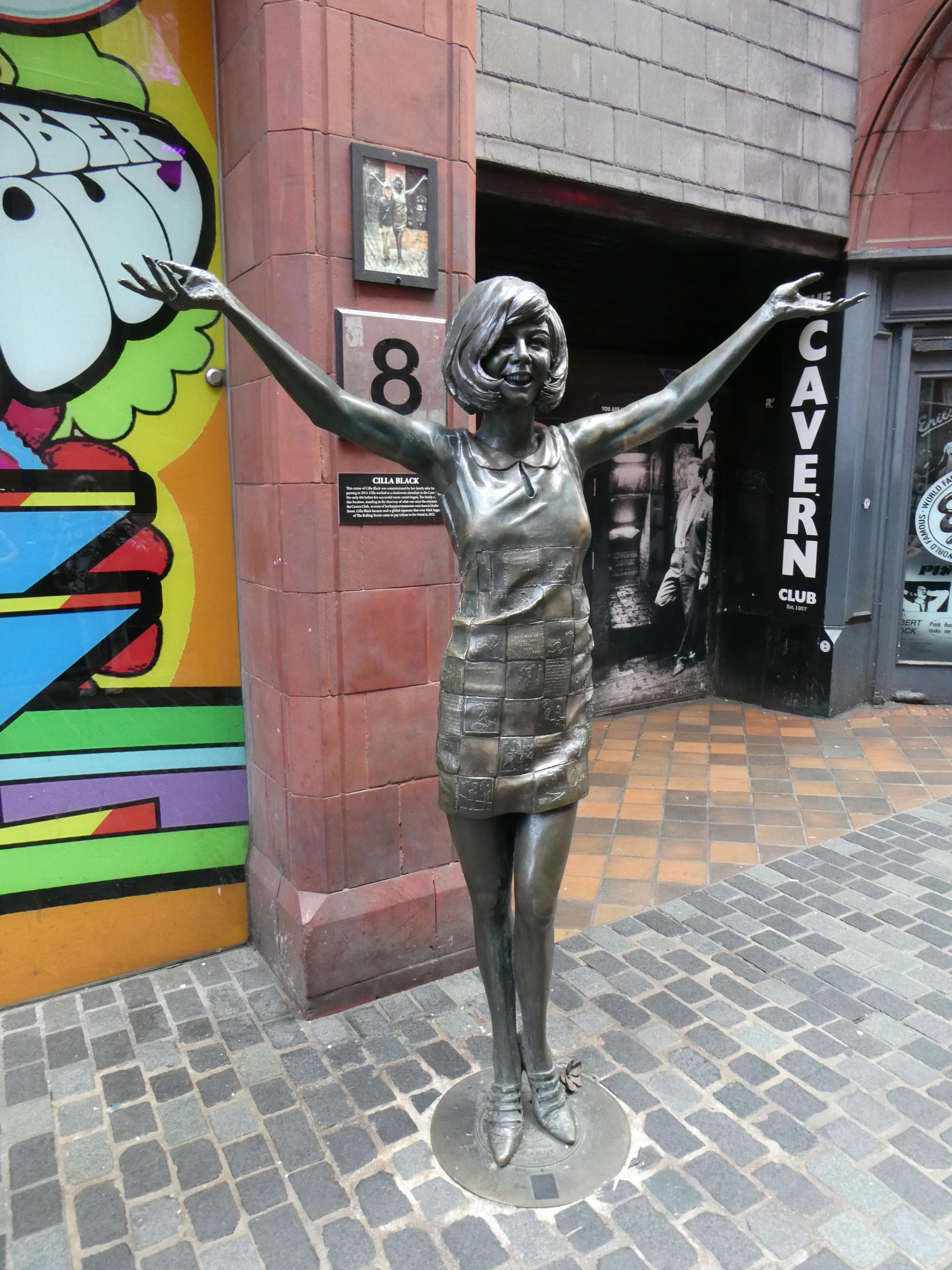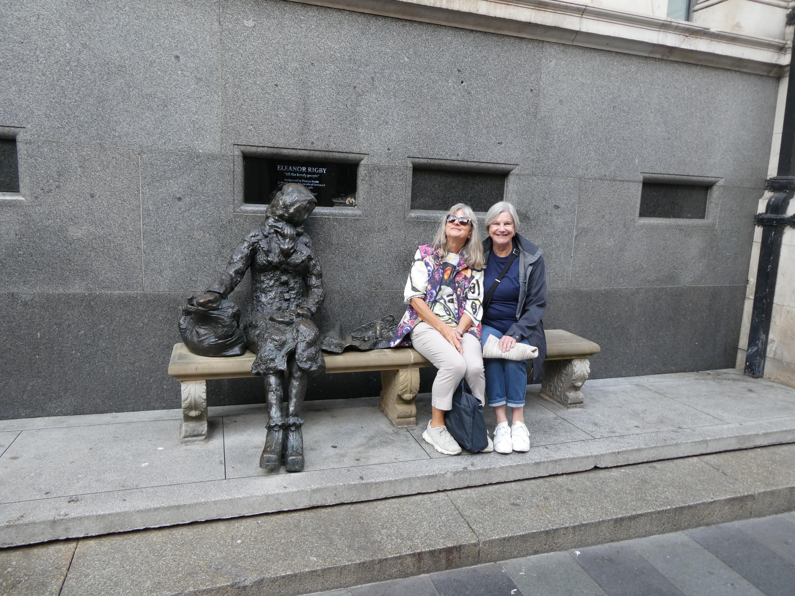 The tour finished near the Cavern Club in Mathew Street, where the Beatles performed on over 260 occasions between 1961 and 1963. Marg and I were here six years ago and had a great time, so we didn’t hesitate to visit again for a drink and a chance to hear some good music in one of the most famous music venues in the world. It’s a pretty special place for a music lover like me. The posters and wall cabinets take you on a trip through British music history, the famous curved brick ceiling, is iconic, the sound quality is brilliant, and the beer is pretty good too. We didn’t have a marker pen to write our names on the wall this time, but Marg crouched down low and found the first two letters of where she wrote her name six years ago. The final two letters had since been written over by another patron. We finally left, as we still hadn’t checked in to our hotel and it was getting late. We wandered down Mathew Street, admiring the fantatic Cilla Black statue and the music-related murals. Around the corner we found Eleanor Rigby looking lonely on a bench, so Marg and Cornelia stopped for a moment to give her some company. Walking back to our hotel in Castle Street, we passed lots of football fans with blue Everton FC scarves draped around their necks. Apparently today was the last time ever they would play at their home ground, Goodison Park, and they had a win over Southampton, so they were very happy. As I write this, it’s almost midnight, and I can still hear them singing raucously in the street outside our hotel. I don’t mind at all. If you want to make music in Liverpool, that’s all right with me.